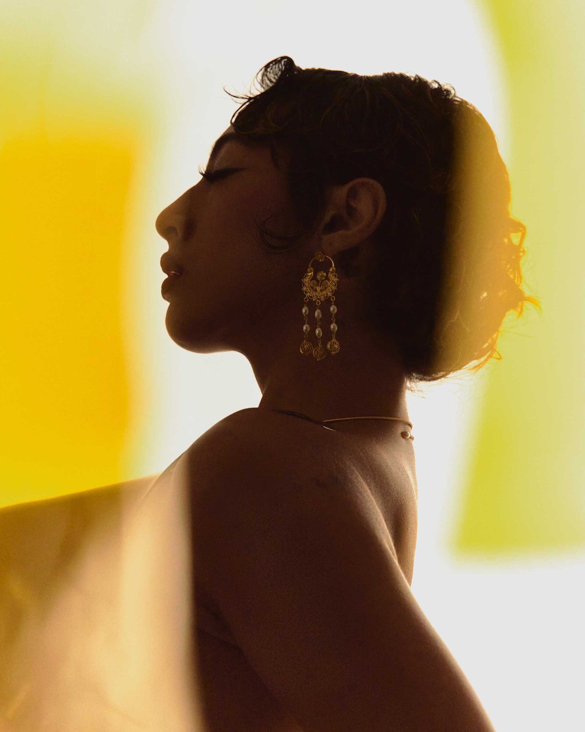 Tinay wears AMAMI earrings, AMAMI necklace, JOB DACON black breastplate from VESTIDO MANILA. Styled by Andrea Ang. Photo by Renzo Navarro