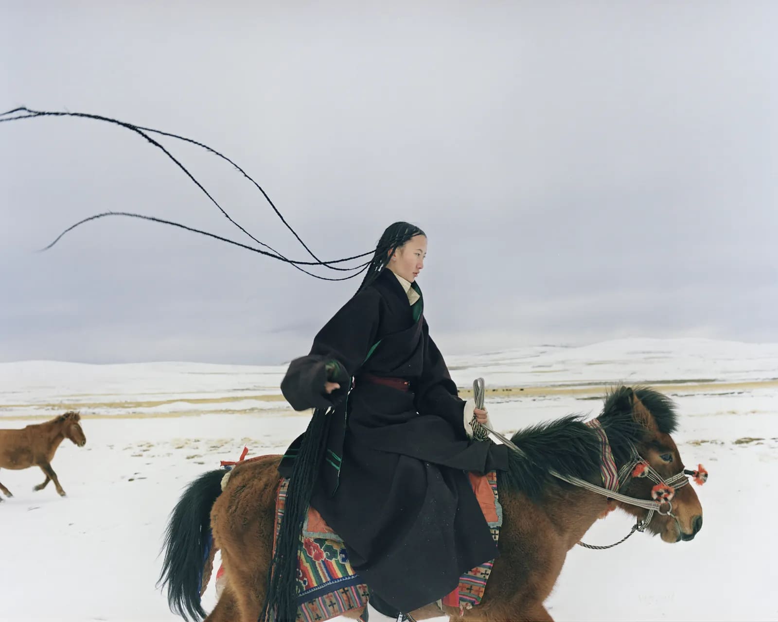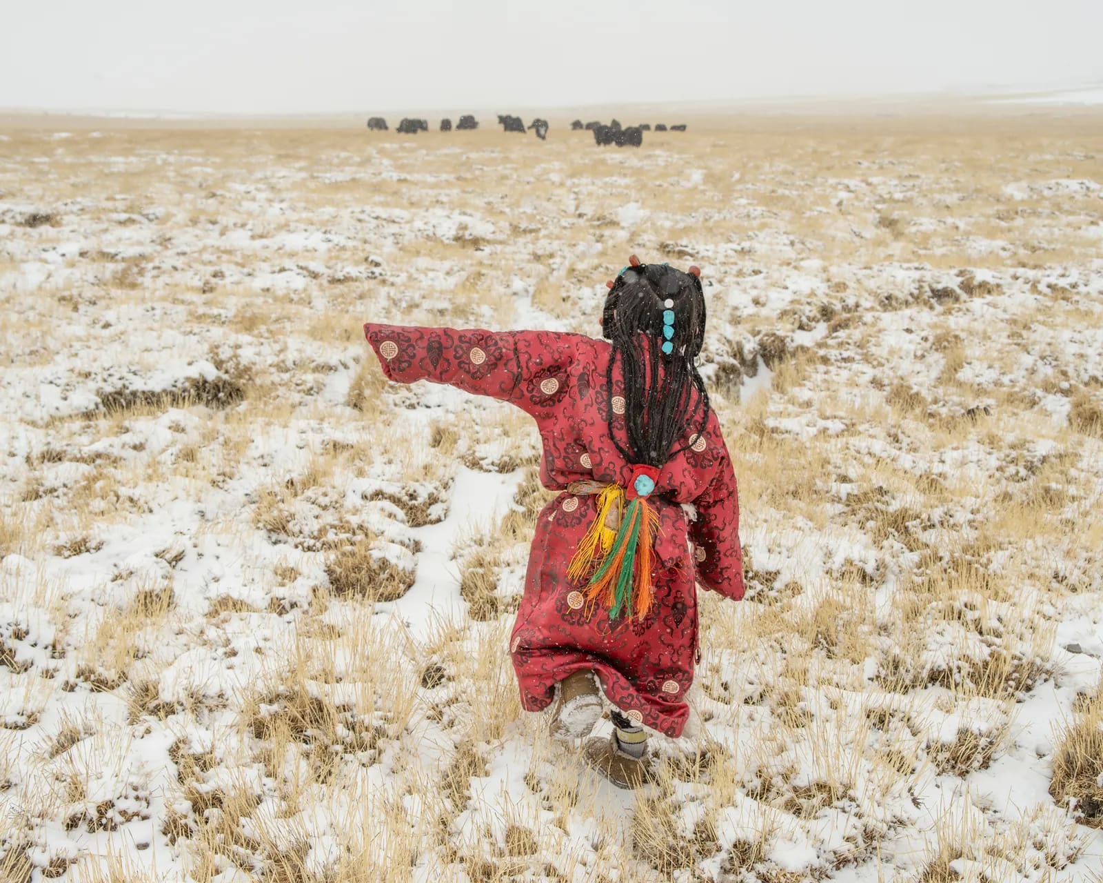Thirty-five-year-old Yangram, who lives in northwestern Tibet, began braiding her sisters’ hair at the age of 12. The nomadic herding tribes that live here are known for the unique traditional style of 108 Braids, a reference to the 108 holy volumes of Tibetan Buddhism.
