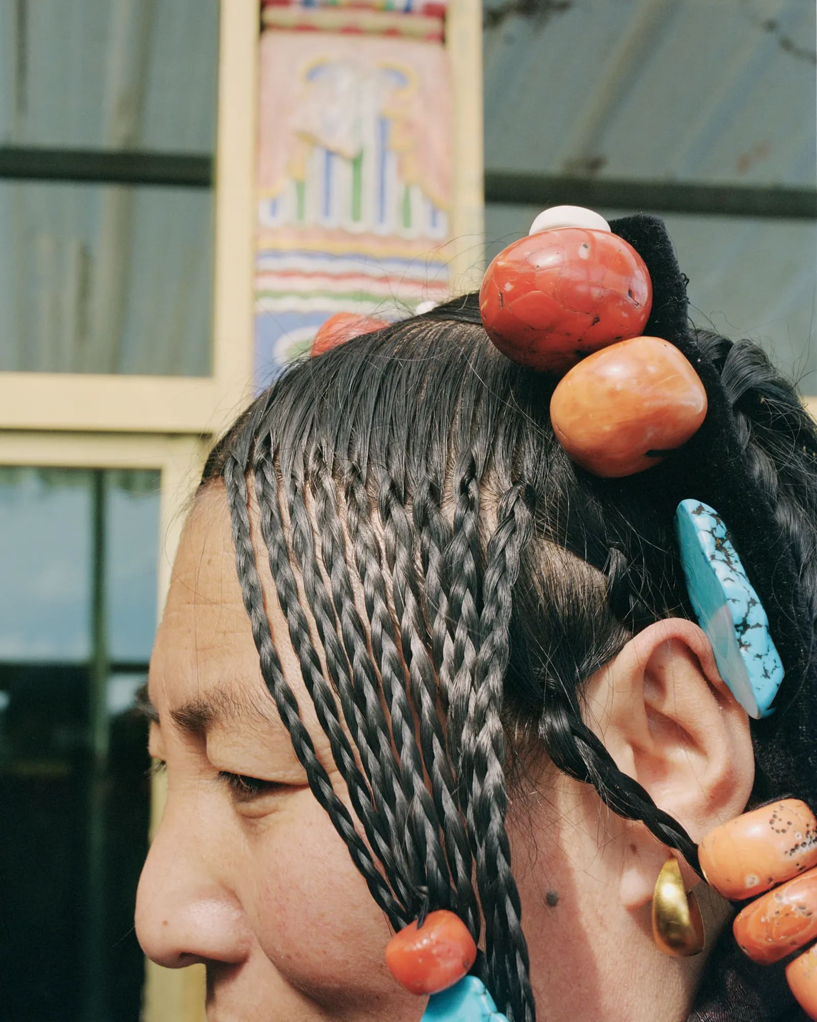 Once used as a form of communication – to share one’s relationship status or religious affiliation – 108 Braids is now also a tribute to the region’s heritage. Once braided, hair is adorned with all manner of earthy ornaments, like pine cones, coral and turquoise, all woven into the braids to denote a milestone in life.