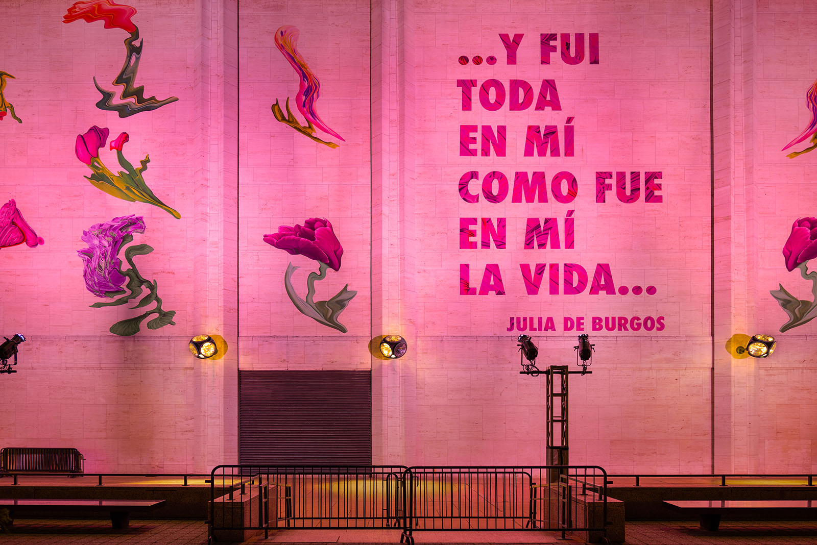 The line from Julia de Burgos’s poem Yo Misma Fui Mi Ruta (I Was My Own Path) roughly translates to “And I was all in me as was life in me.” Photo by Lawrence Sumulong, courtesy of Lincoln Center.