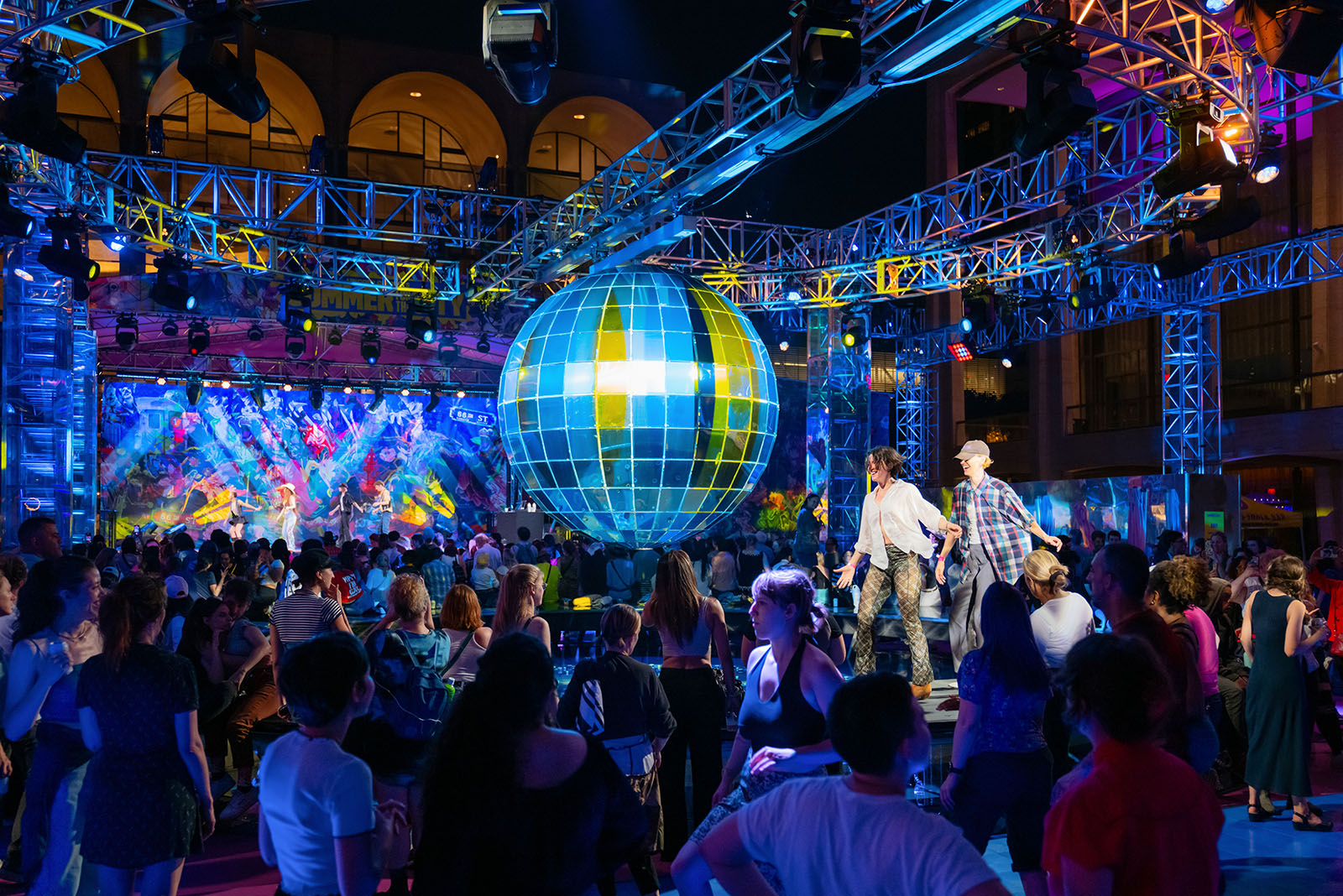 The Lincoln Center campus hosts New York’s largest outdoor dance floor. Photo by Lawrence Sumulong courtesy of Lincoln Center.