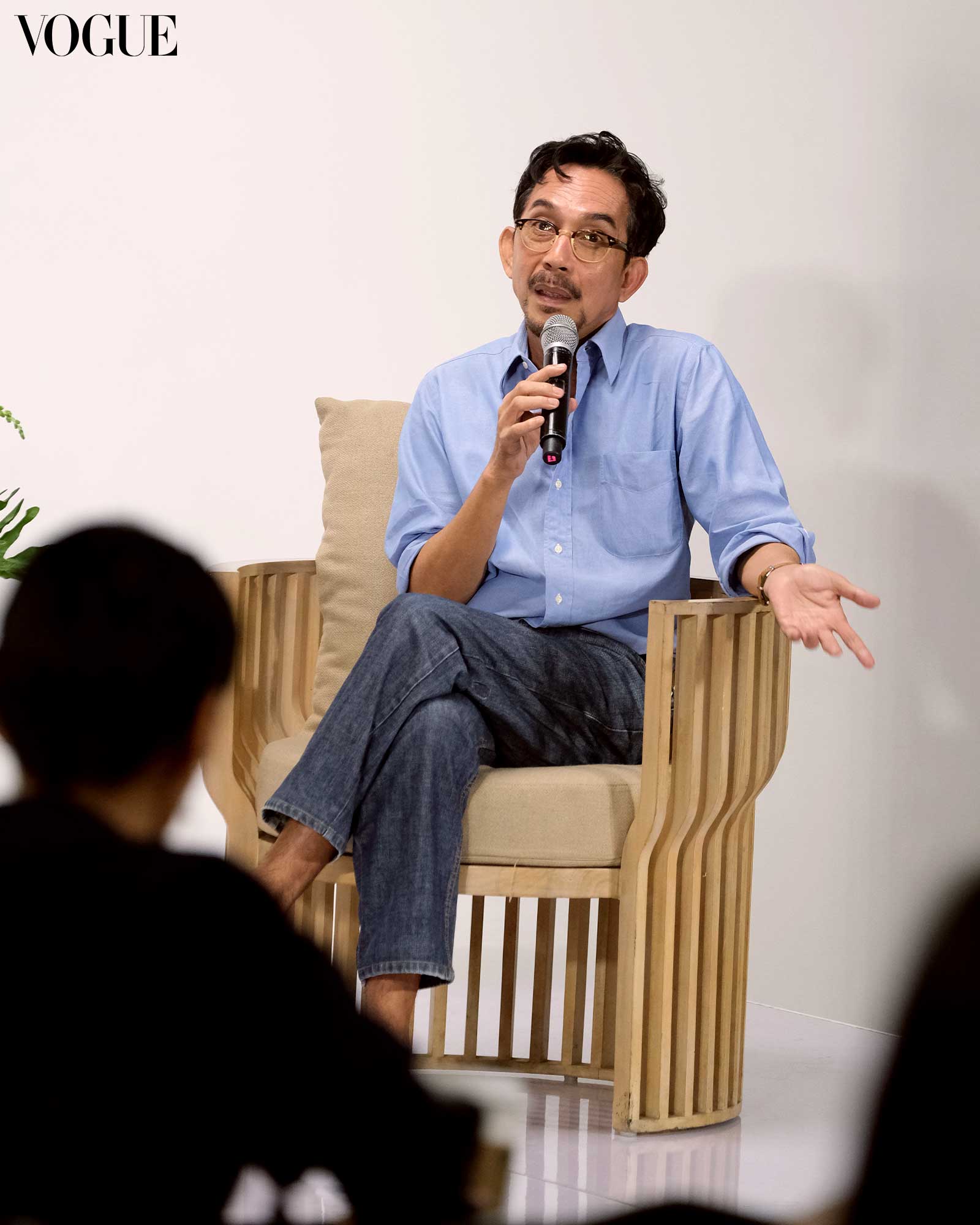 In the design context, Marlon’s thoughts are along the same vein as Marian’s, summing it up in one word: social. “Social ha, not sosyal [fancy],” he tells Vogue Philippines. “It’s very contextual, very contingent to what we need now and what we have now.” During the talk, Marlon uses sari-sari stores as an example, emphasizing their bespokeness in terms of offering items that their community needs.