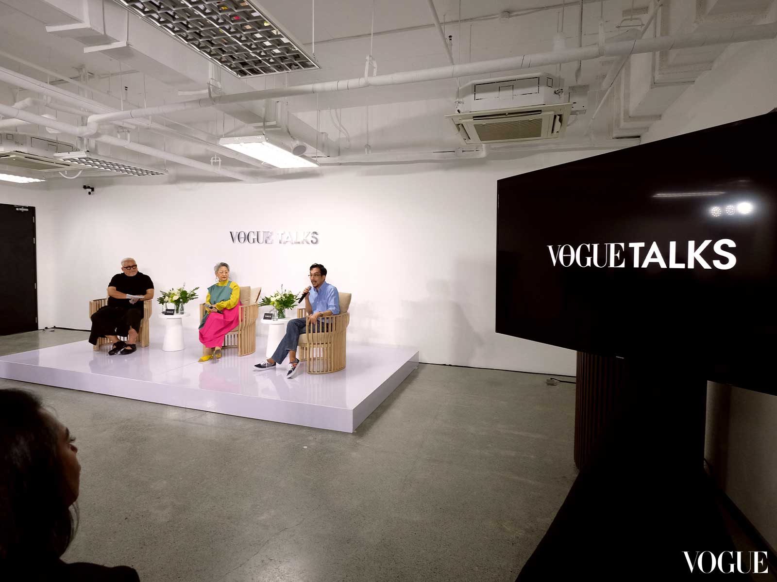 Rajo Laurel, Marian Pastor Roces, and Marlon Rivera at Vogue Talks. Photo by Ed Simon