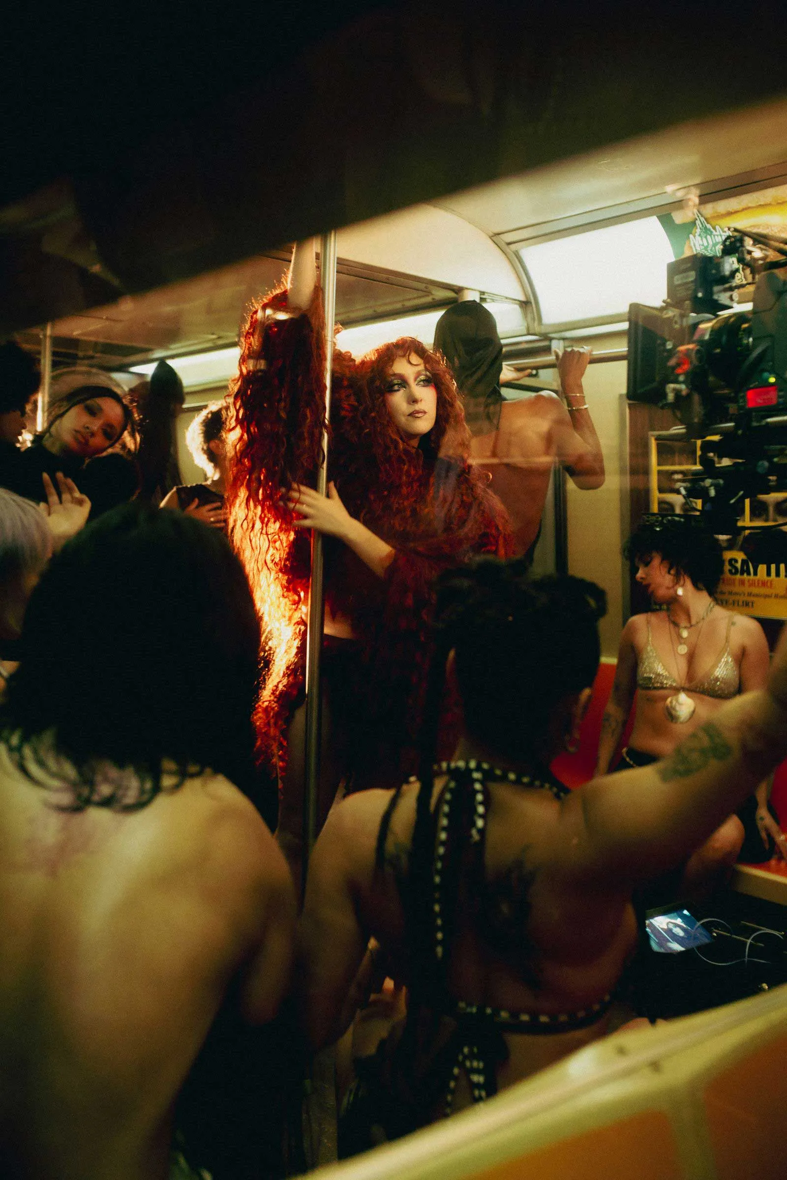 On a humid July afternoon, Chappell Roan is standing near the doors of a subway car, fiery red hair cloaking her pale, moonlike face. But the 27-year-old pop star—born Kayleigh Rose Amstutz—isn’t packed in with New York’s myriad commuters. Instead she’s transformed a decommissioned car at the New York Transit Museum in Downtown Brooklyn into a strobe-lit club to film the music video for her latest single, “The Subway.”