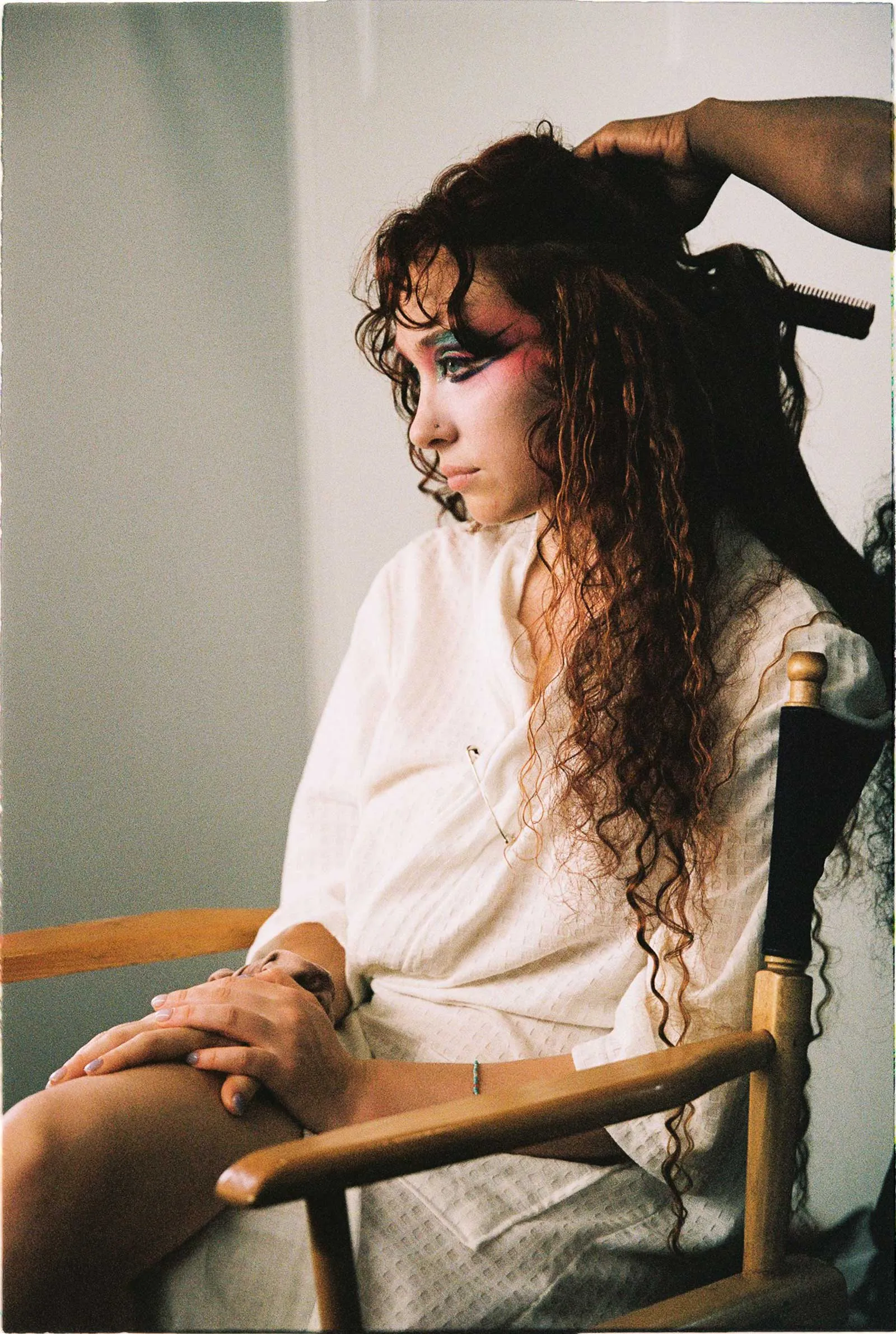 “The Subway” details the jittering adrenaline rush that comes with encountering an ex. “I was having a hard time getting over this one person, and I just could not get over them,” Roan says, as her glam team braids her hair and paints blooms of pink onto her cheeks. “When I was writing, I was constantly trying to be like, We’re done, we’re done, we’re done, we’re done. The feelings are still there, even though we’re done.”