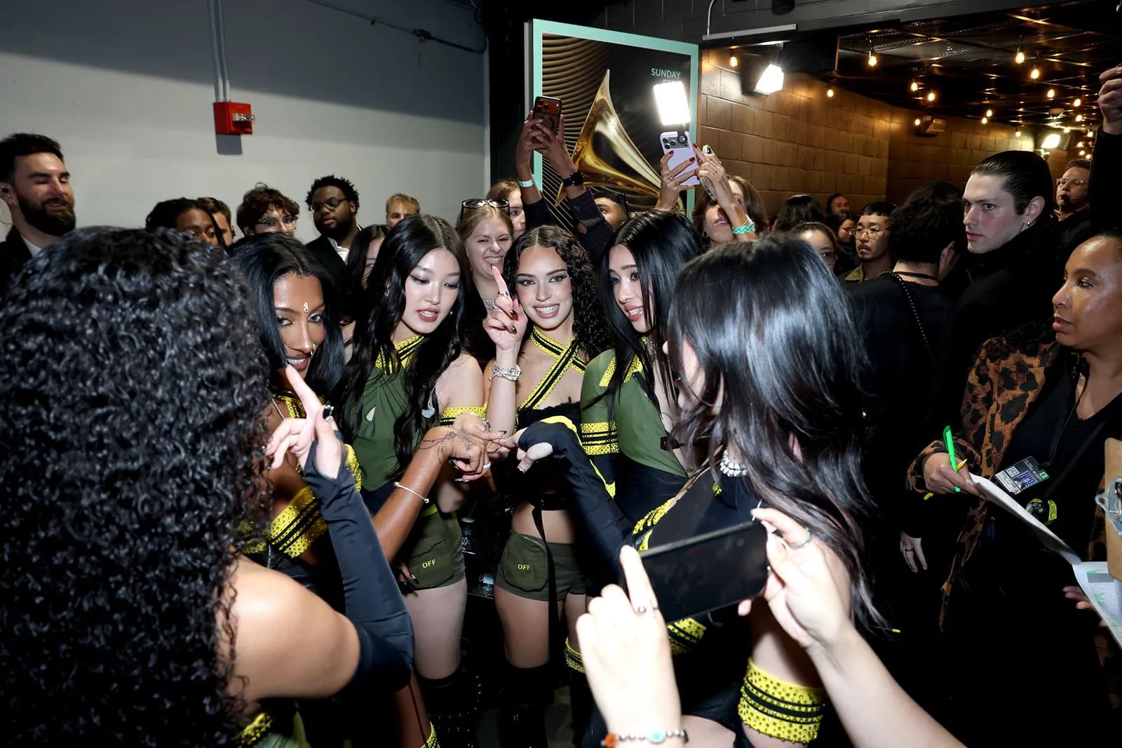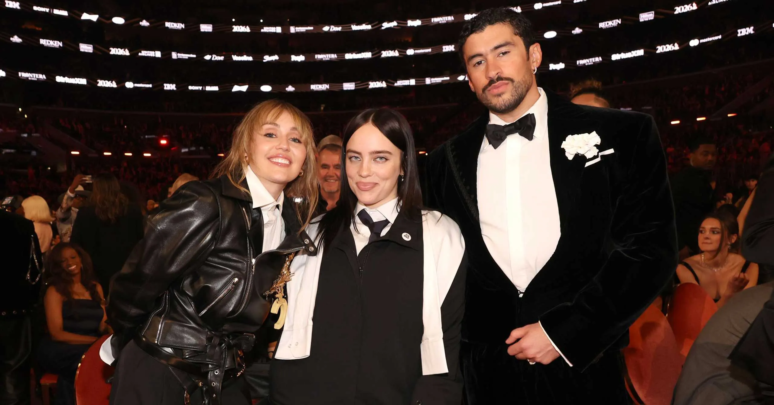 Below, take a virtual tour through all the moments you didn’t see onscreen at the 2026 Grammys, from Bad Bunny, Billie Eilish, and Miley Cyrus giving us major supergroup energy (okay, wishful thinking) to Justin and Hailey Bieber hanging out with Charlotte Lawrence and Andrew Watt.