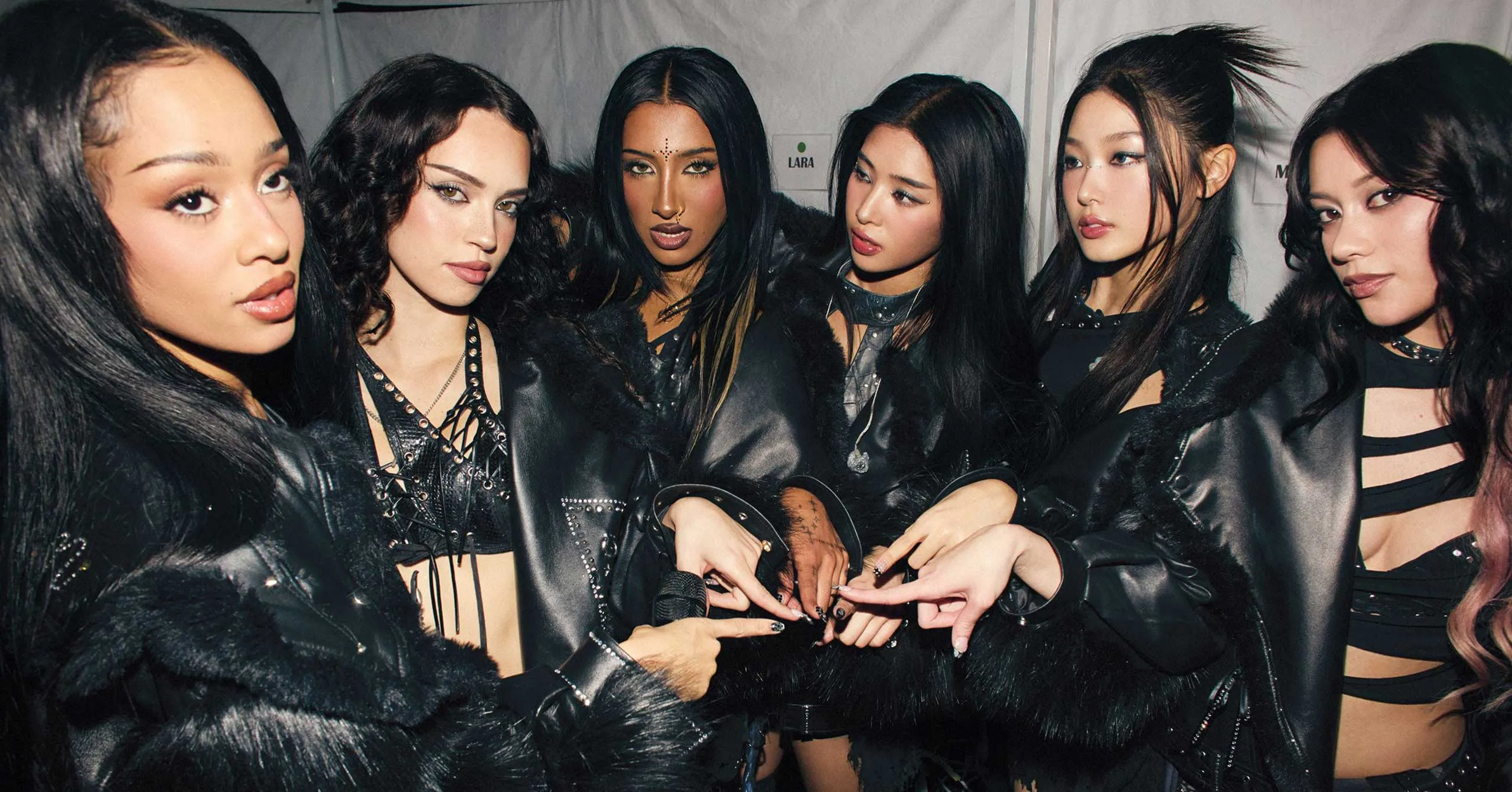 Katseye members Manon Bannerman, Daniela Avanzini, Lara Raj, Sophia Laforteza, Yoonchae Jeung, and Megan Skiendiel backstage at the Hollywood Palladium in December.Photographed by Cameron McCool, Vogue, April 2026.