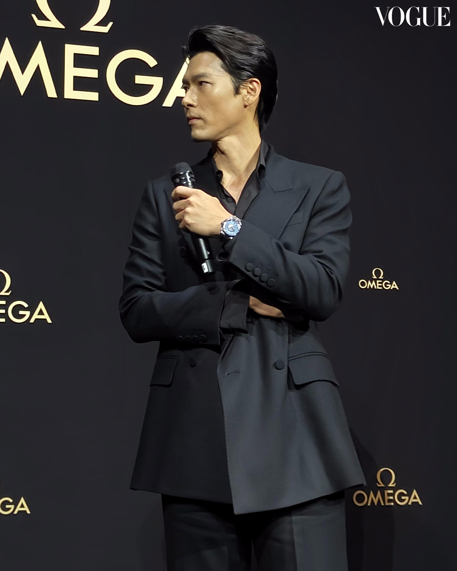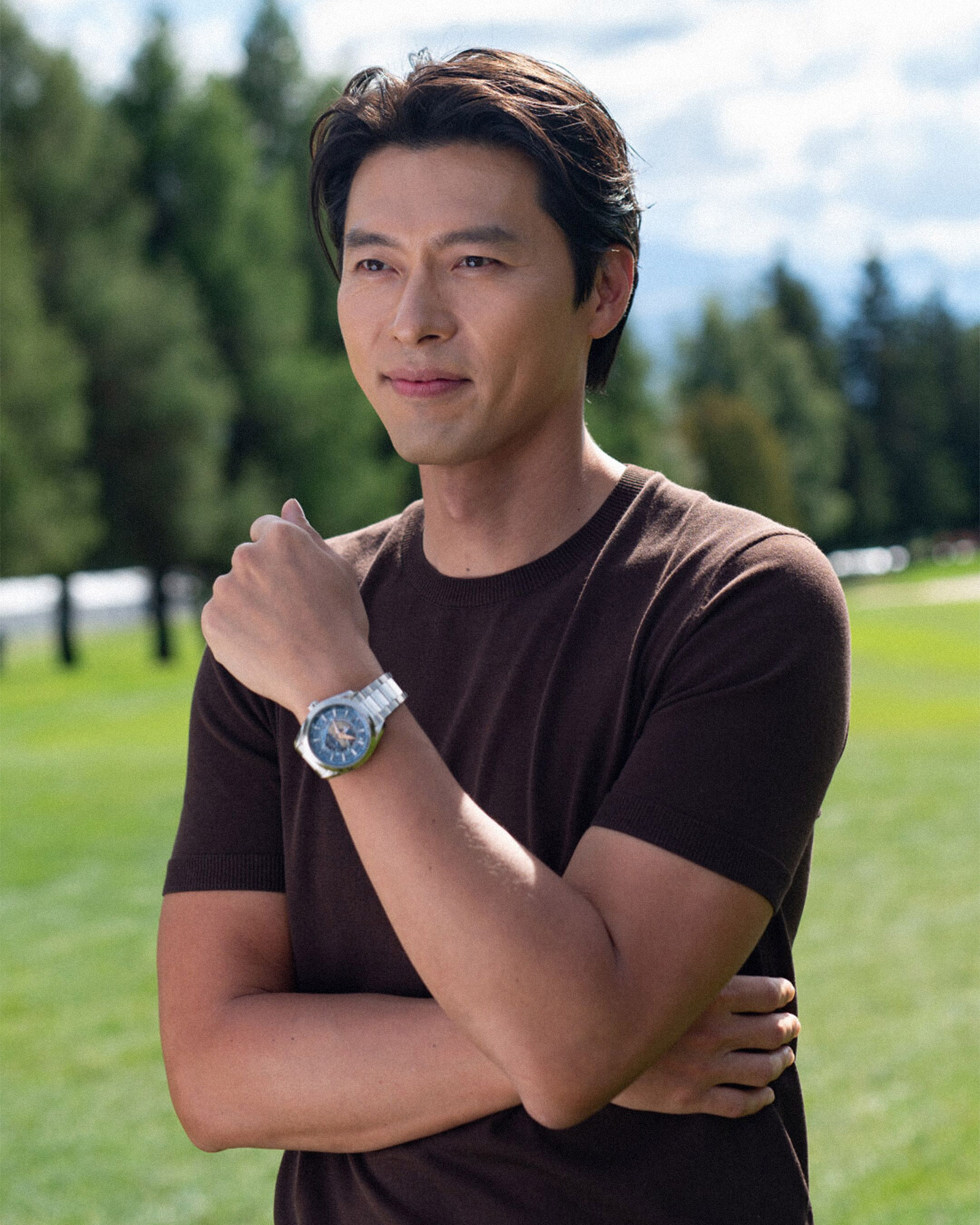 Hyun Bin, who is a golf player in real life, played a full 18-hole with Omega president and CEO Raynald Aeschlimann. Aeschlimann said that Hyun Bin was a “superb player,” praising the Korean actor’s skills. Hyun Bin also reminisced about his time in Switzerland in his speech at the event. “I spent time in Switzerland during the filming of Crash Landing on You, so I really feel a personal connection to this country. It’s wonderful to be back, especially with my friends at OMEGA. Their standards of style and precision are truly the best in the industry, and it’s an honor for me to represent them,” he said.