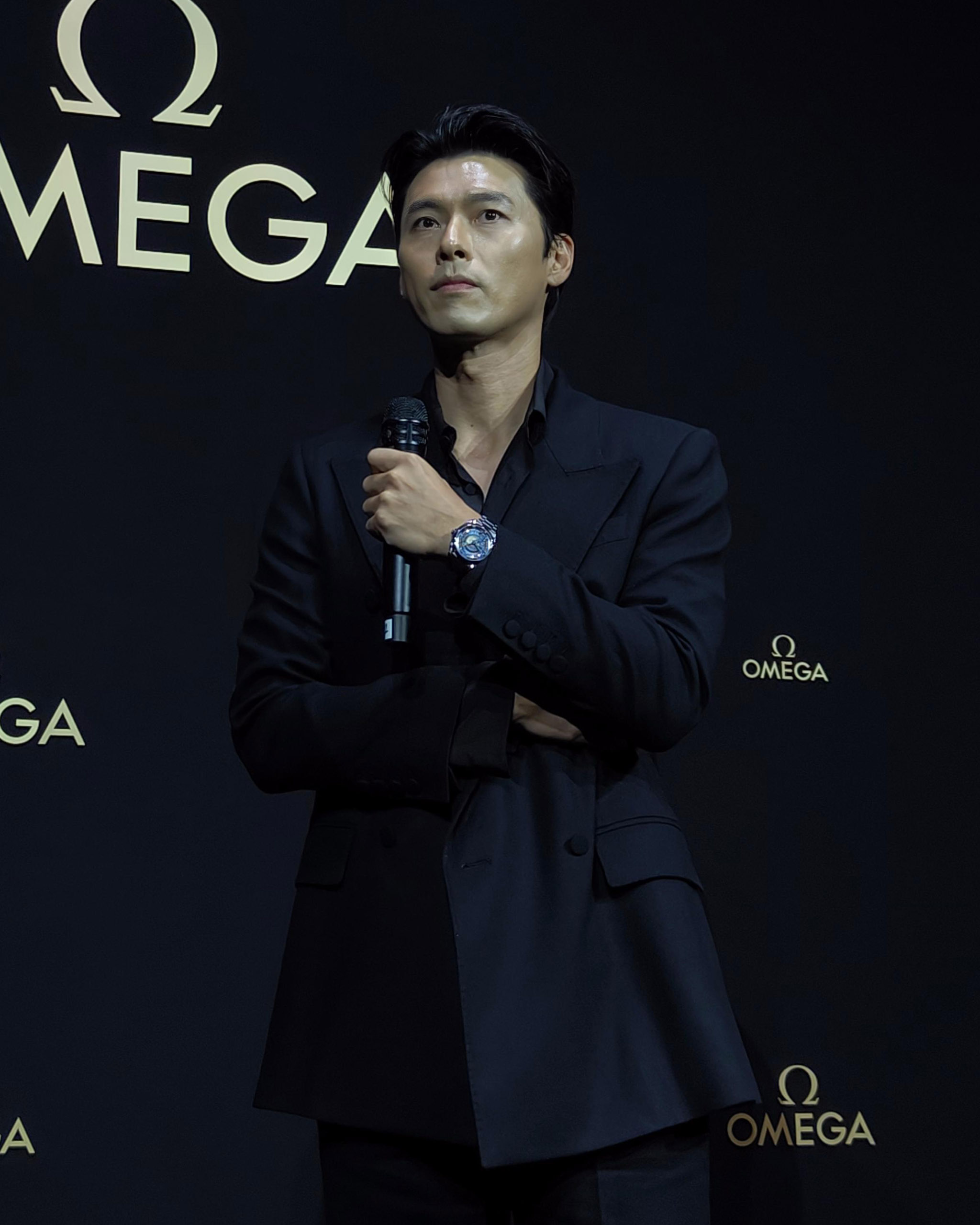 Hyun Bin speaks at the Omega celebration. Photo by Pam Quiñones