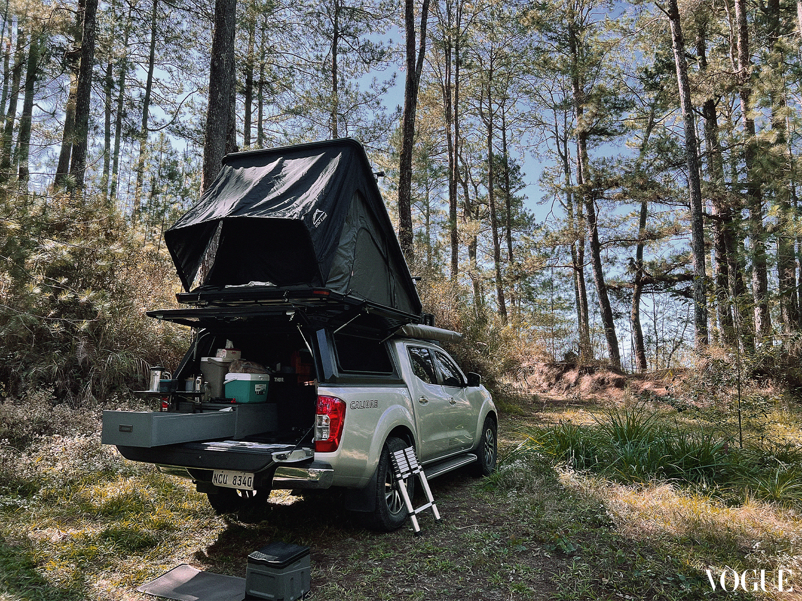 As the trip is centered around the road network, the truck needed an all-terrain set of tires. For camping onboard, Abella added a roof tent for sleeping, a portable refrigerator and freezer, an additional air conditioner, an outdoor shower, an 84-liter water tank with faucet, kitchen equipment including a stove, pots and pans, camping chairs and table, a fire pit, an awning for extended shade, two 160-watt solar panels, and a small generator that can power appliances while charging her devices. The preparation alone would have been daunting for most women, but Abella is a trained diesel engine mechanic. She oversees civil works projects for her family business in construction and land development.