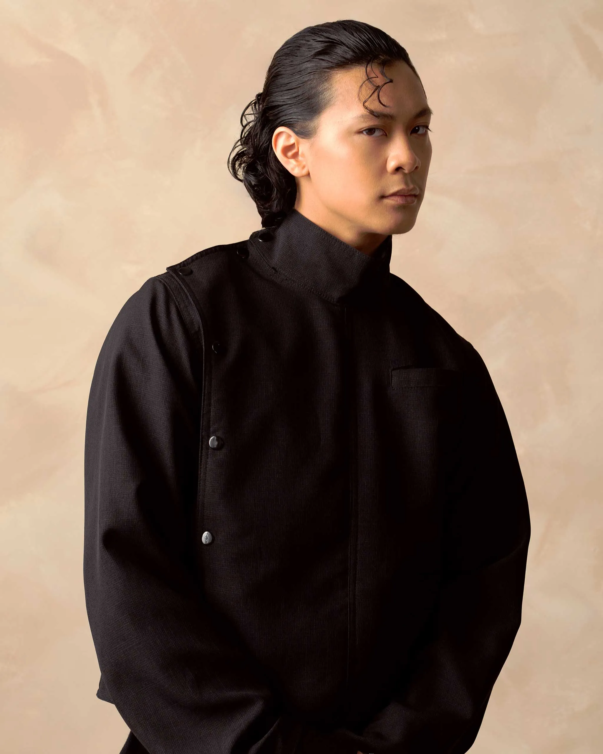 NEUWIEDIA jacket, LOUIS VUITTON trousers, and vintage shoes. Photographed by Ryan Barhaug