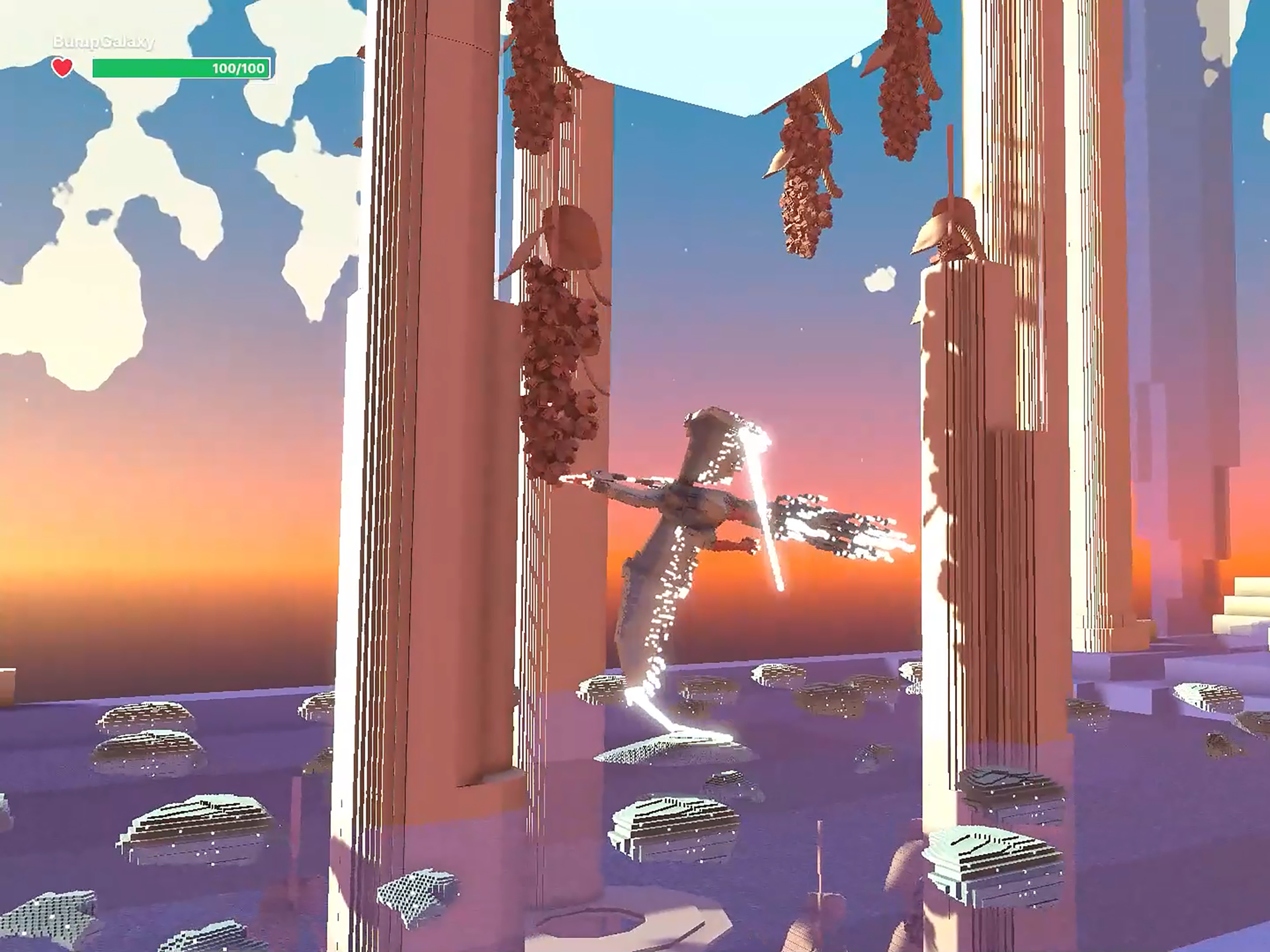 Honestly, anything that floats or glows I love. I very much like the magical quality that online spaces can have. Gaming mechanics add to this magical feeling as well. In the meditation forest in Bump Galaxy on Minecraft, people could plant a small tree sapling before they start their meditation. When the meditation is over, they could open their eyes and find that the tree has fully grown.