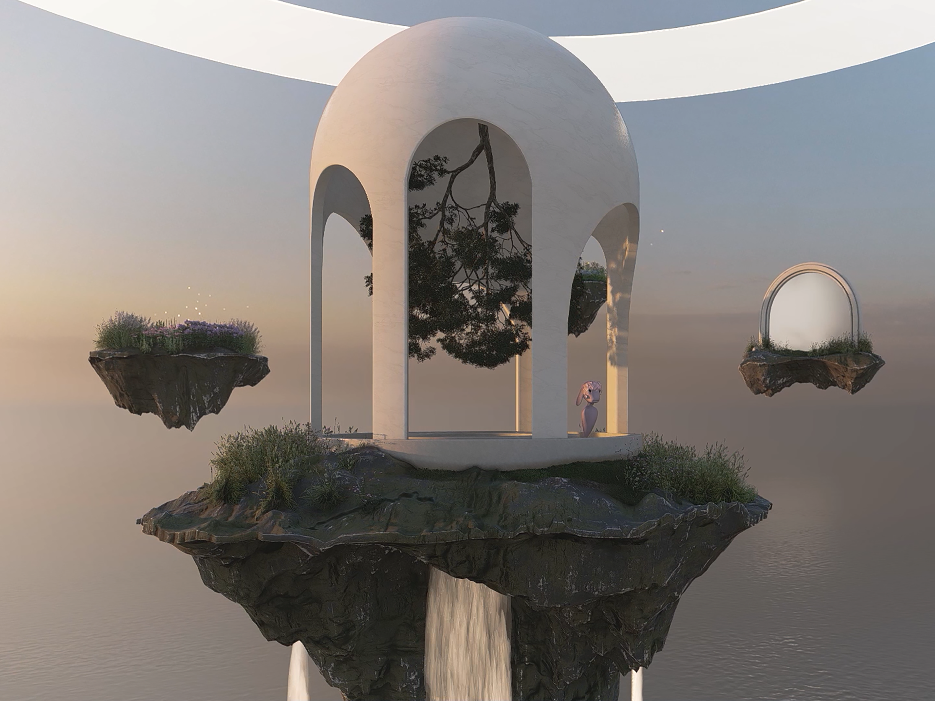 When I first joined the platform, everything built in it had sharp geometric edges, high-contrast, dark [and] neon colors—very intense and cyberpunk, as you can imagine. Personally, I prefer online spaces that are more soothing. The Somnium Treehouses I designed to feel like a mother’s womb—like a warm embrace, hence the shape and color.