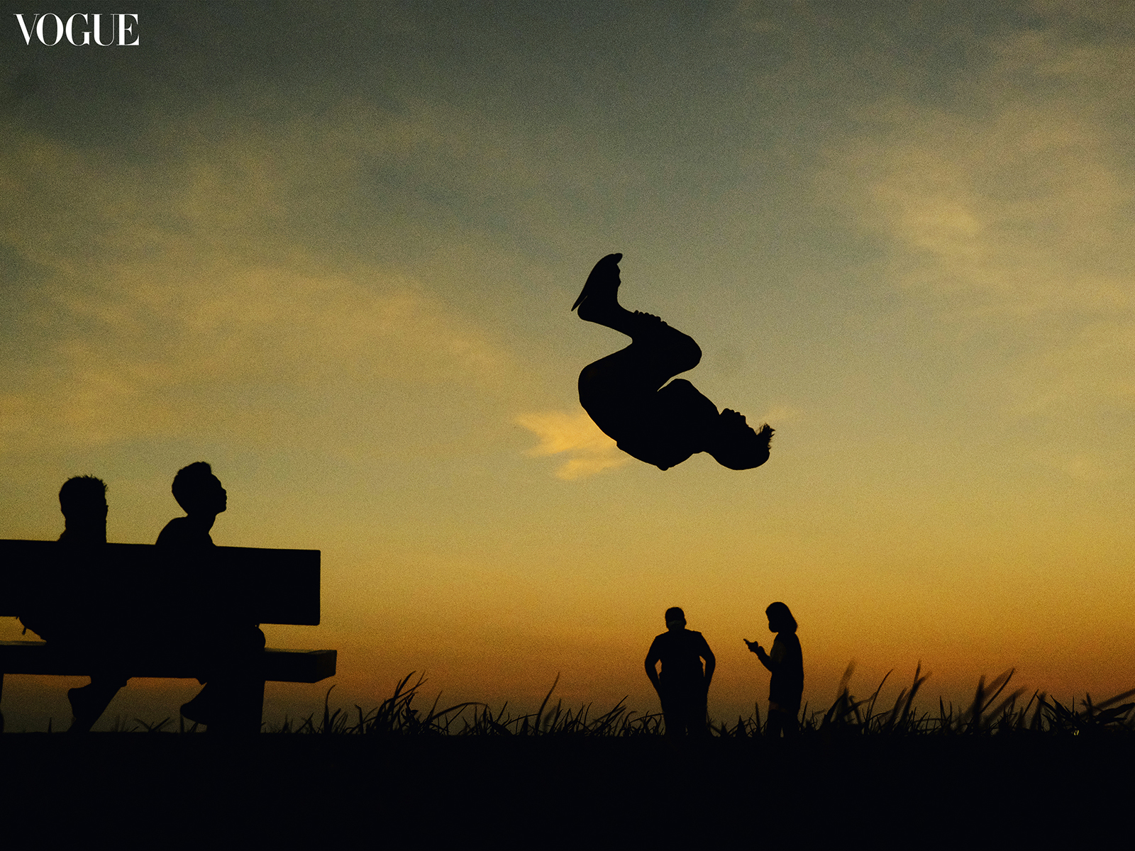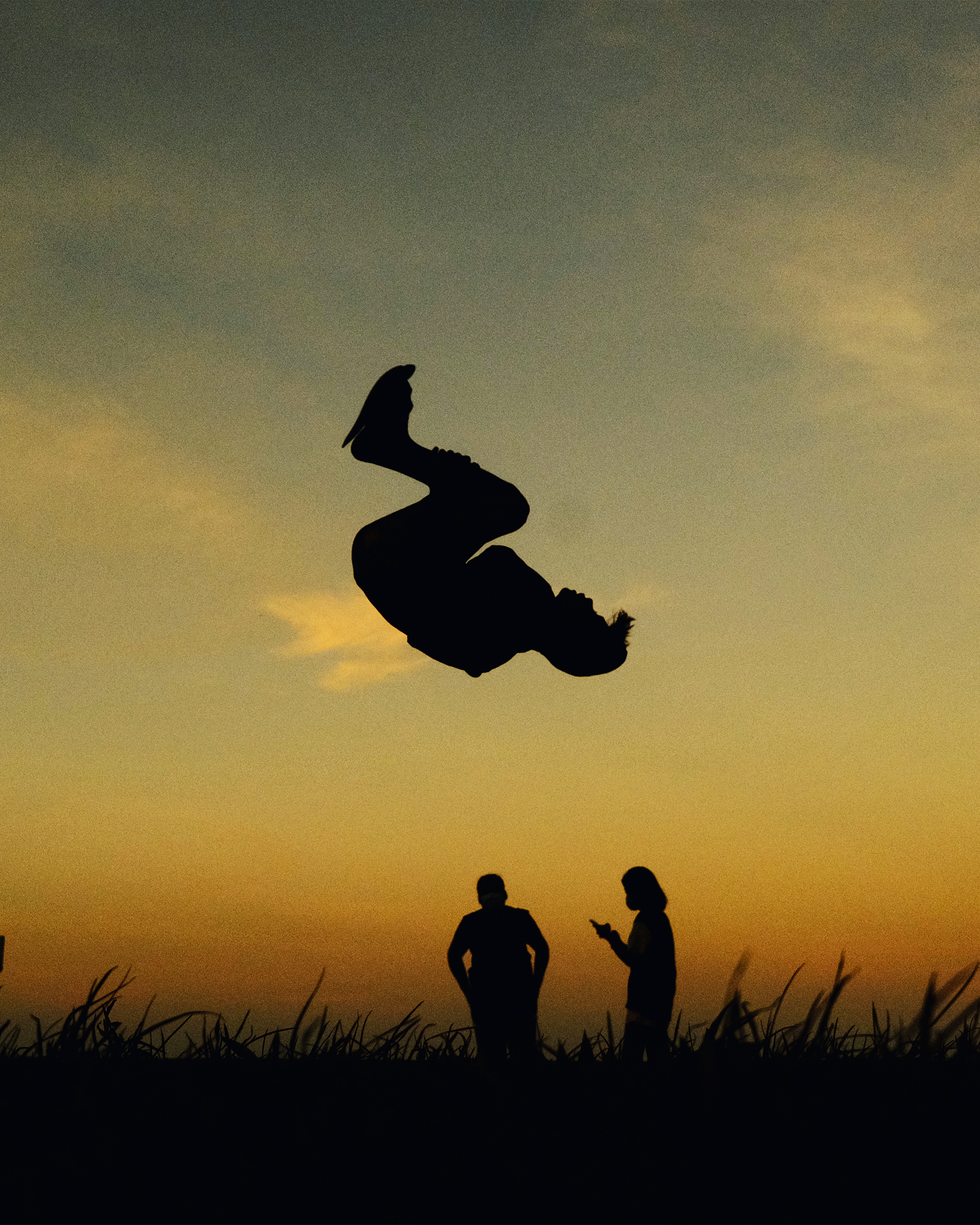 A young boy somersaults while his friends watch from a bench on Rizal Boulevard, Dumaguete. Photographed by Hersley-Ven Casero.