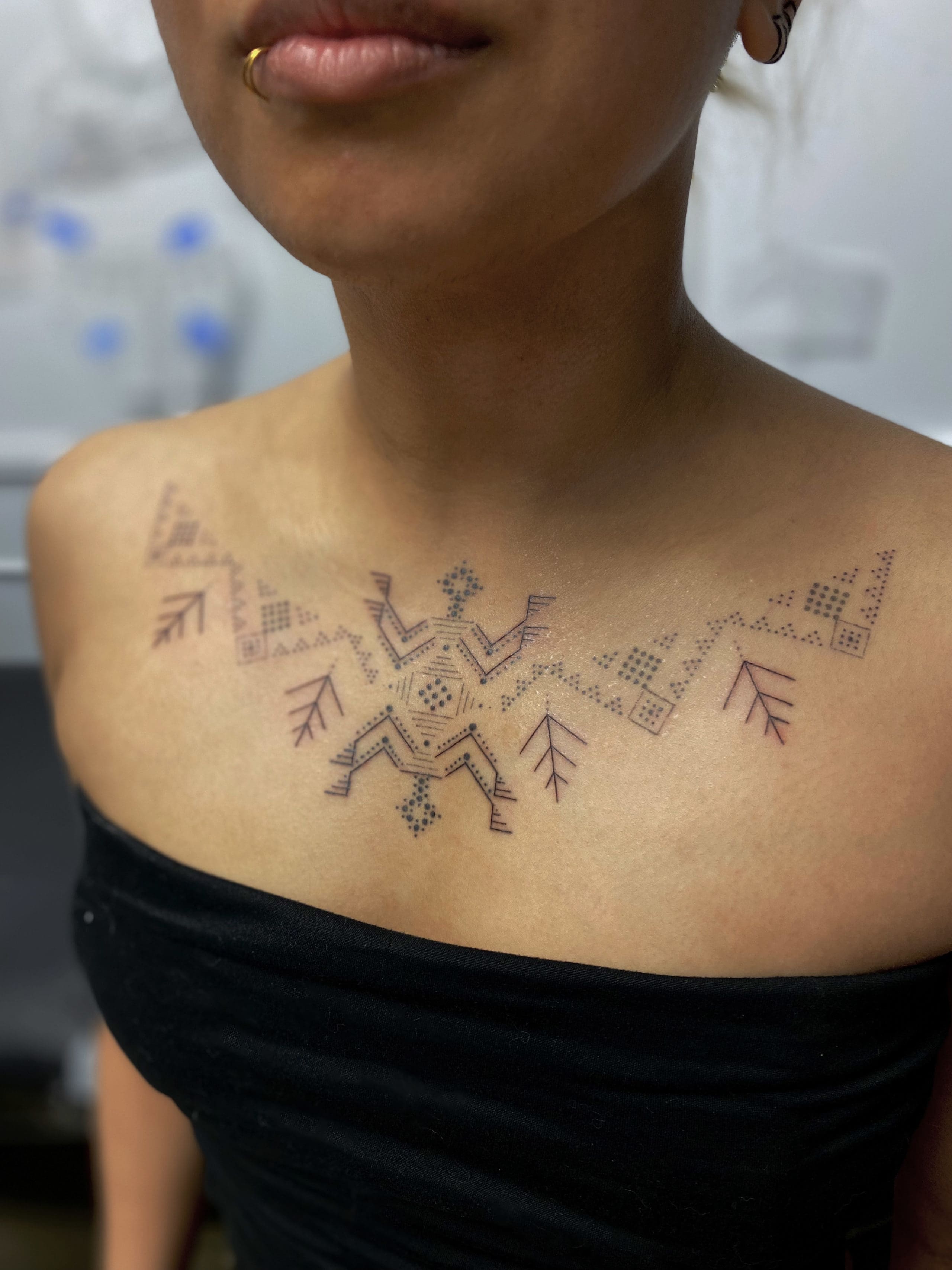 Inspiration: Drawing from precolonial tattooing traditions as well as all eras and mediums of Philippine aesthetics, filtered through my own design sensibilities to serve as a conduit for the personal narrative of each client. I am inspired by every individual who chooses to hold ceremony together, tattooing an expression of their history and intentions, acknowledging their healing, celebrating their evolution. I am inspired by our ancestors resistance, and its relevance to contemporary movements of reclamation and abolition.