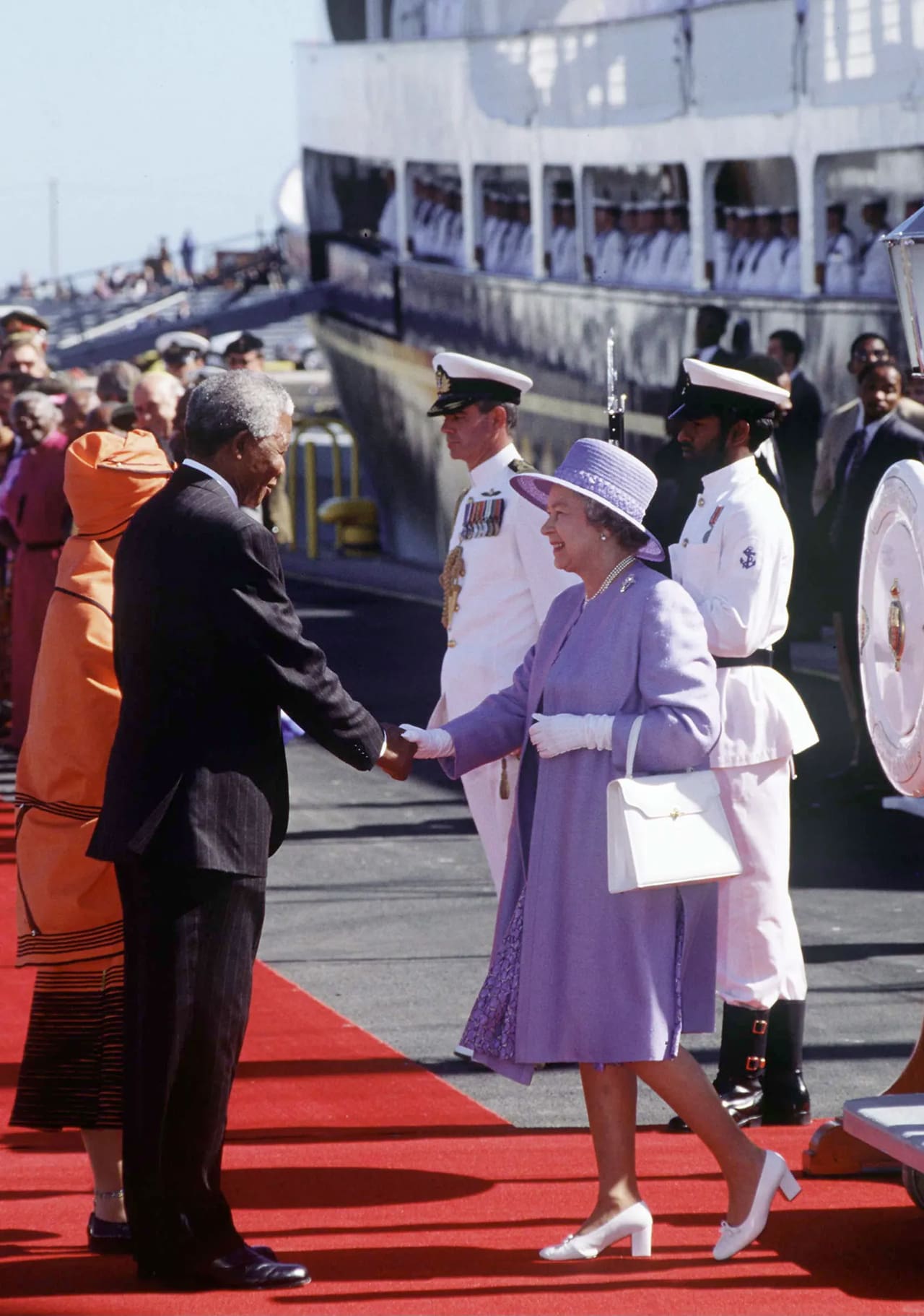 Meeting Nelson Mandela in 1995, which the Queen later described as “one of the outstanding experiences of my life”. Getty Images