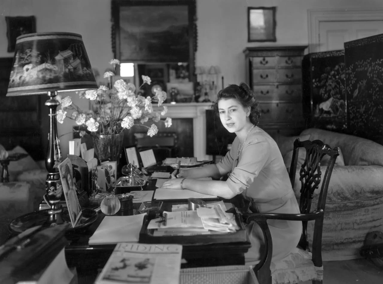 The future queen at work in her Buckingham Palace study in 1946. Getty Images