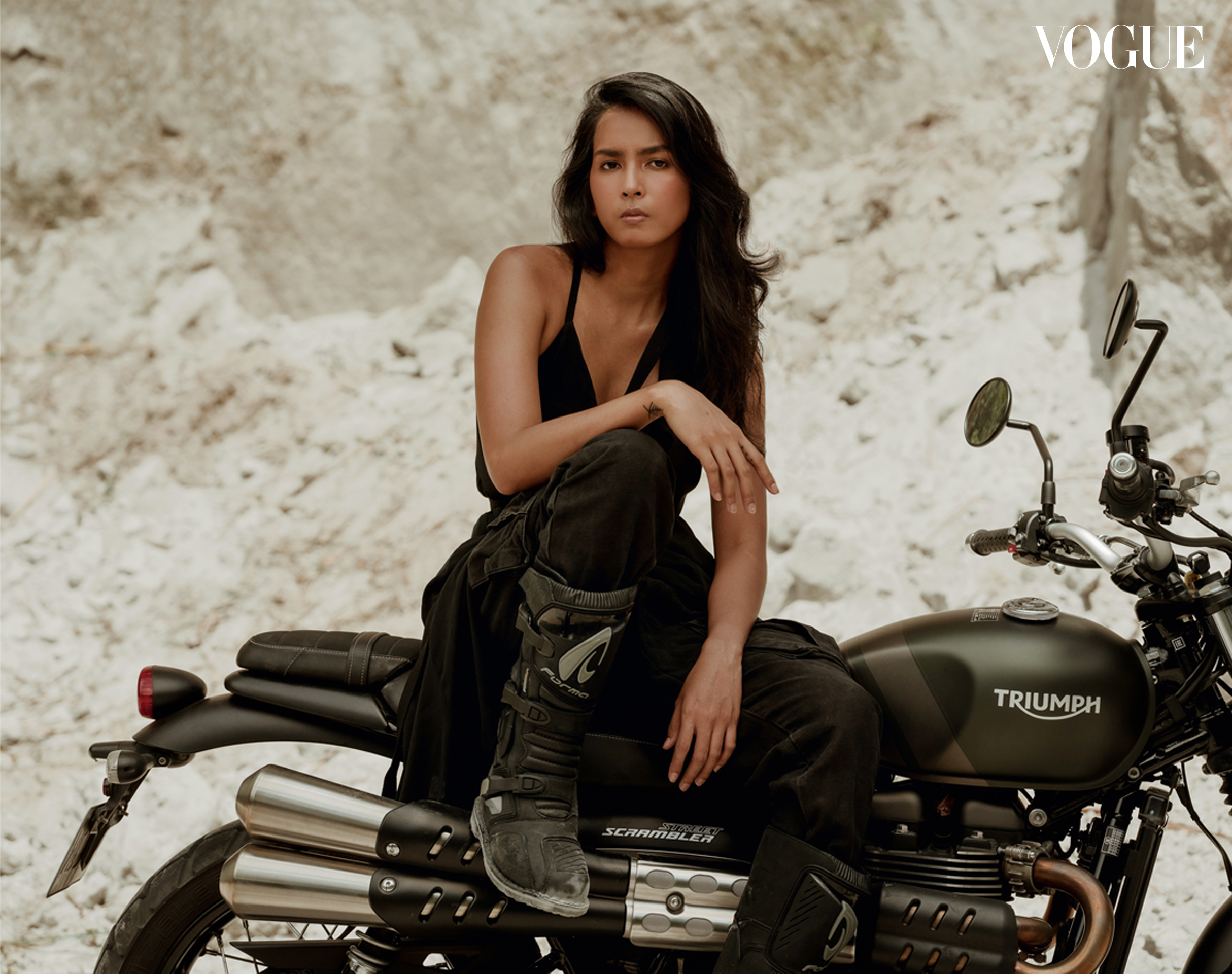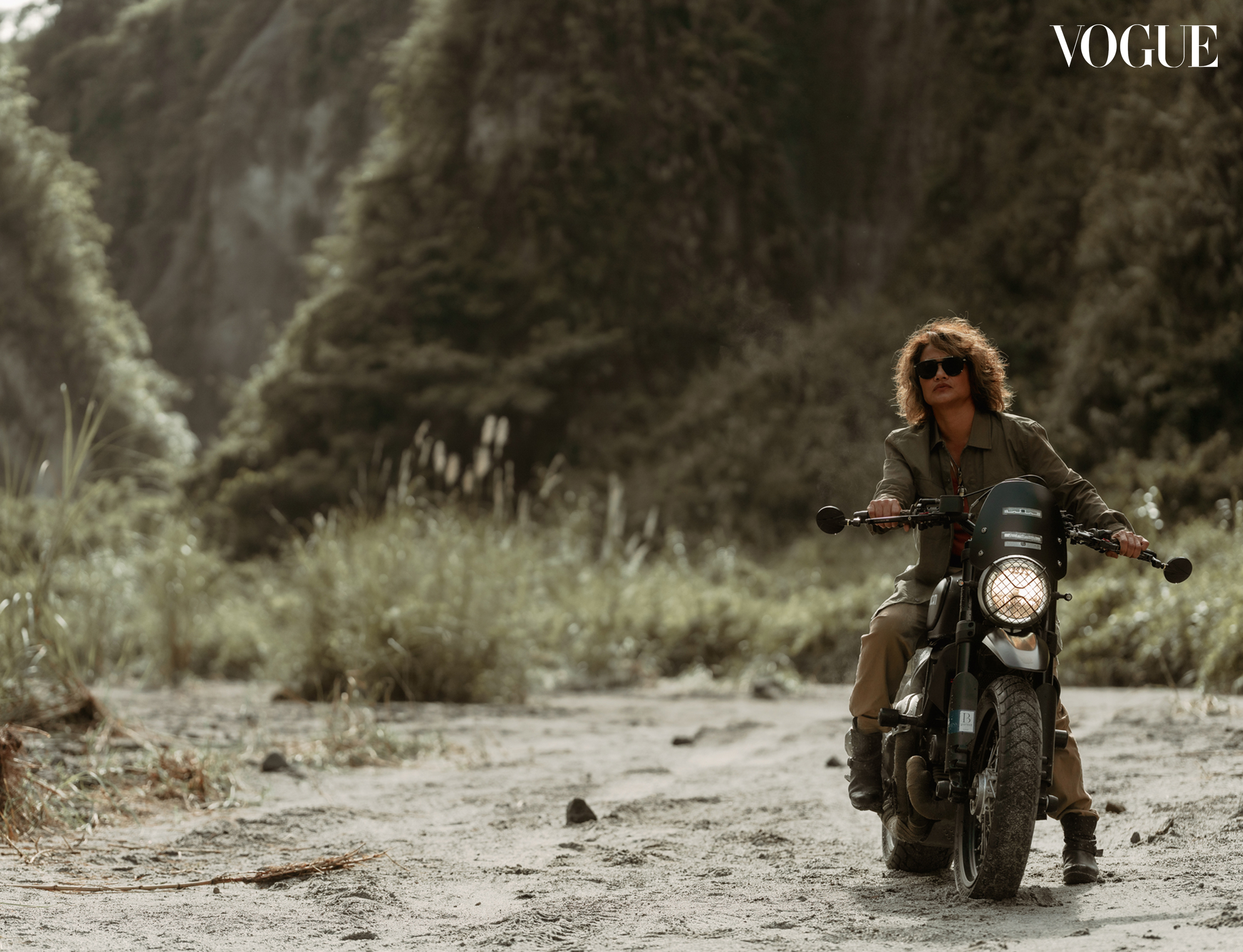 In terms of riding experience, Karthe has clocked the most years and mileage worldwide. She got her first big bike three decades ago and has toured Chengdu to Tibet one year, the South Island of New Zealand another, and has ridden from Manila to Cotabato. “I’m more of that kind of rider,” she says. “I love camping, and I’m a sailor; my lifestyle is all about roughing it.” Carol, a former swim coach, has pivoted to interior design, but remains constantly on the move. Shortly after the Vogue shoot, she left for an extended trip to South America to ride horses and play polo.