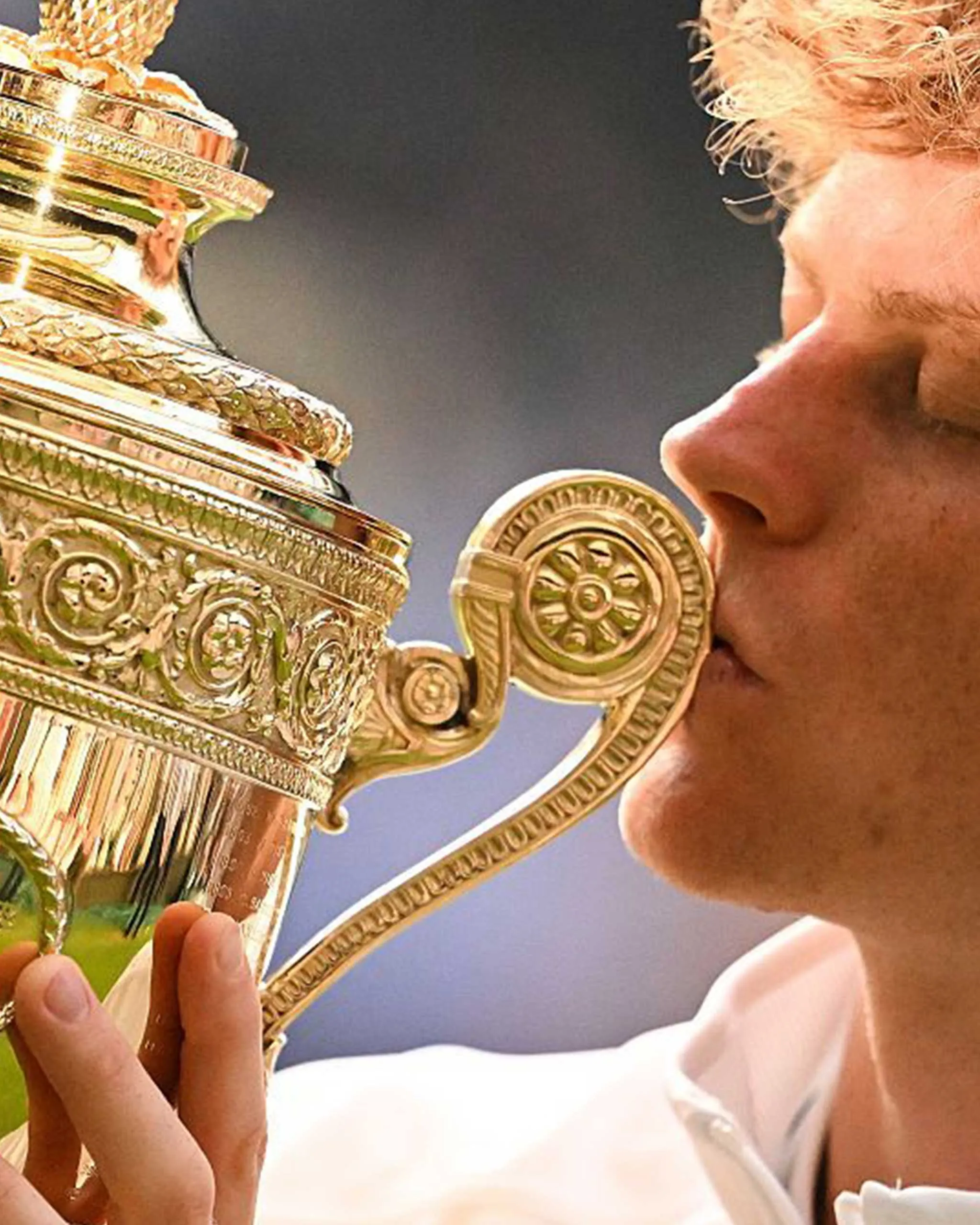 And then, high drama: Serving at 4-3 in the fourth, the score 15-40, Sinner suddenly faced three break points. If Alcaraz were to win any of them, the match would essentially be reset. It was an eerie reminder of Sinner’s three match points against Alcaraz in the French. But Sinner bore down and rattled off four straight points—maybe the most important points of his career—to go up 5-3. Serving the match out two games later, he was Wimbledon champion—the first Italian to claim the title.