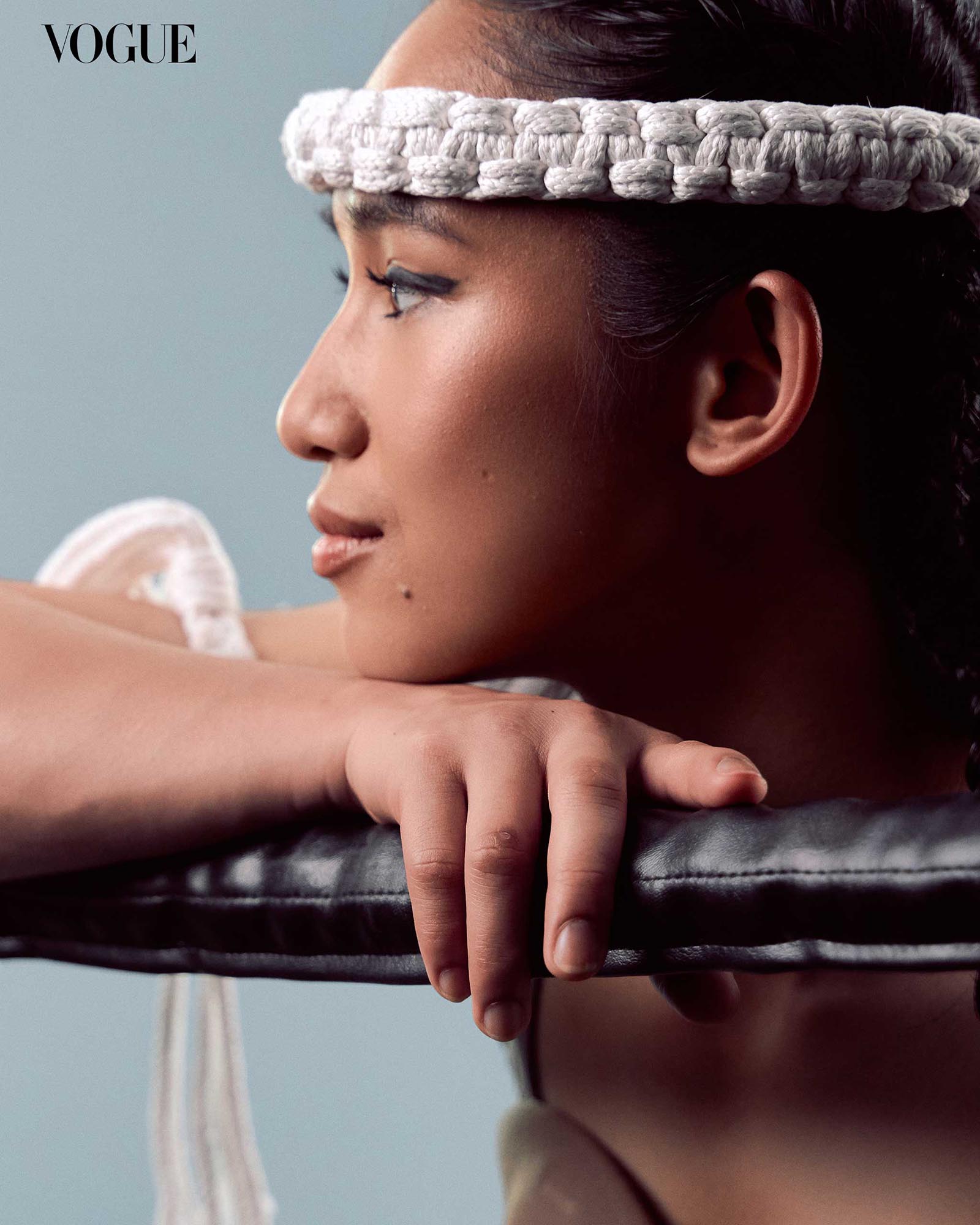 “My ancestors were warriors … We’re naturally fighters; it’s just innate.” Islay wears an ALEXANDER WANG dress. Photographed by Renzo Navarro for the February 2025 Issue of Vogue Philippines