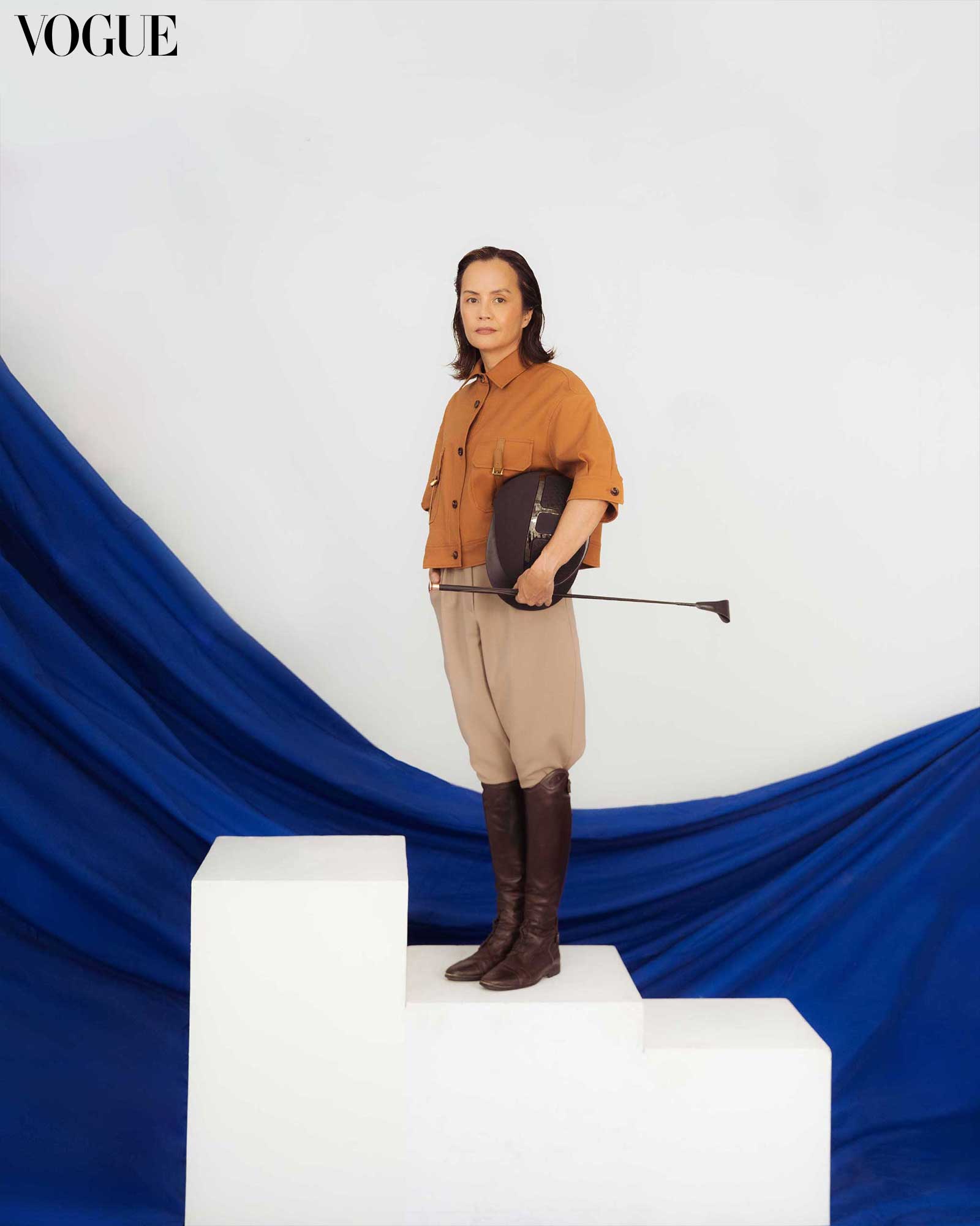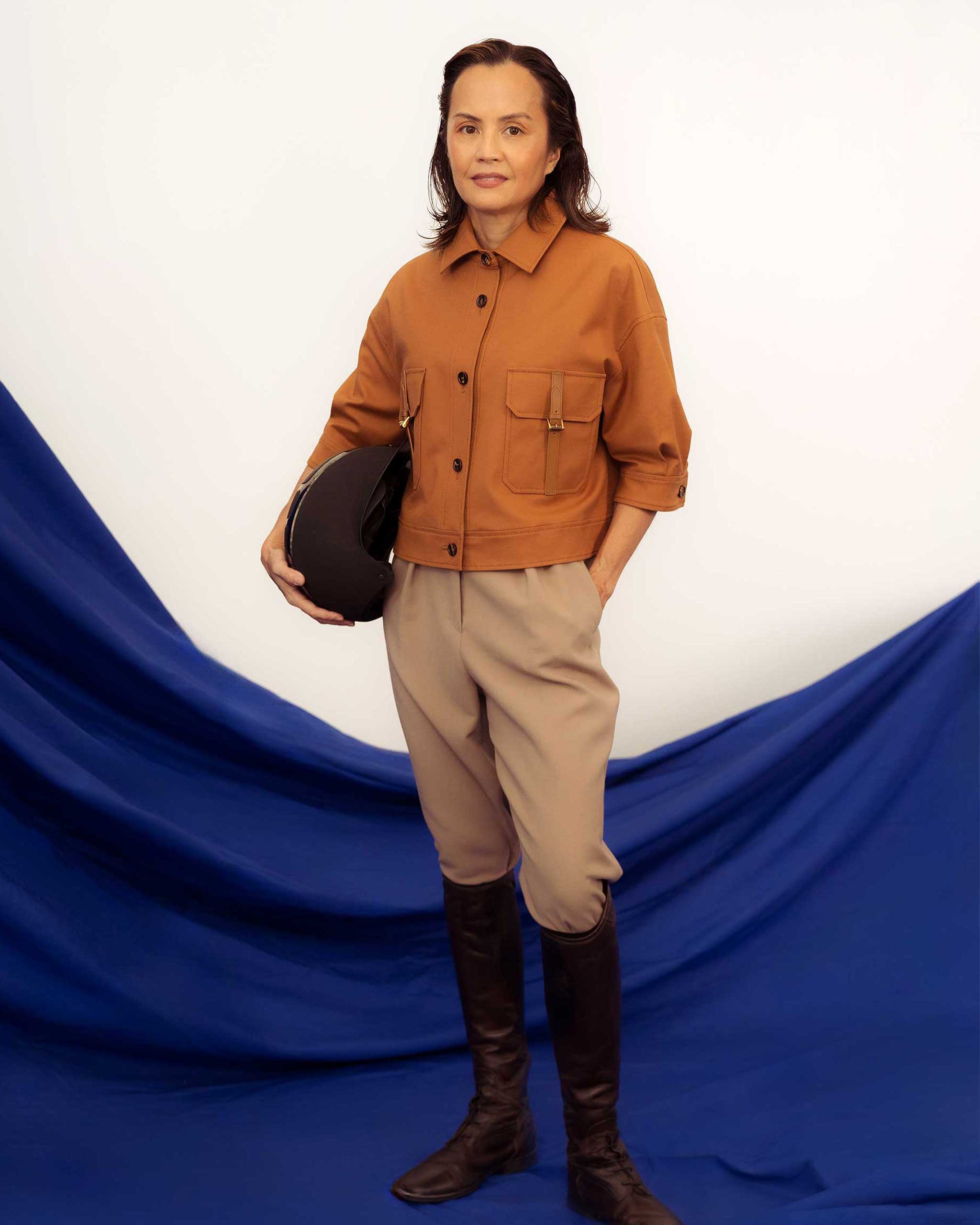 Janine wears a MAX MARA overshirt and pleated trousers. Photo by Kim Angela Santos, styled by Roko Arceo