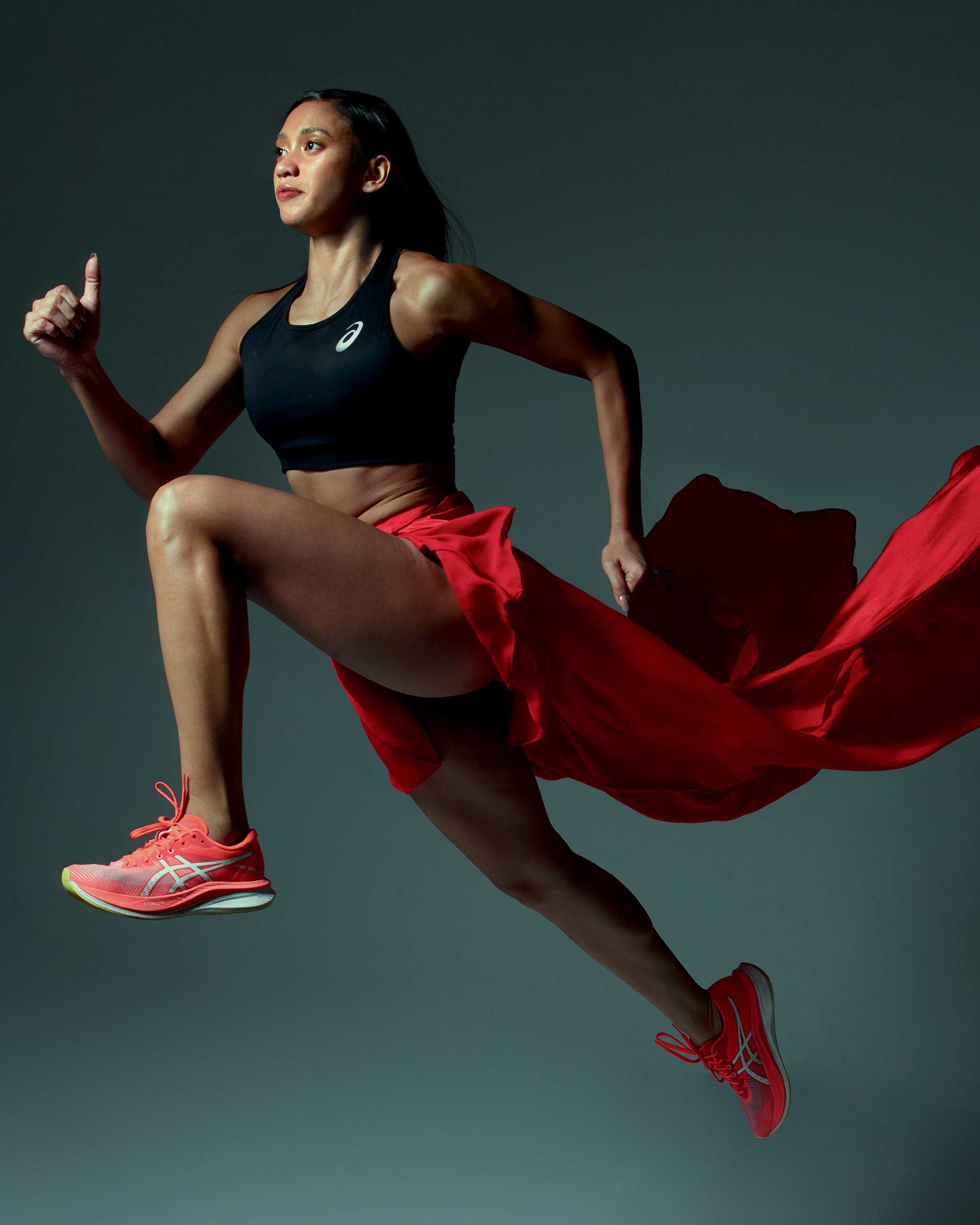 “When we finished, it wasn’t on my mind that we broke the record; we were just happy we were second place,” she says in Filipino, behind gold medalists Vietnam. “During awarding, we were surprised that we broke the 30-year-old record by our legends Elma Muros and Lydia de Vega. I cried.”