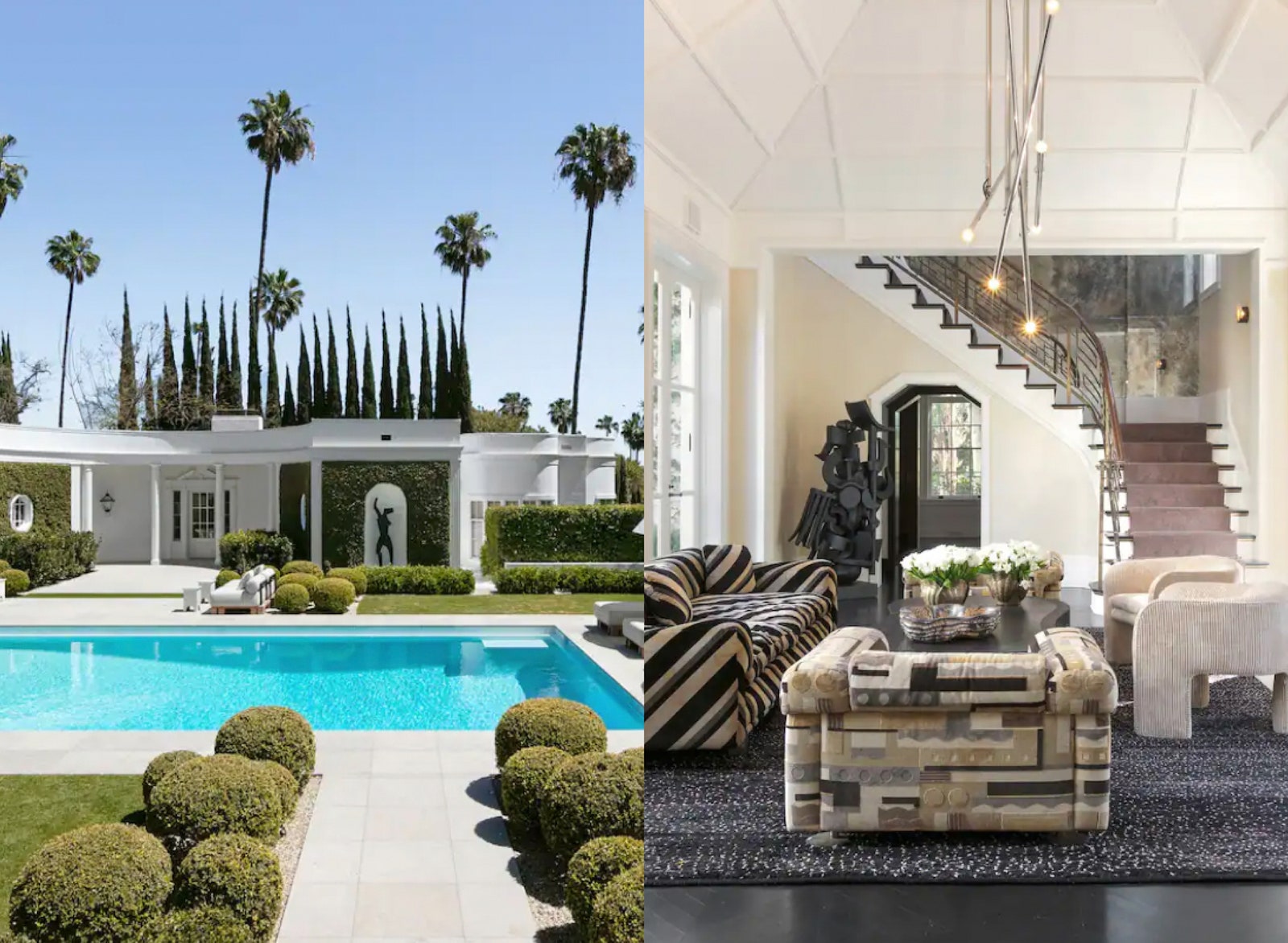 This Beverly Hills home listing is meant for those who want to live large while in L.A.—complete with seven bedrooms, a records room, and a movie lounge, it feels more like a movie star abode than an Airbnb. It’s also right off Sunset Boulevard, meaning you’re a quick drive to all the restaurants, bars, and haute haunts West Hollywood is known for.