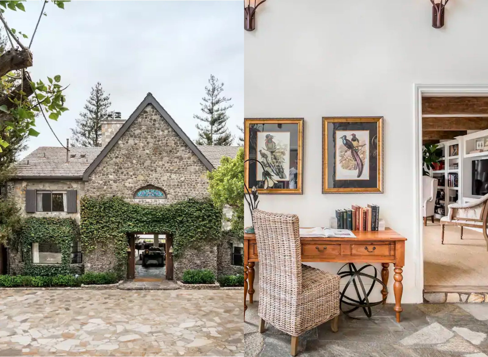 Overlooking Paradise Cove in Malibu is this Arts & Crafts-style mansion that sits upon three acres of terraced land and boasts a water view from almost every window. As the name suggests, stones are the defining feature of the house, inside and out. The rocky exterior is aesthetically continued indoors with old-world-feeling flooring of the same material.