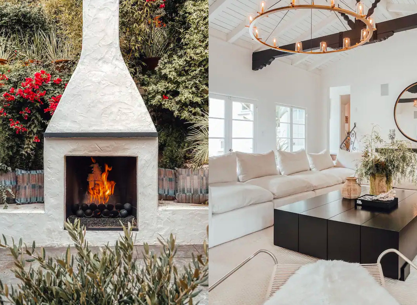 This Hollywood Hills home right off of Laurel Canyon Boulevard feels like a quaint oasis: the interiors are adorned in crisp whites, leafy green plants, and wood-beamed ceilings, while an outdoor space is covered in purple blooms and has a wood-burning fireplace. But that doesn’t mean it’s off the beaten track: minutes away from Sunset Boulevard and the buzz of West Hollywood, you can very much indulge in Los Angeles’s vibrant social scene.