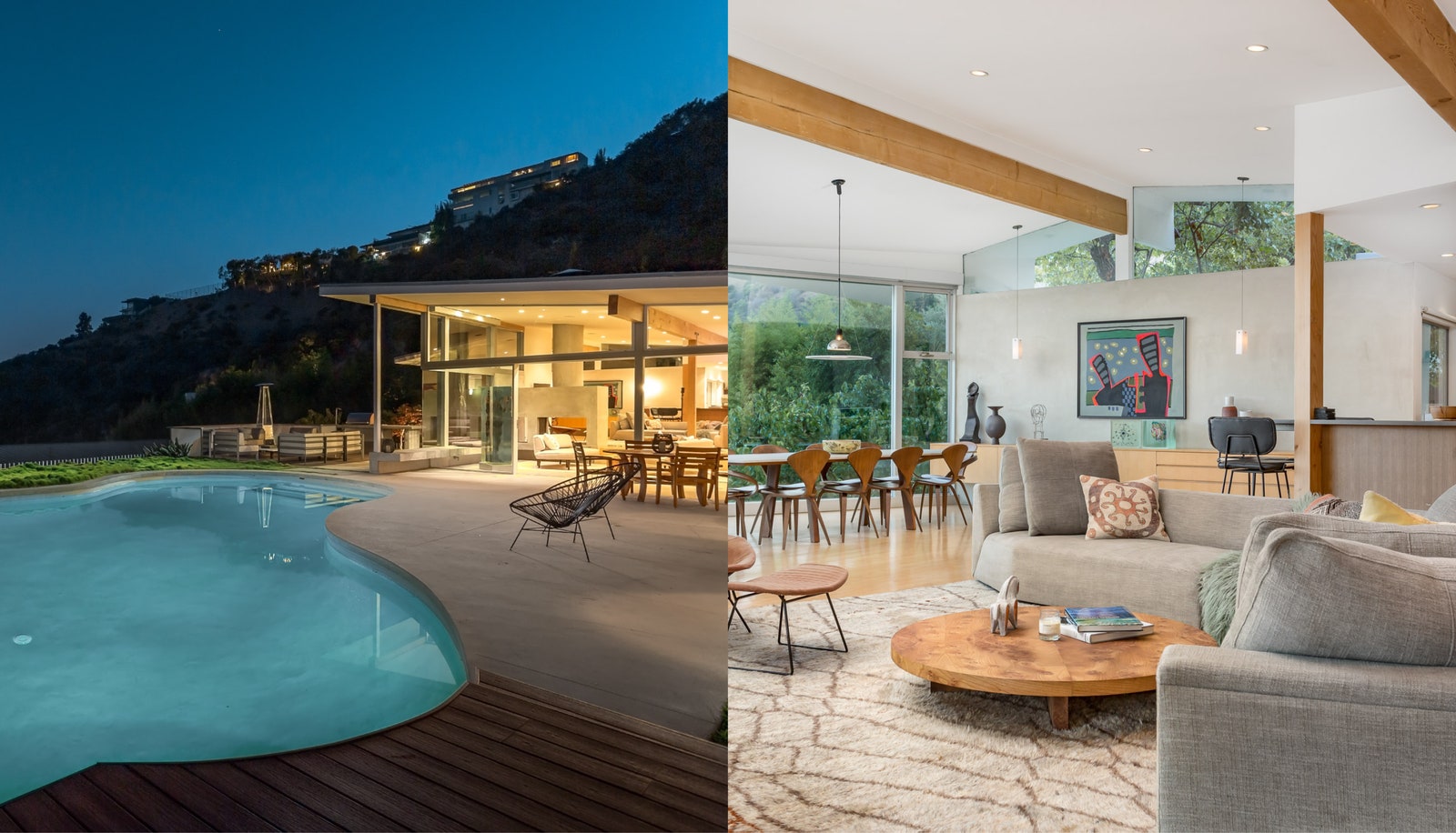 Los Angeles homes have long embraced indoor-outdoor living. Nowhere is that more apparent than this geometrical Kayu wood home in Topanga, where floor-to-ceiling windows look out onto a wraparound deck where one can stare out into the expansive canyon below. Sunlight streams into a yoga studio, and in the back, there’s a perfect backyard alcove to enjoy your morning coffee. (Design aficionados, take note: the living room features a Togo sofa.)