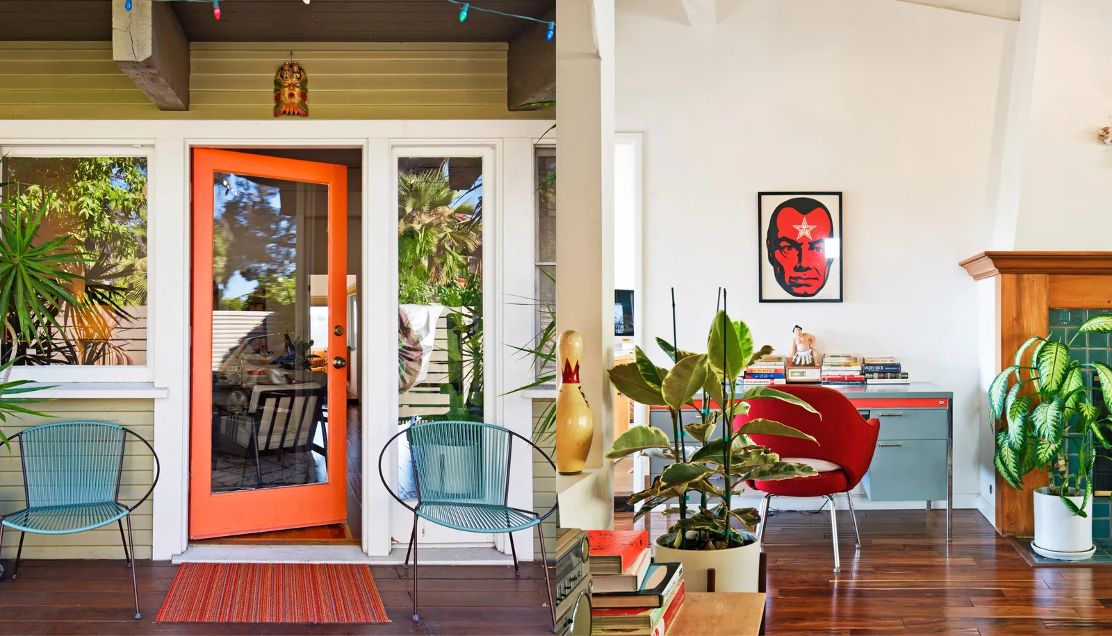 This Spanish-style villa dates back to the 1920s, and includes an iron staircase with a swirling floral motif banister, white oak floors, and wooden French doors. An added bonus? The covered patio, which is perfect for entertaining, rain or shine. (Except the former is highly unlikely—this is Los Angeles we’re talking about, after all.)