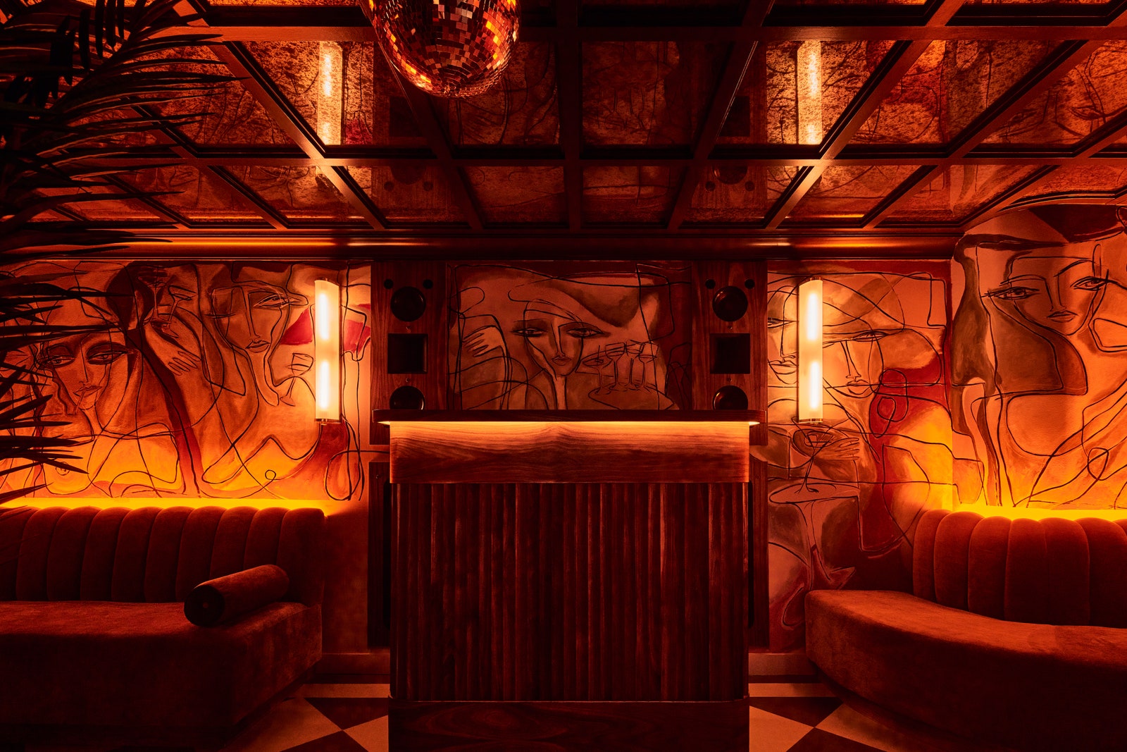 The nightlife haunt is instantly recognizable due to its Emelie Törling murals, which feature moody, Jean Cocteau-esque figures.