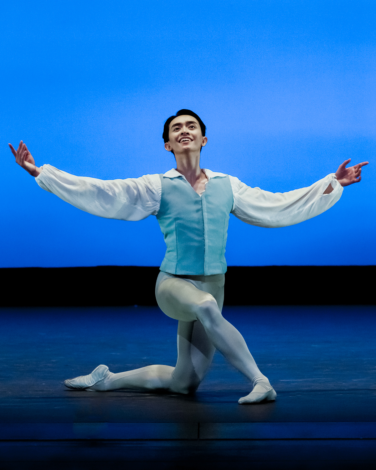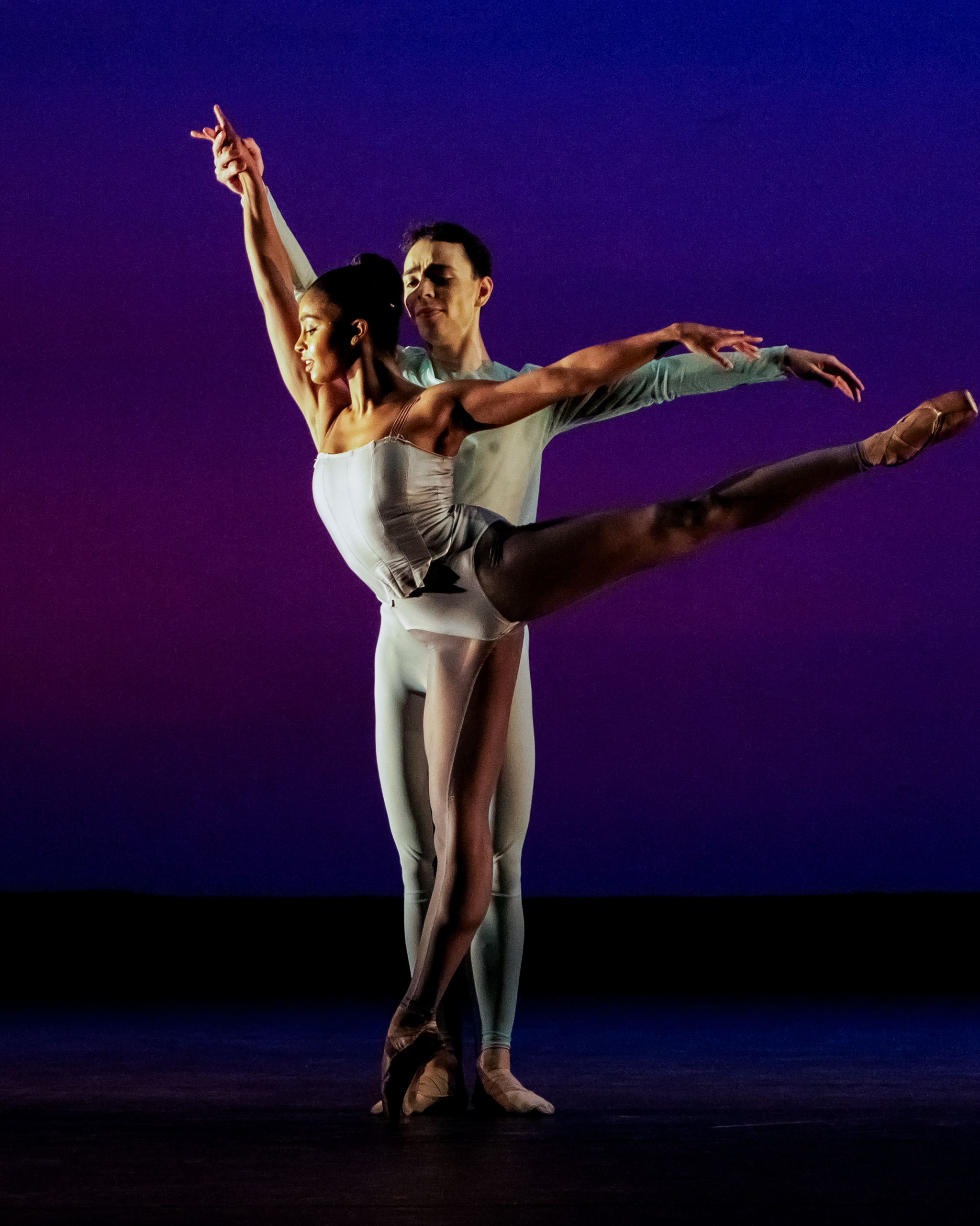 “Knife’s Edge” explains choreographer Houston Thomas, deconstructs traditional ballet steps, where “movements, positions, and rules are either followed or broken,” embodying the meaning of the title with the music acting “as a guidance, dictating time and movement.” It was danced by Madison Brown, Kayke Carvalho, YeonSeo Choi, Kyra Coco, Takumi Miyake, Silvie Squires, and Alejandro Valera Outlaw.