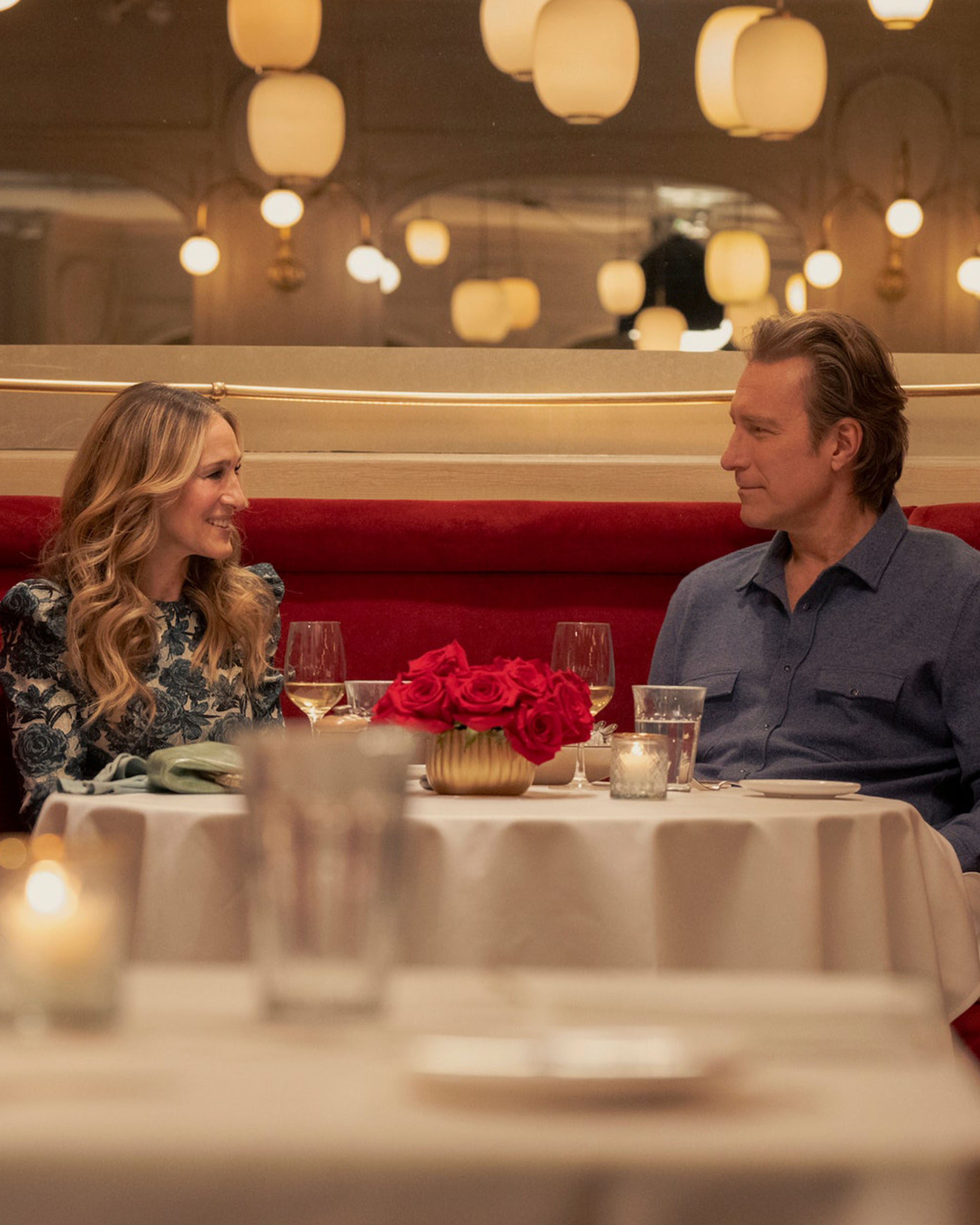 Herbert Wexley brags to his wife, Lisa, that he got a reservation for Valentine’s Day at Monkey Bar: (“I just got us a table at Monkey Bar,” he says. “Let’s just say that Henry is no longer going to college.”) And with good reason: it’s one of the hardest-to-get reservations in town after reopening in 2022 under the team behind 4 Charles. (The Midtown restaurant has been around since 1936, but closed during the pandemic.) The Art-Deco dining room is best known for its Ed Sorel mural, which depicts Jazz Age icons.