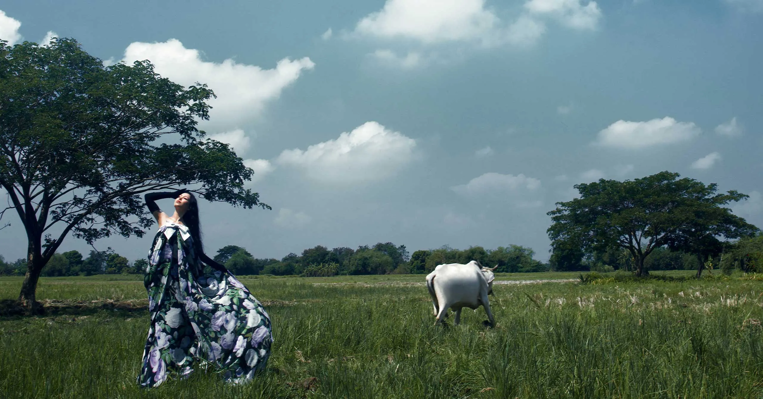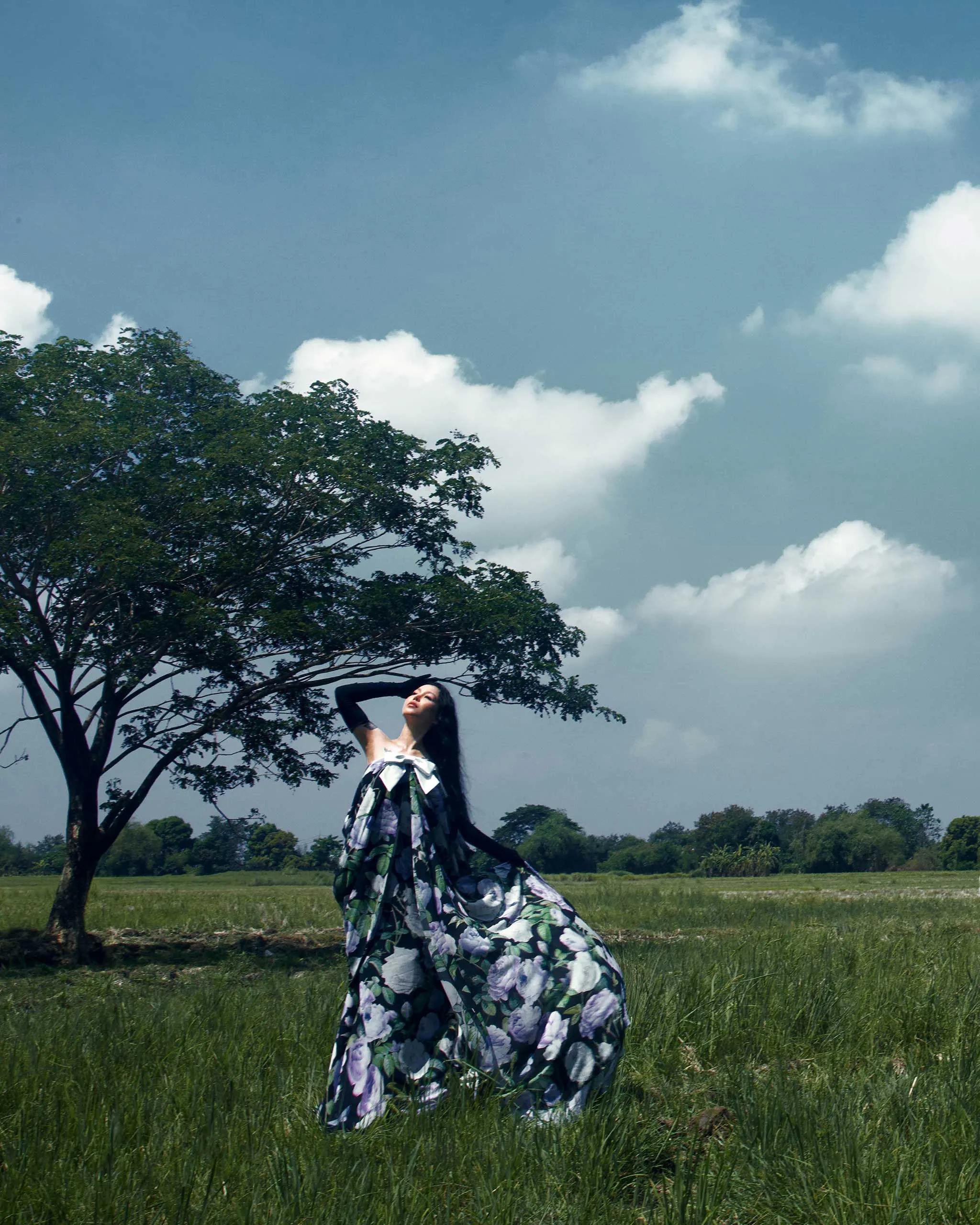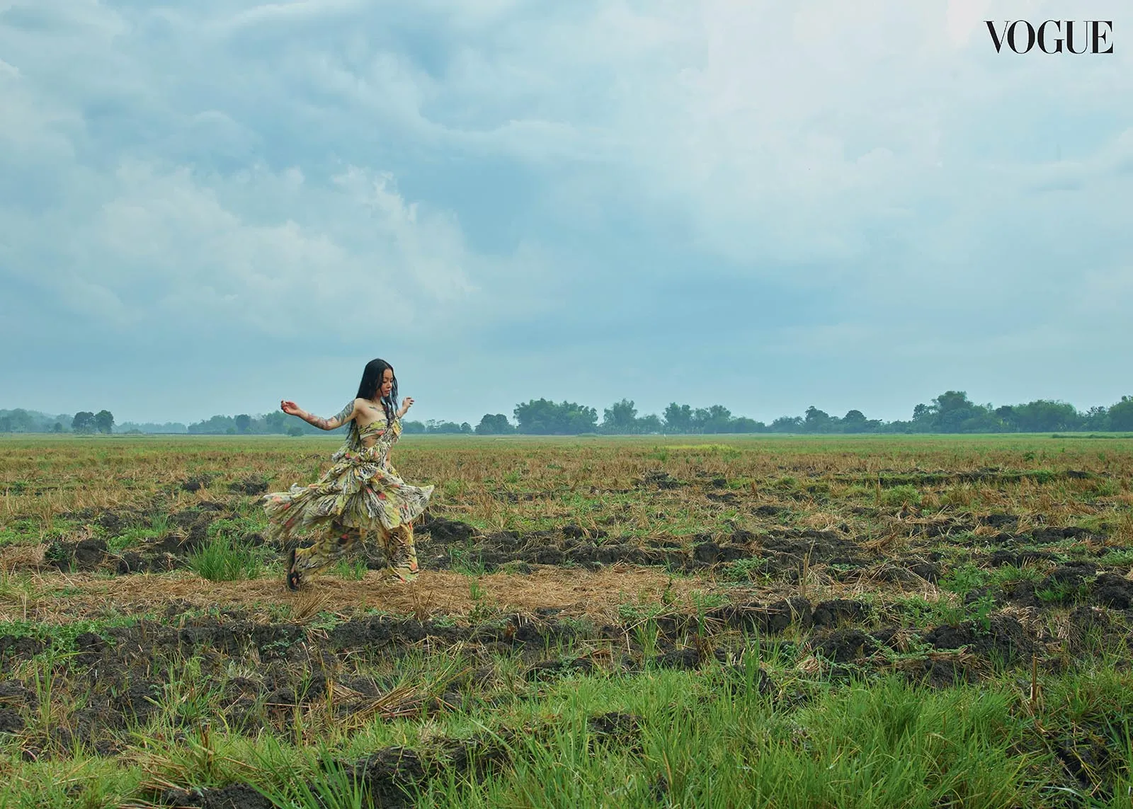 RICHARD QUINN dress and gloves. Photographed by Mark Nicdao for the October 2025 Issue of Vogue Philippines