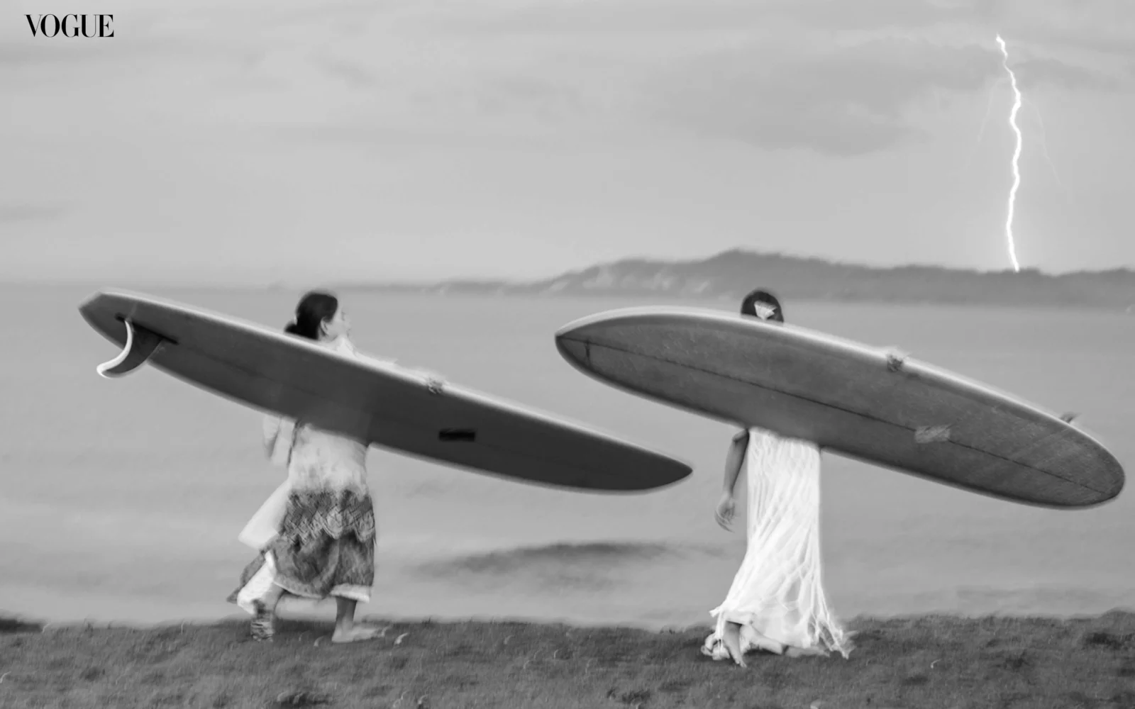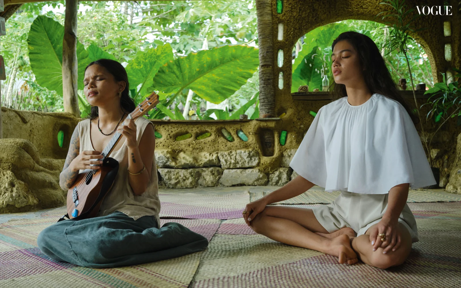 Model Natasha Neilson with musician Maria Tokong in Siargao. Photographed by Sharif Hamza for the September 2025 Issue of Vogue Philippines