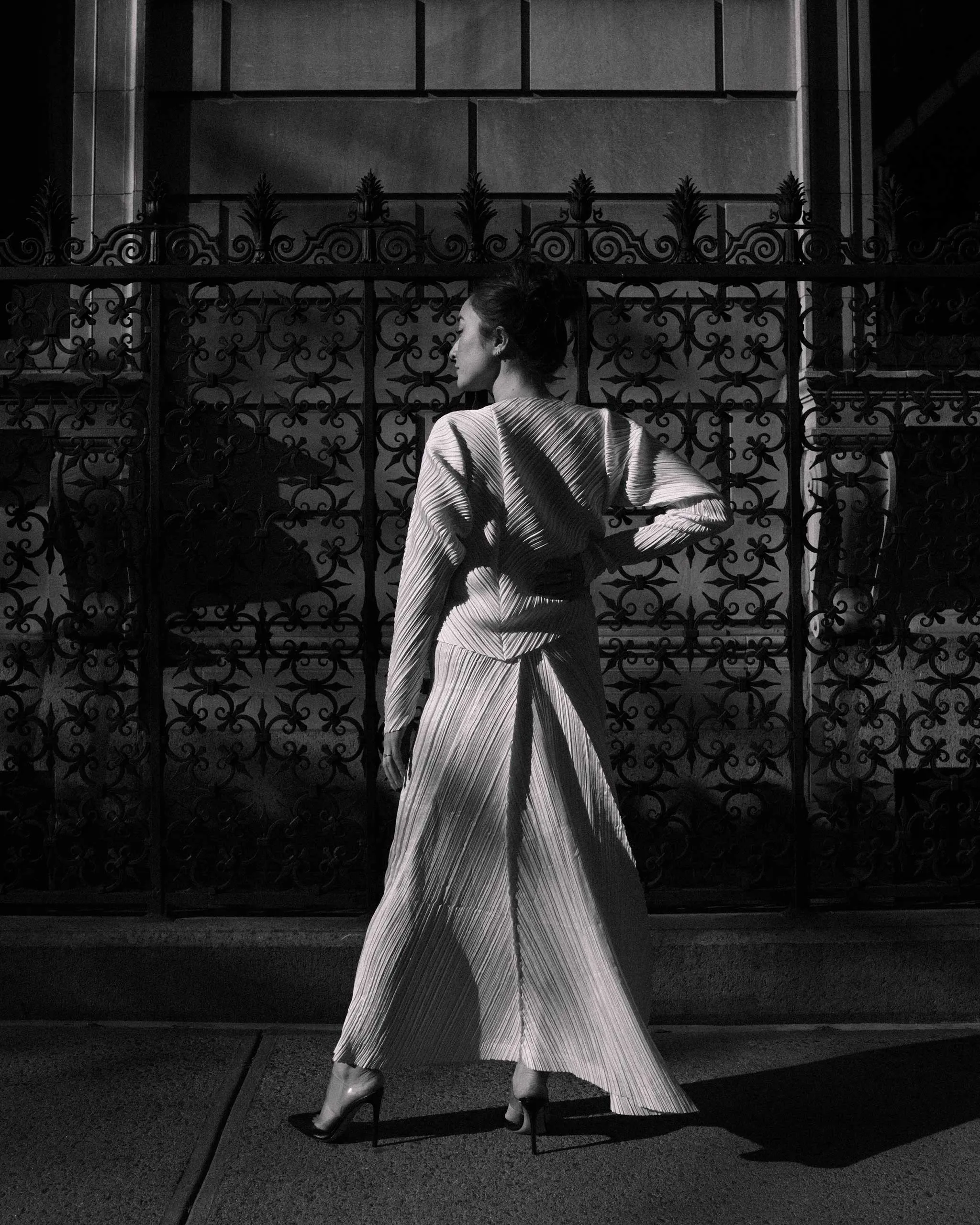 For her other wedding looks, Nikeyu wanted to find ways to honor her Japanese heritage. “For me, that began with Issey Miyake. He wasn’t just a designer—he’s actually the reason my parents met,” shares the bride. “My father introduced him to Irving Penn, which led to their long-standing creative collaboration and friendship. Issey remained close to our family and was even the godfather to my brother, who was named after him.”