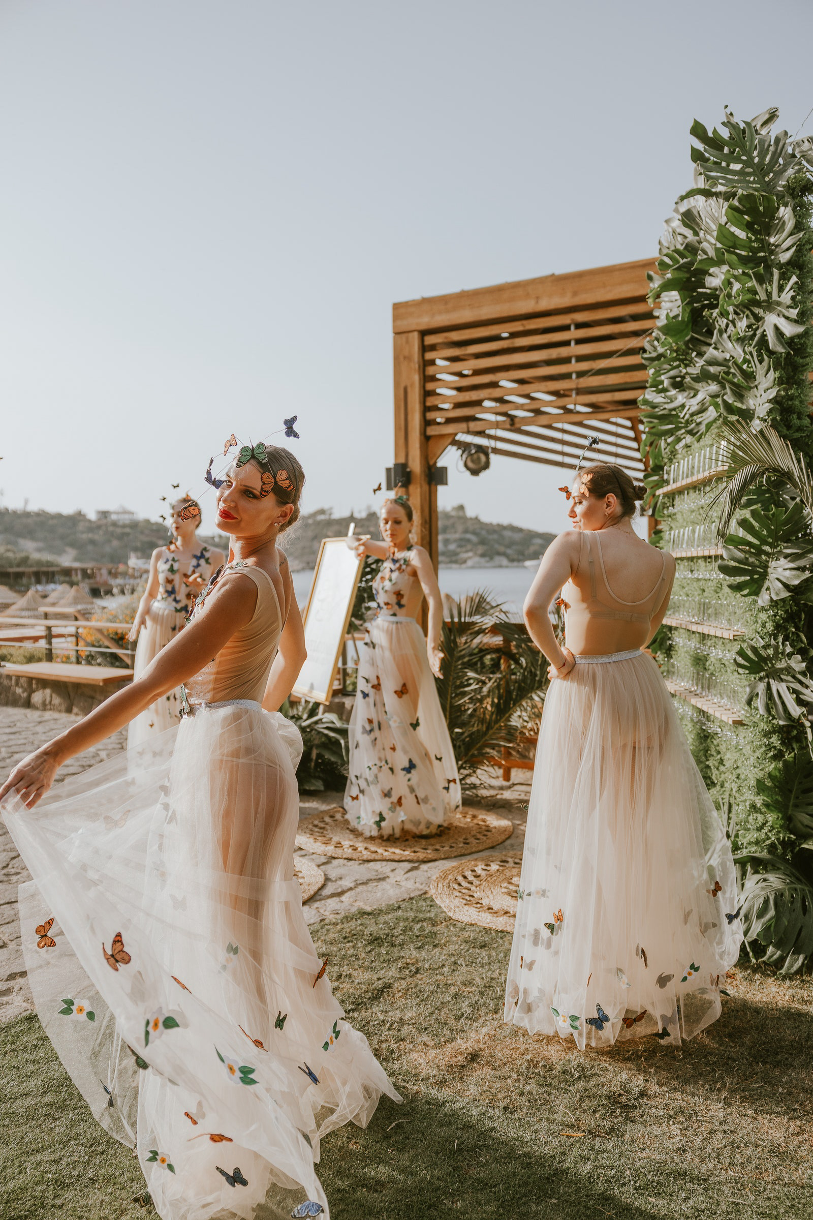 He’s right: Brides and grooms are increasingly prioritizing the party. Raucous welcome events that include all guests—whether it’s an afternoon beach party or evening cocktails—are no longer staples of a destination wedding weekend, but marquee events all on their own. (Need an example? Ari Emanuel and Sarah Staudinger took over iconic the St. Tropez beach club Gigi’s ahead of their big day, for which the bride wore a custom lace two-piece ensemble by Alaia.)