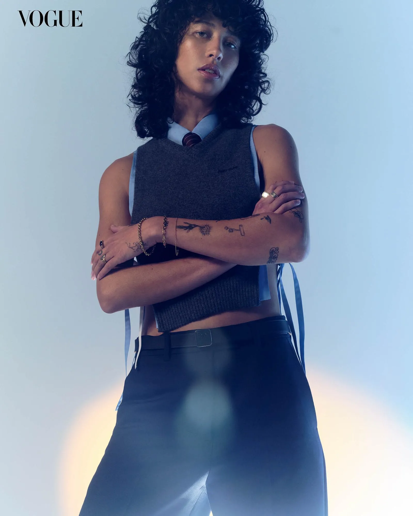MIU MIU top and trousers. Photographed by Richie Talboy for the February 2026 Issue of Vogue Philippines