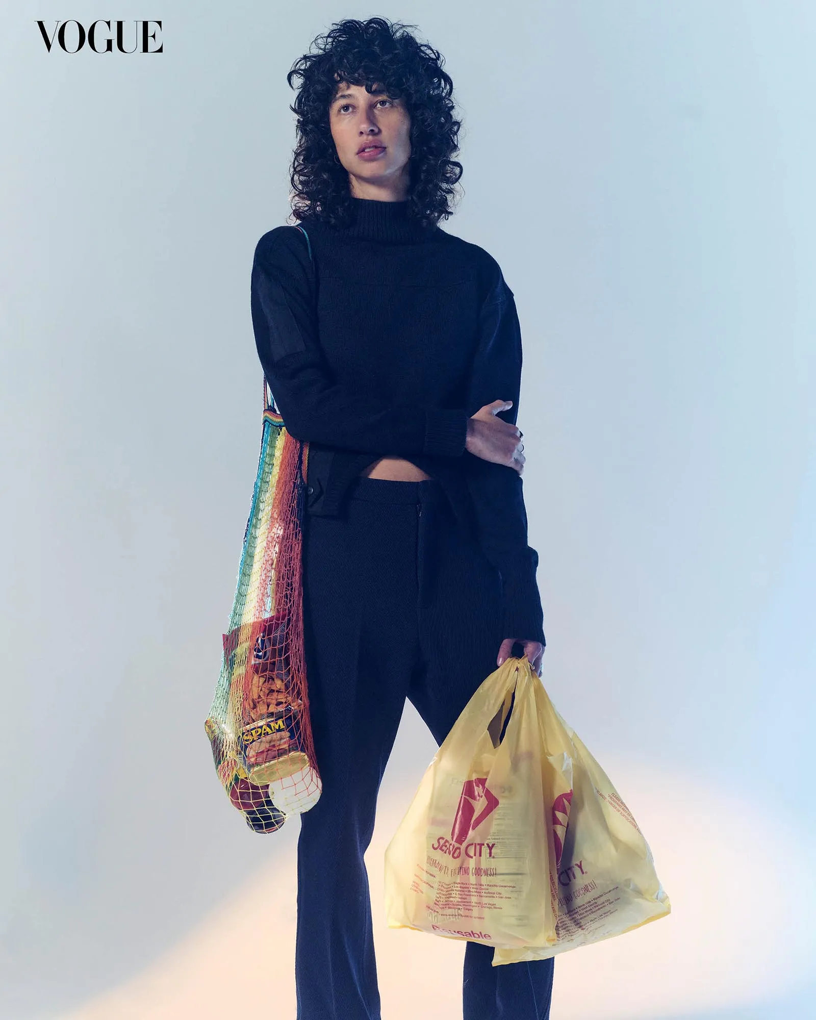This Vogue Philippines sitting, though, stands out. “There was one look that we did where I had a grocery bag and we got to go to the store and pick out all types of food items. We got vinegar, Spam, banana ketchup, Chippy. We got all of the essentials,” she laughs. “We were able to put some amazing ideas together that reflected the Philippines and how important it is to me. I don’t think I’ve had another shoot where we’ve been so focused on it. It was really meaningful. This shoot felt totally one of a kind.”