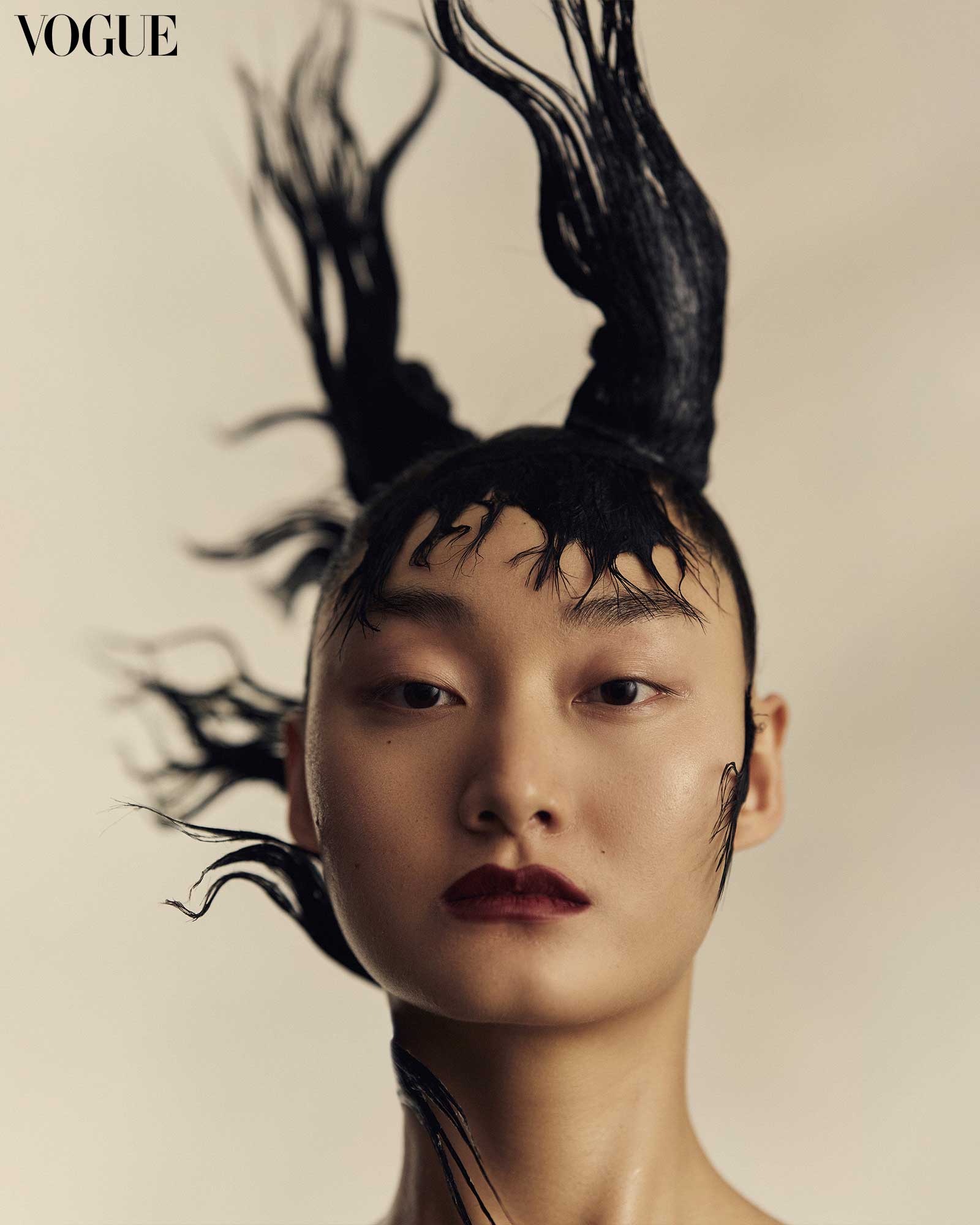 Hair is molded and twisted to elaborate braids, rosettes, and tight coils in a modern interpretation of Filipino history.