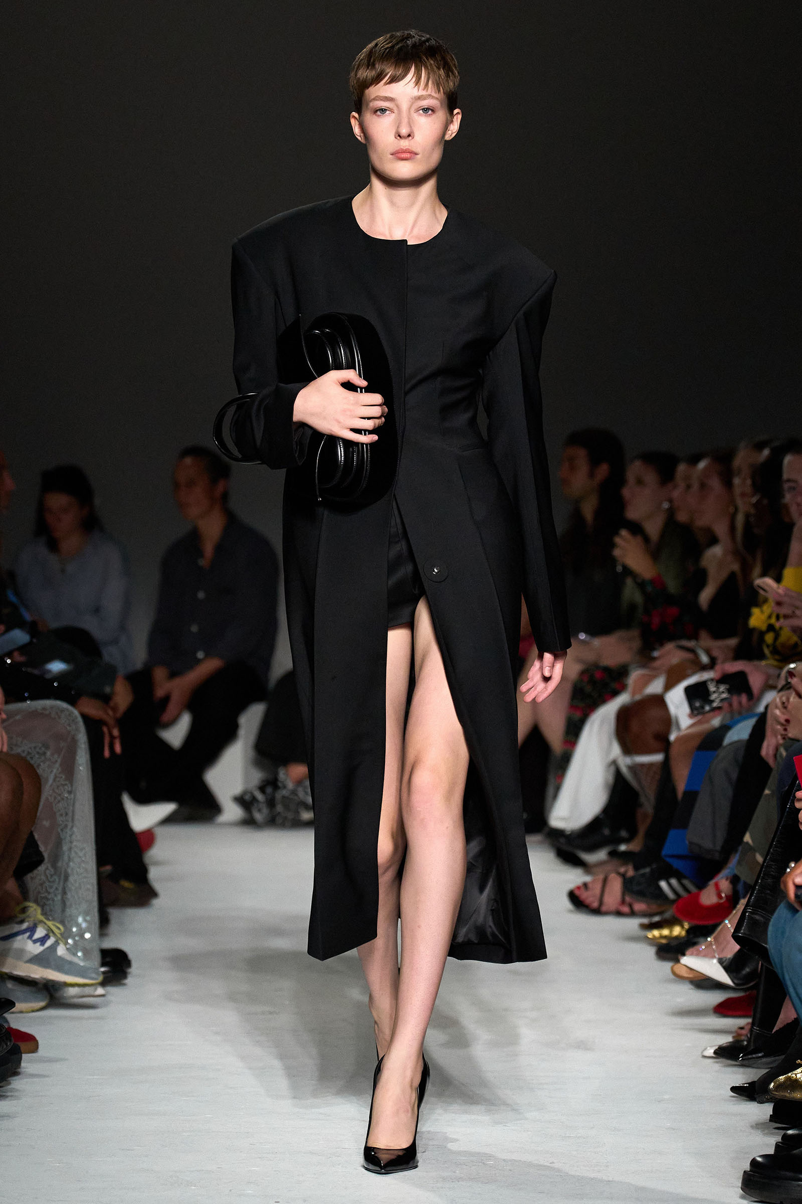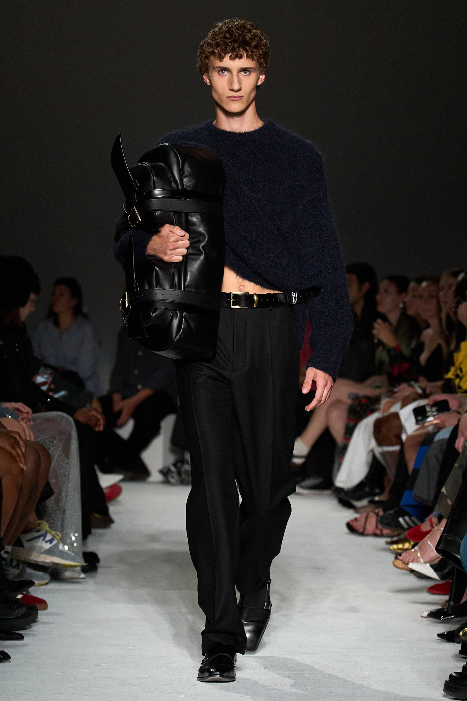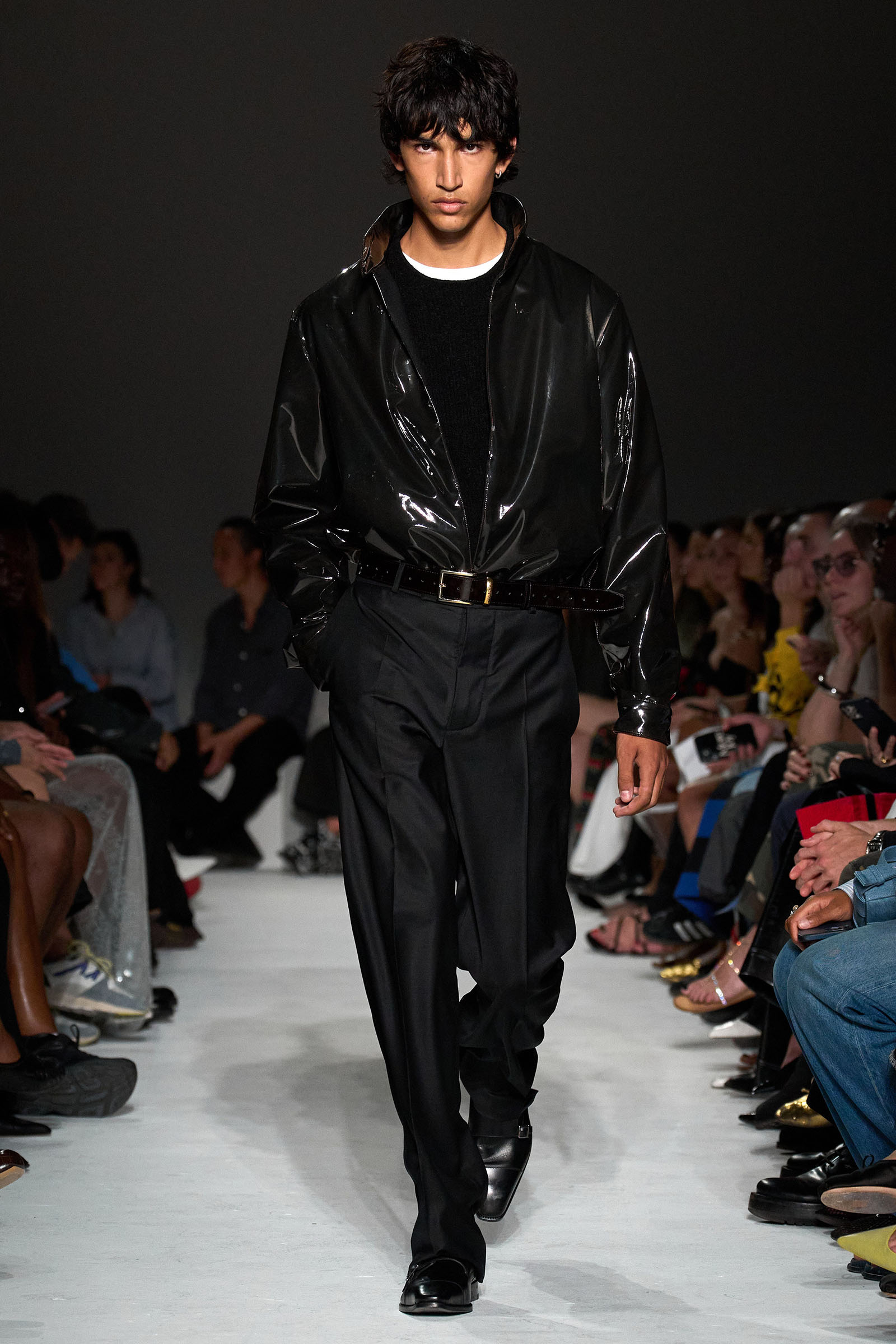 Never one to rest on his laurels, Capaldo moved the needle again this season by emphasizing the sleeker, more elevated vision he’s developed at the brand. His starting point was David Lynch’s cult classic Lost Highway—although in the spirit of the film’s mind-bending narrative and mysterious, noirish visuals, Capaldo veered away from anything too literal. “I was more inspired by snippets of dialogue, and the way it’s lit,” he explained, noting that he worked with the art director Olu Odukoya to create the curved seating in the show venue, with lines from the film spelled across them. “Is it a dream, or is it reality? I wanted there to be a double take,” Capaldo added.