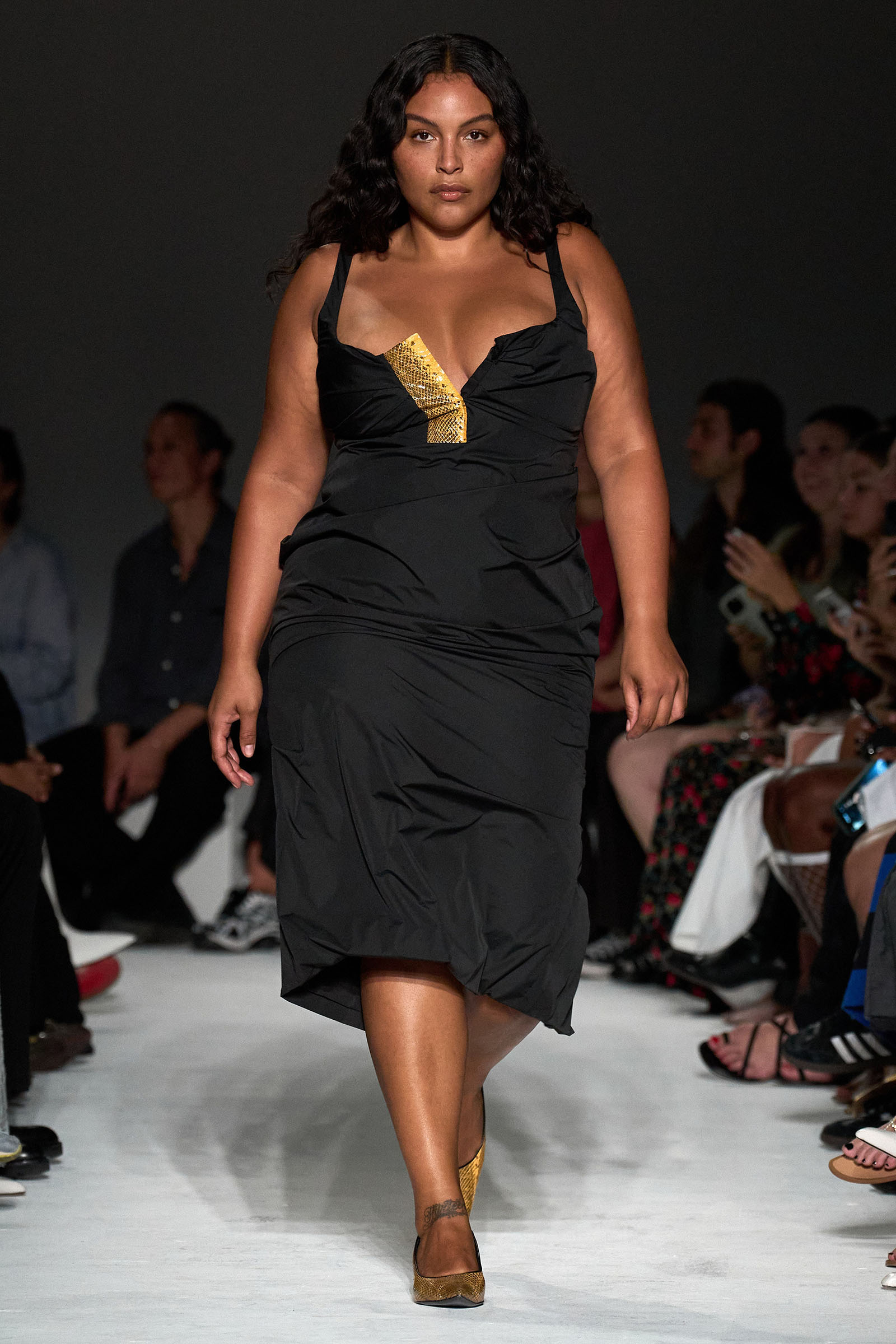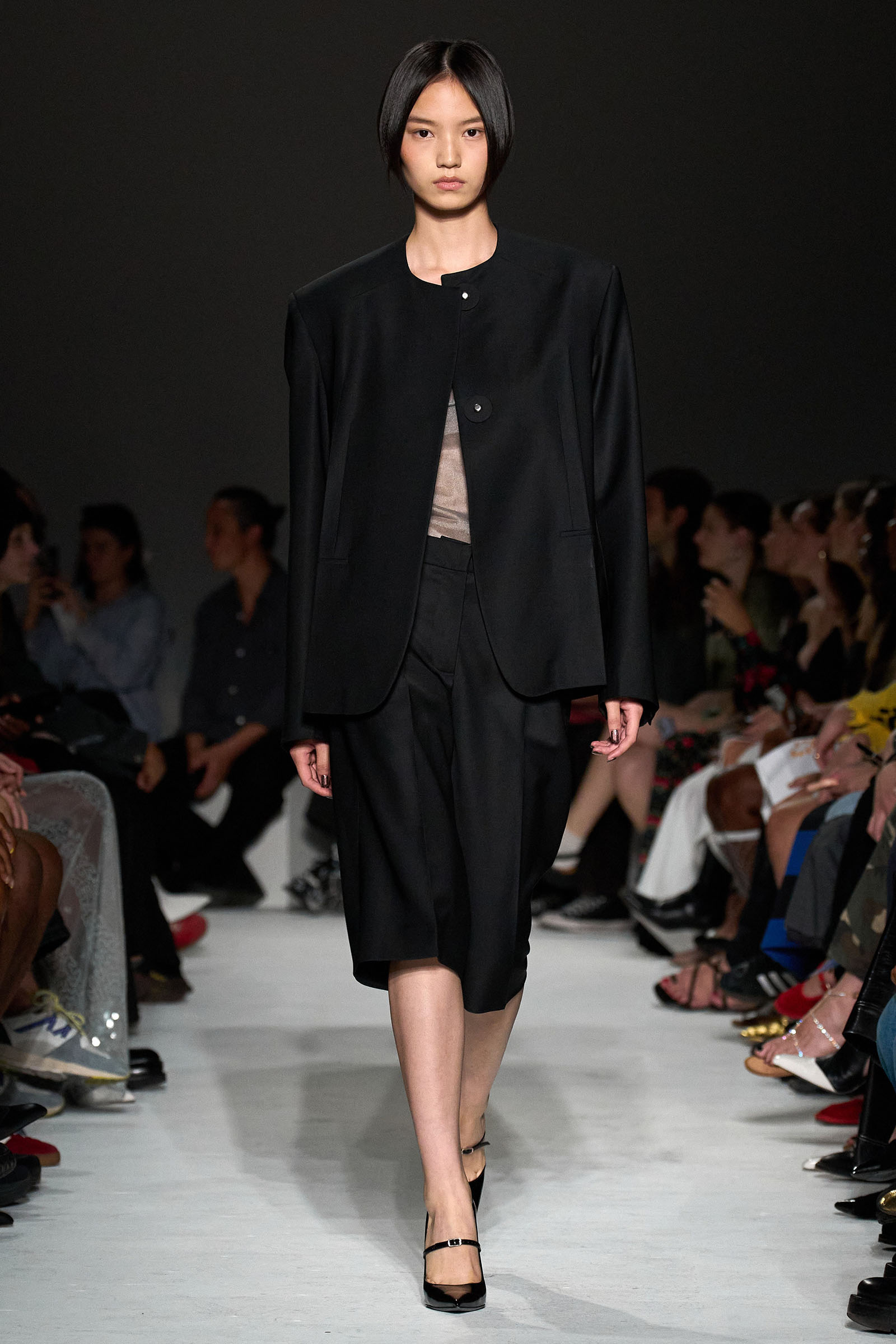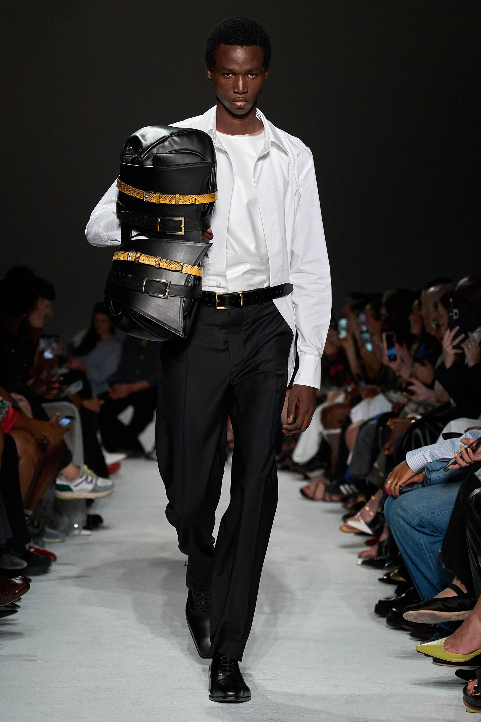 Never one to rest on his laurels, Capaldo moved the needle again this season by emphasizing the sleeker, more elevated vision he’s developed at the brand. His starting point was David Lynch’s cult classic Lost Highway—although in the spirit of the film’s mind-bending narrative and mysterious, noirish visuals, Capaldo veered away from anything too literal. “I was more inspired by snippets of dialogue, and the way it’s lit,” he explained, noting that he worked with the art director Olu Odukoya to create the curved seating in the show venue, with lines from the film spelled across them. “Is it a dream, or is it reality? I wanted there to be a double take,” Capaldo added.