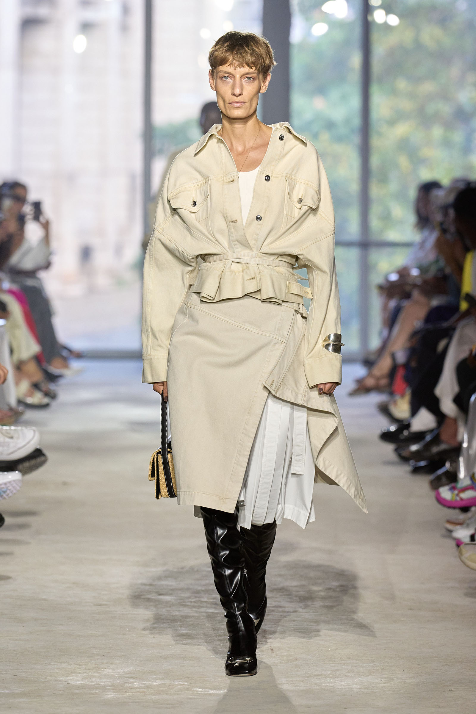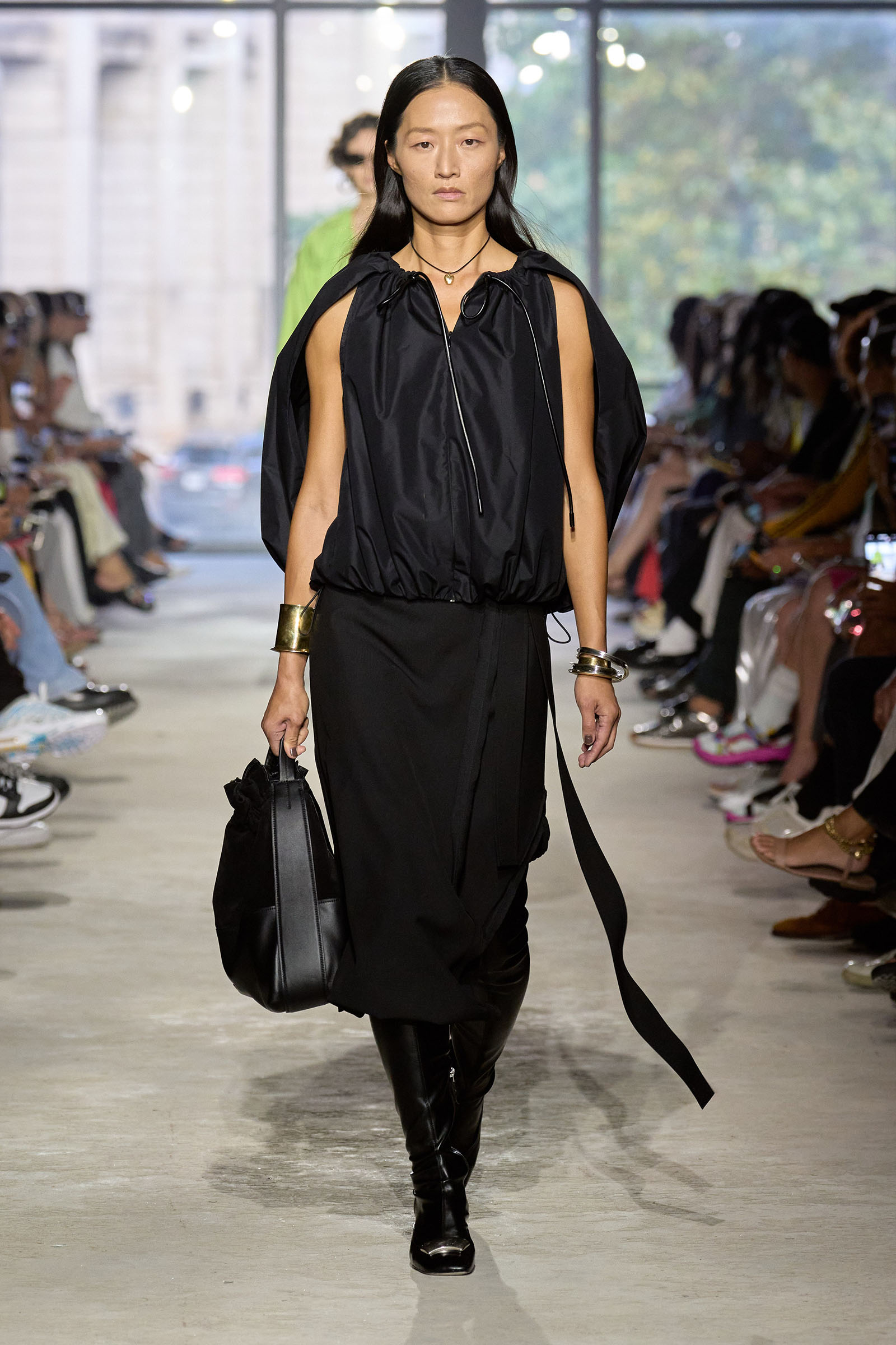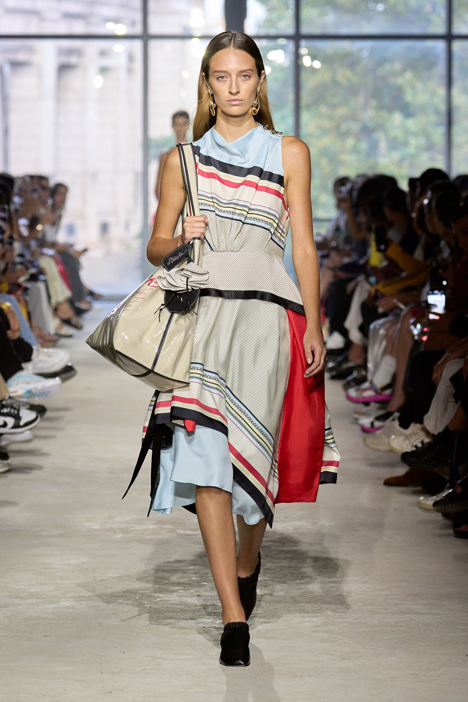 Phillip Lim was holding back tears before his show. It’s been four years since he put his collection on a New York runway, and his return had him feeling emotional. The pandemic was especially hard on independent brands like 3.1, but Lim persevered. He came to be one of American fashion’s most outspoken voices about the rising tide of anti-Asian violence during COVID. Fashionwise, he pivoted for a time to the kind of homewear we were all sporting during the lockdown, scaled back his ready-to-wear collections, and thought hard about what makes his brand unique. He grew up in California, but it’s 3.1’s New York bona fides that he opted to emphasize over the past couple of seasons. Awkwafina and Sherry Cola were in the front row wearing 3.1 sweatshirts that splice the brand logo with NYC landmarks.