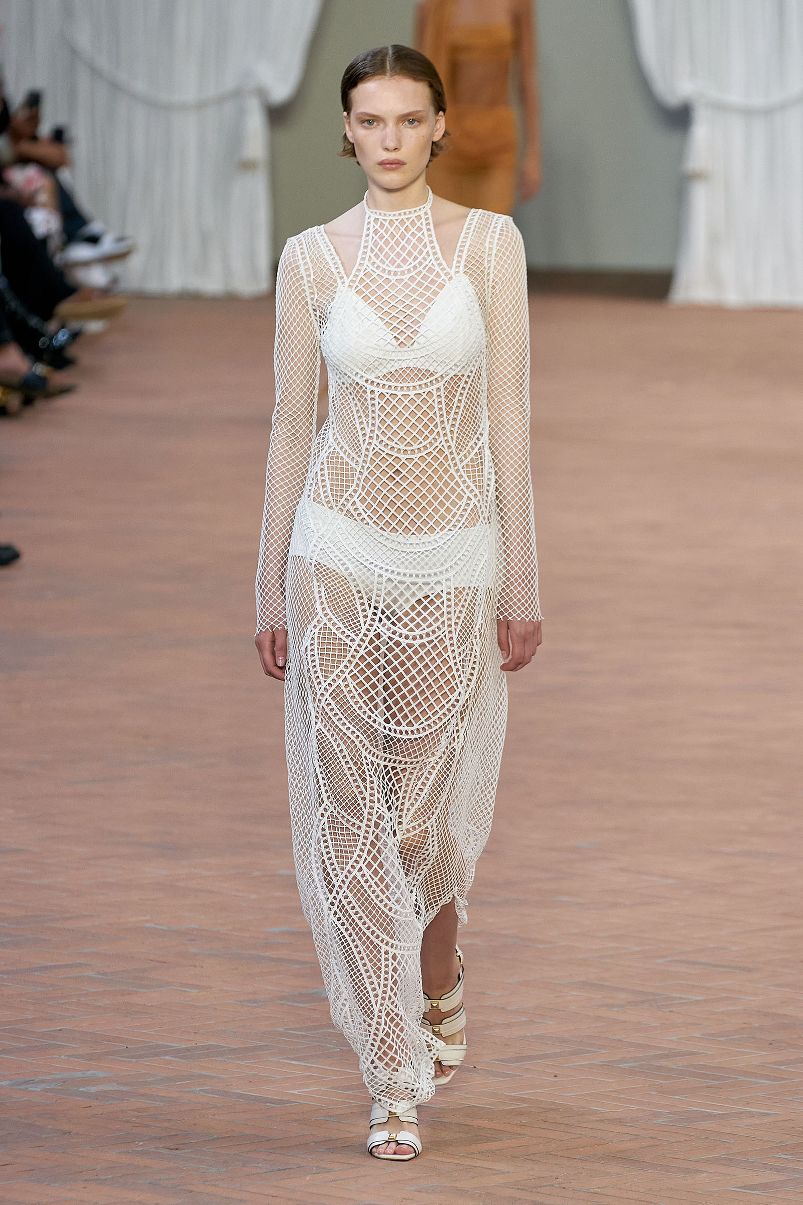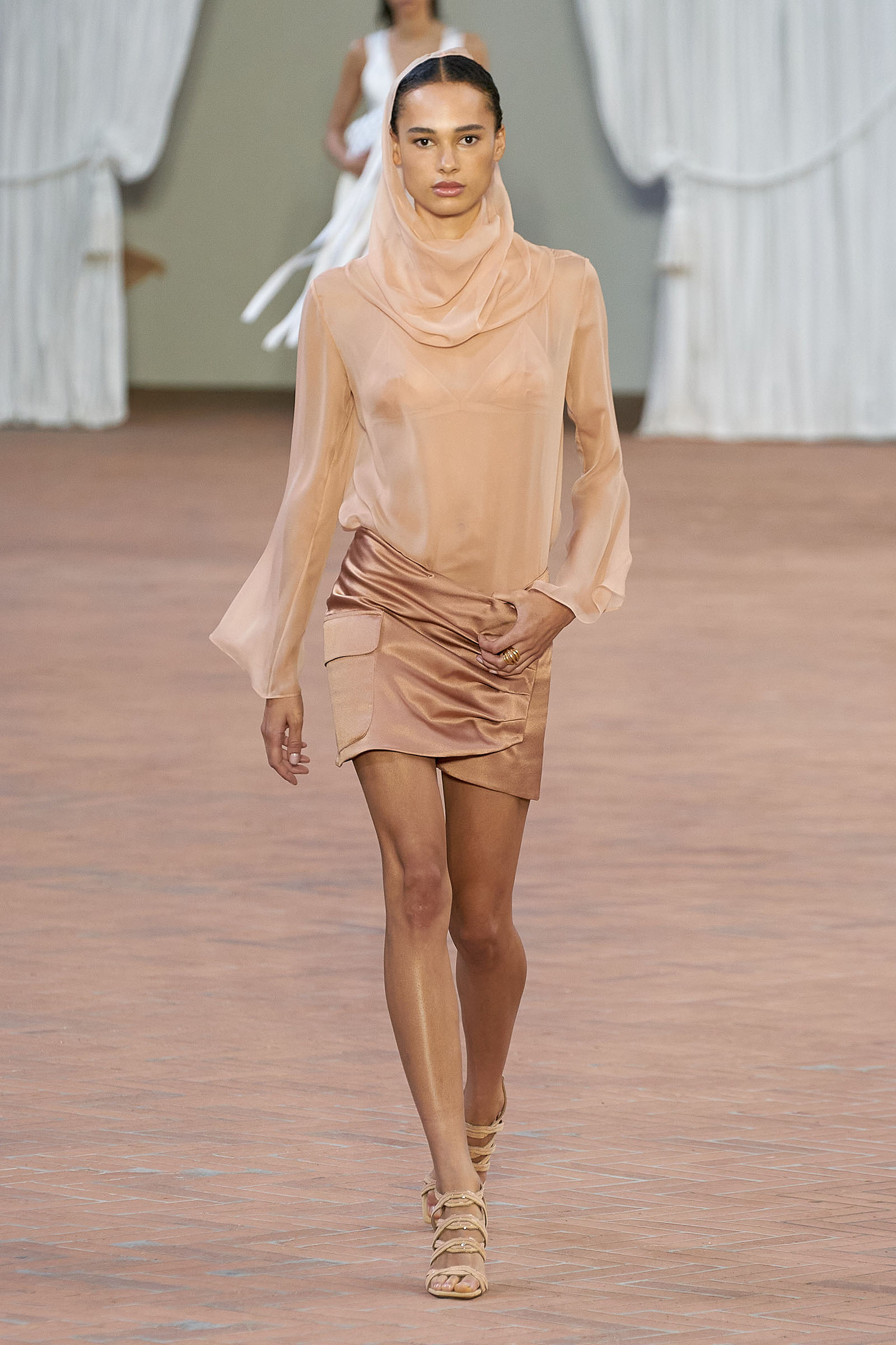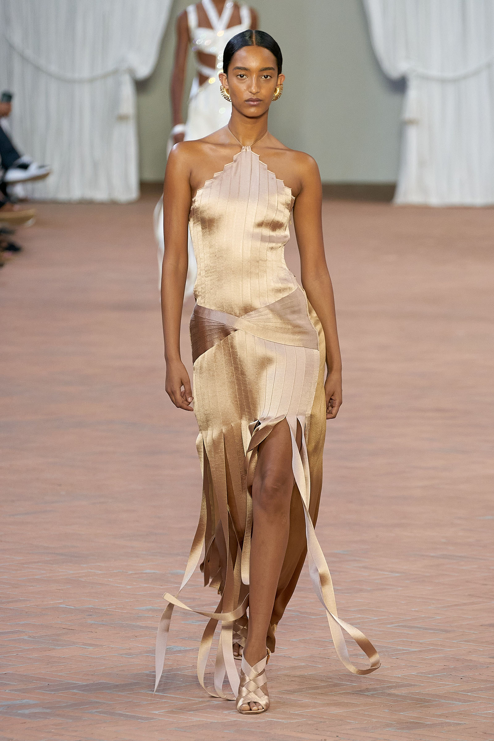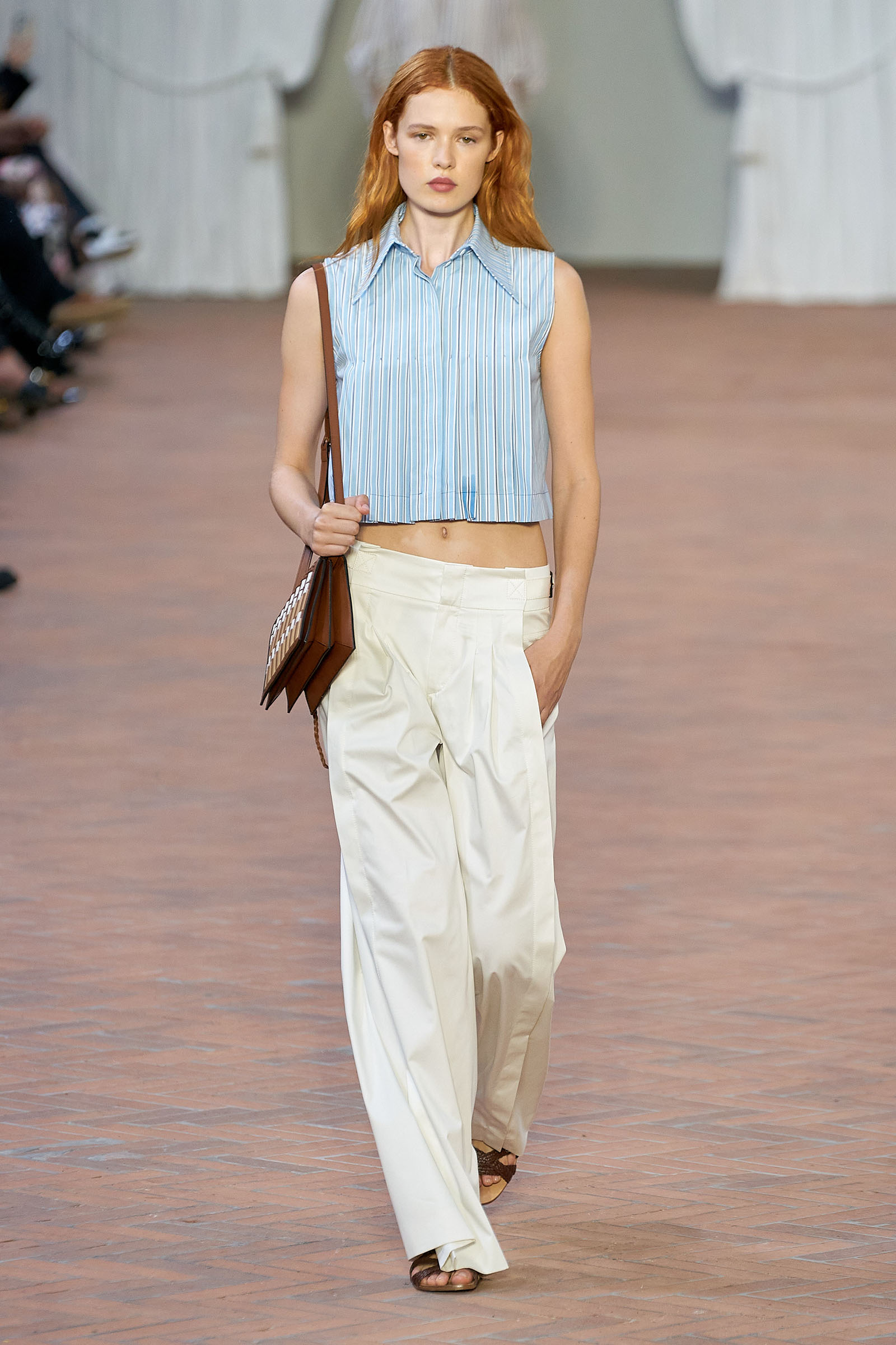 Since before the pandemic, Ferretti has been focused on expanding her range, because women can’t live in chiffon alone. The lightness that’s a hallmark of her evening styles hasn’t always translated to her daywear, but the chemisier dress spilling off one shoulder that opened the show and the long white dresses with hand-tucked pleats that followed it had the ease of resort clothes. She kept the vibe going with striped cotton pajama separates and a shirtdress cut as generous as a caftan. You could see women wearing these pieces on holiday.