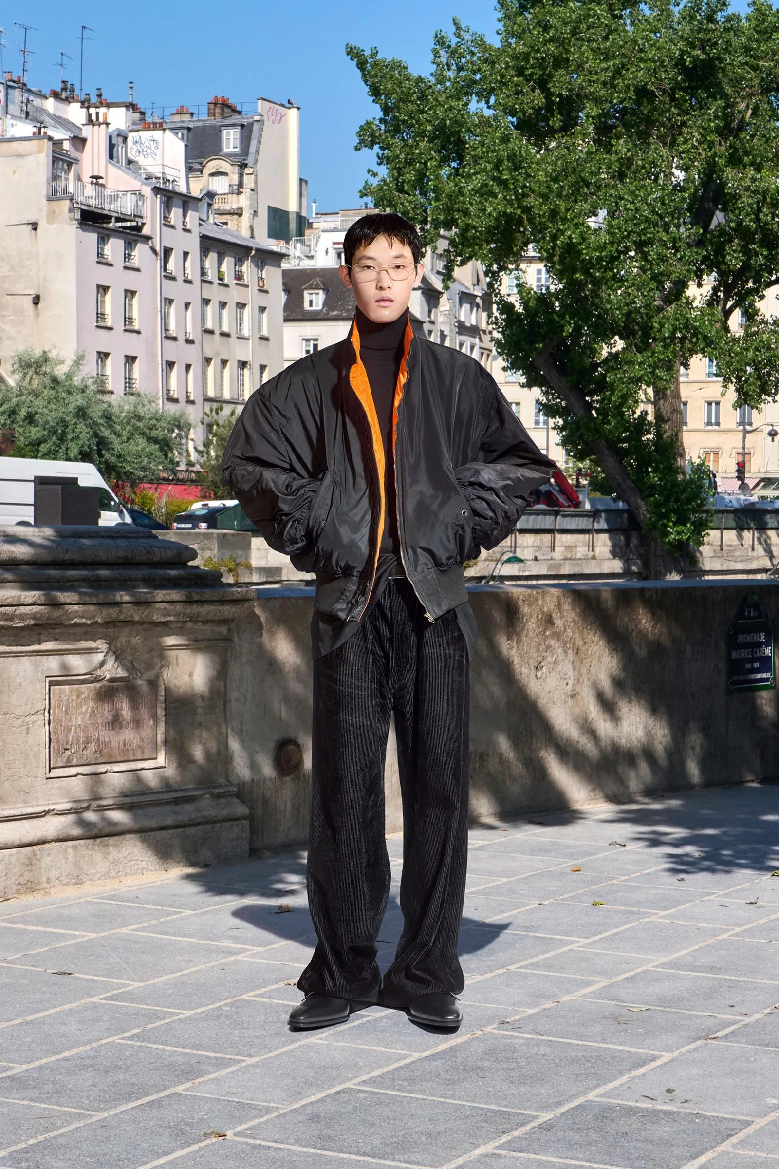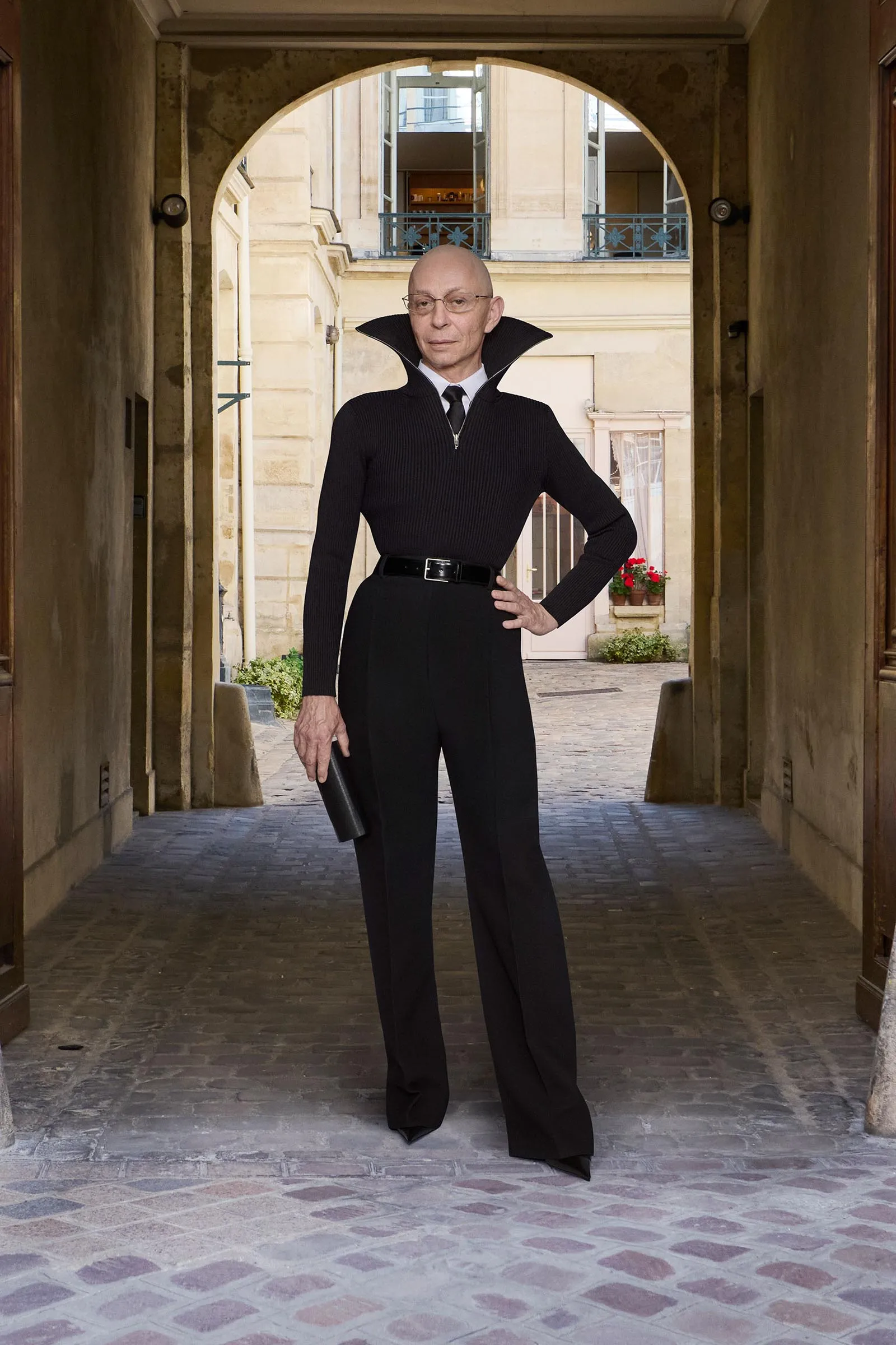And as the parade—conceived, as Demna put it, as a study of the dress codes of “la bourgeoisie”—proceeded, all the people who work for Balenciaga, the creative director included, spoke their names on the soundtrack. That was a nice personal thank-you to those who had abetted Demna’s technical feats in sculpting, molding, smoothly corseting, and solidifying the tipped-forward monumental architecture of his Nosferatu shoulders—in short, creating the unmistakable Demna stamp that changed fashion over the past decade.