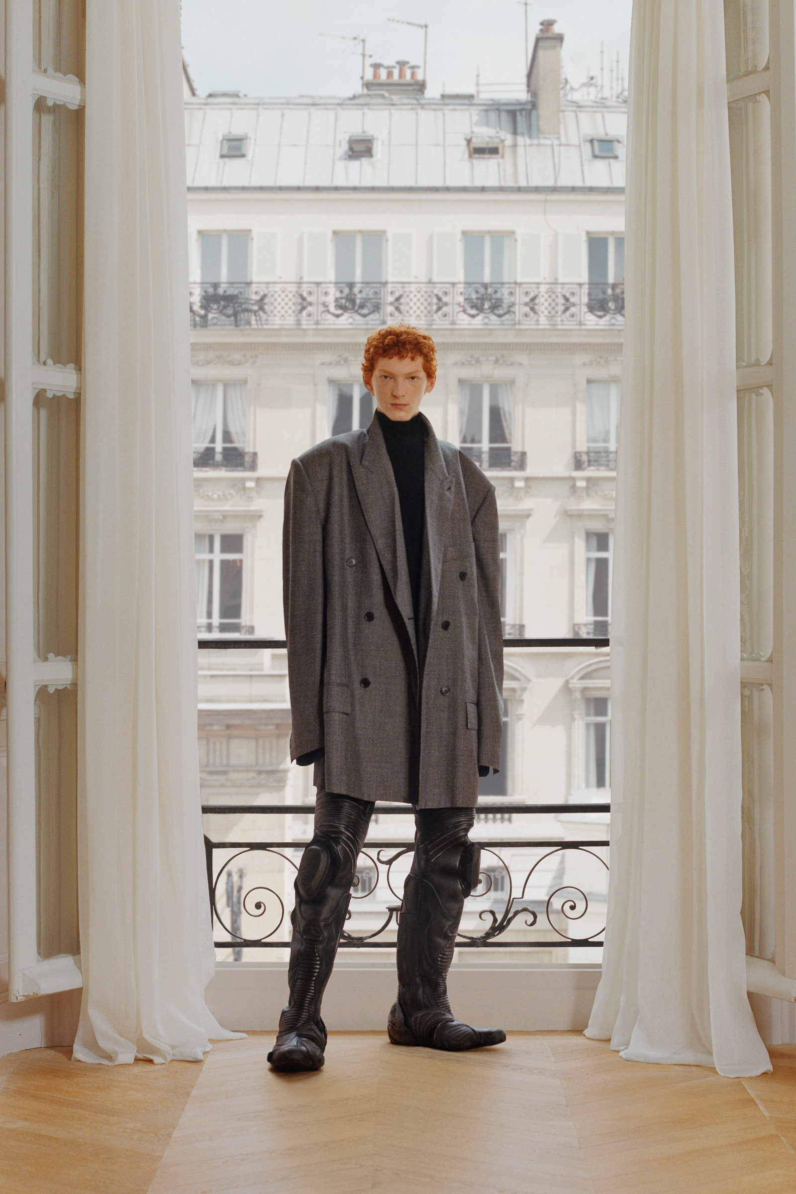Some of these are pre-existing Demna-isms. The hyper-elongated turned-up square-toed “Romeo mules,” however, are a fresh introduction. They’re almost a caricature of swagger—possibly transferred directly from a cartoon or computer game (we don’t know, because Demna wasn’t quoting this time). Still, his chuckle can be distinctly detected behind this work, forever asking: Is this cool, or is it silly? Is it cool because it’s silly? And at what point does it all become normalized again, because that’s just the way everyone dresses on the street?