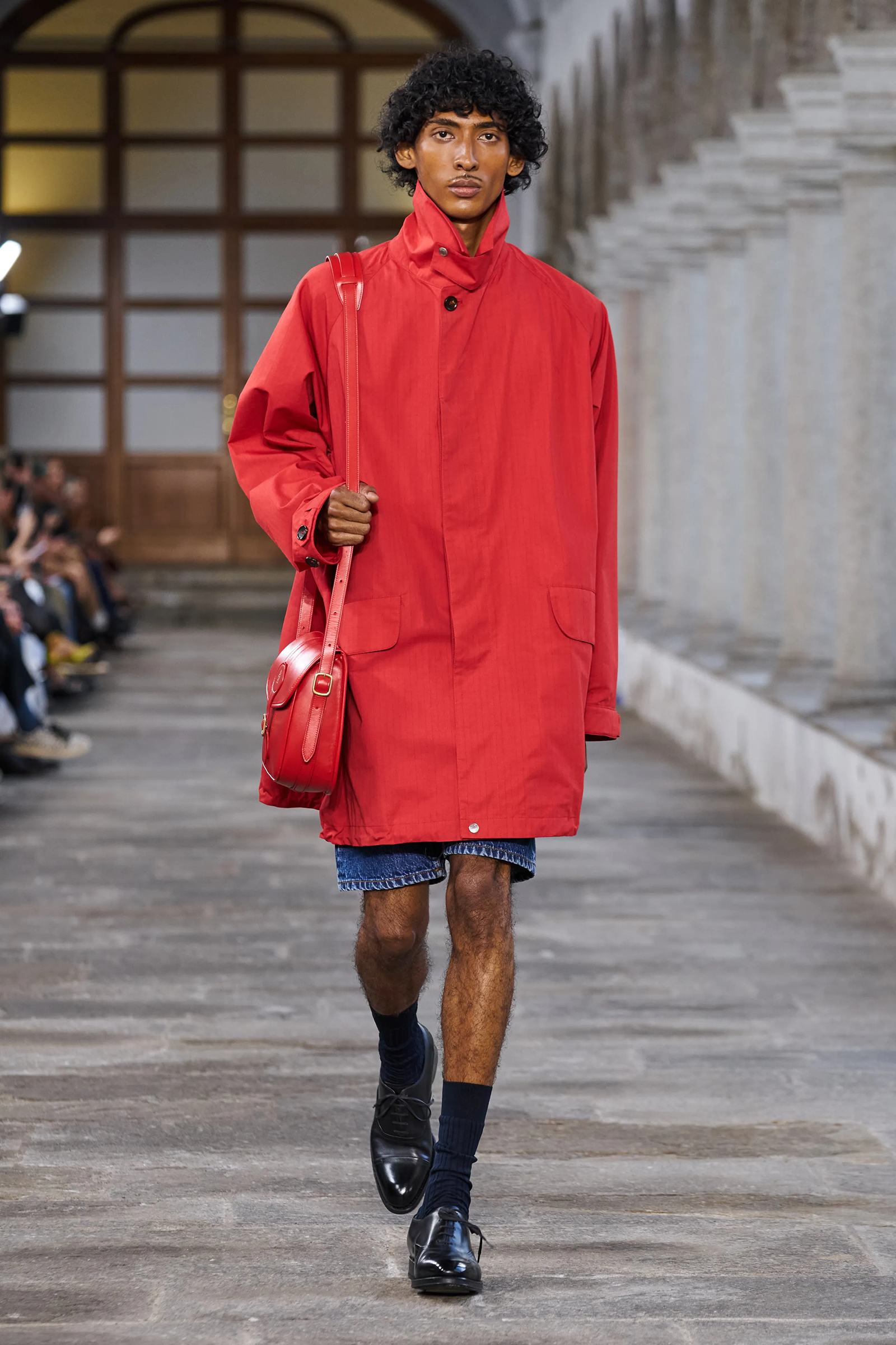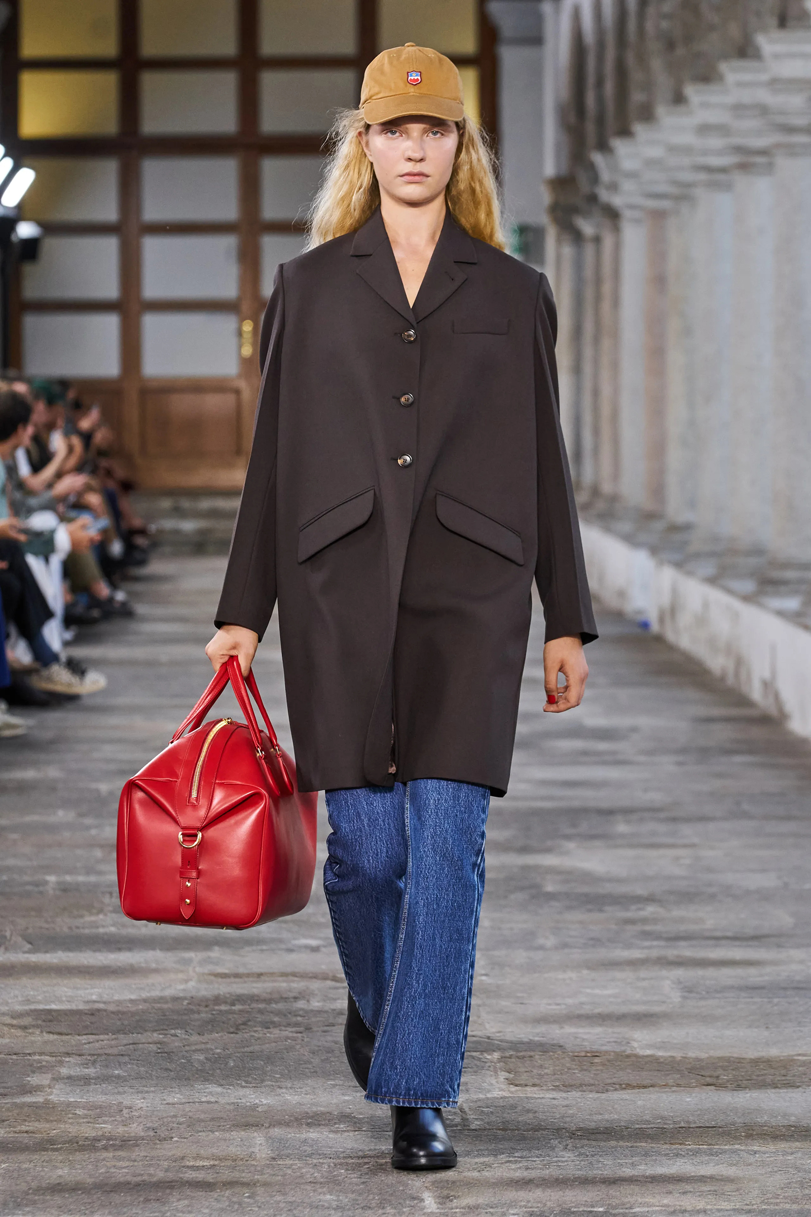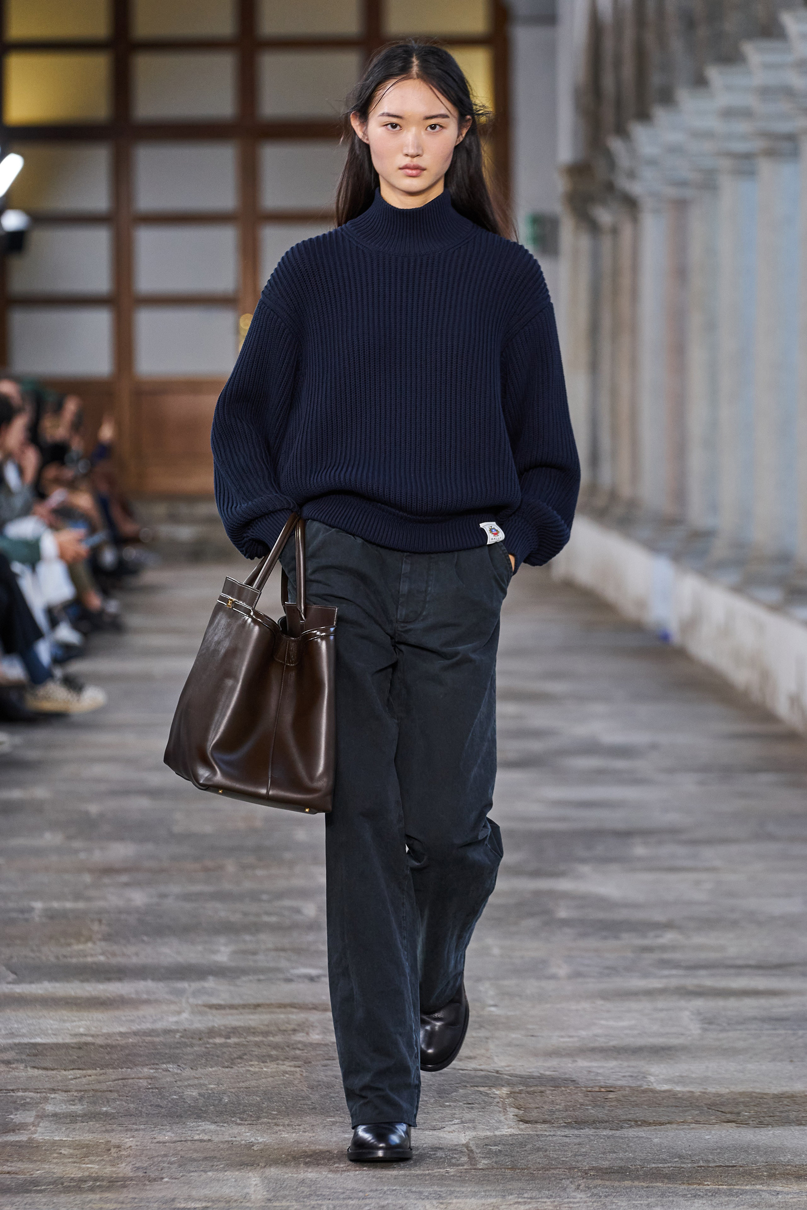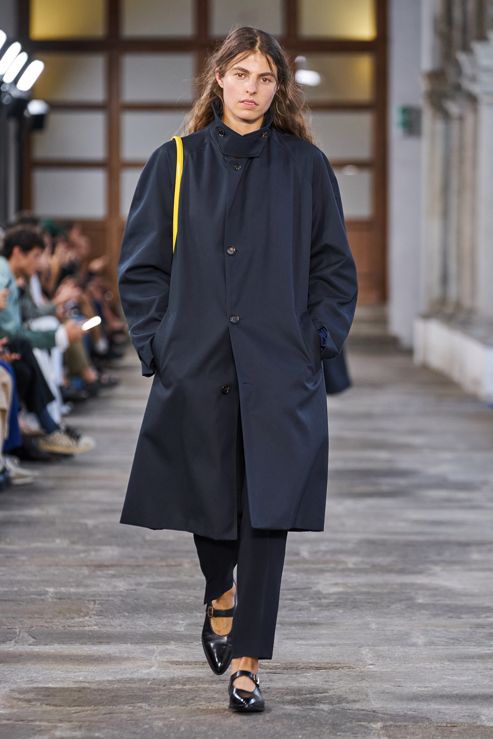 Bellotti embraced the duality of rationality and expressive creativity as two sides of a style identity as “layered as human nature,” he said, “because I believe that brands have a complex personality, not always unilateral and straightforward, rather similar to that of humans.” The collection he sent out today was a fine, sensible exercise in balancing the contradictions between practicality and imagination, elegant design and subtly humorous details.