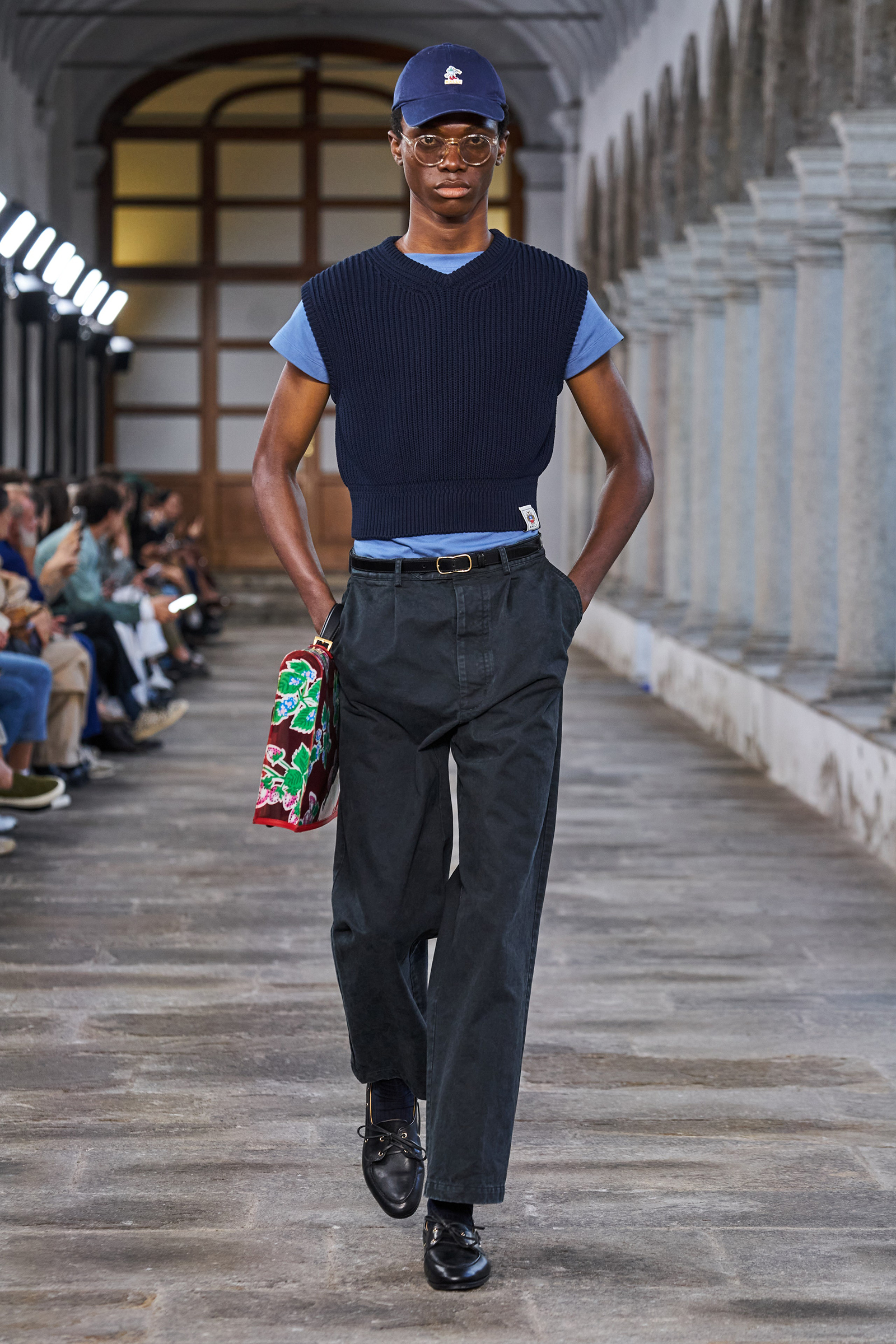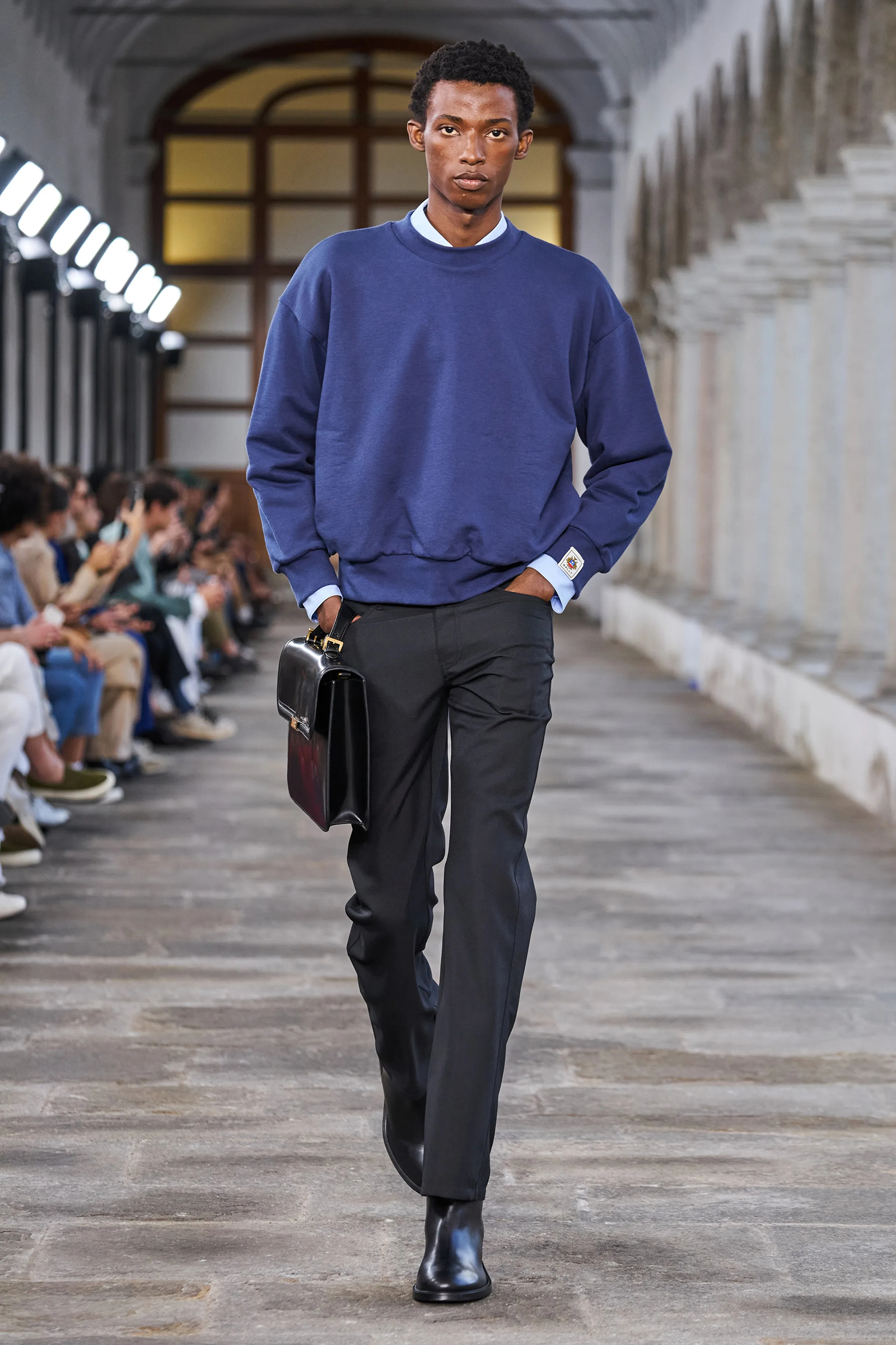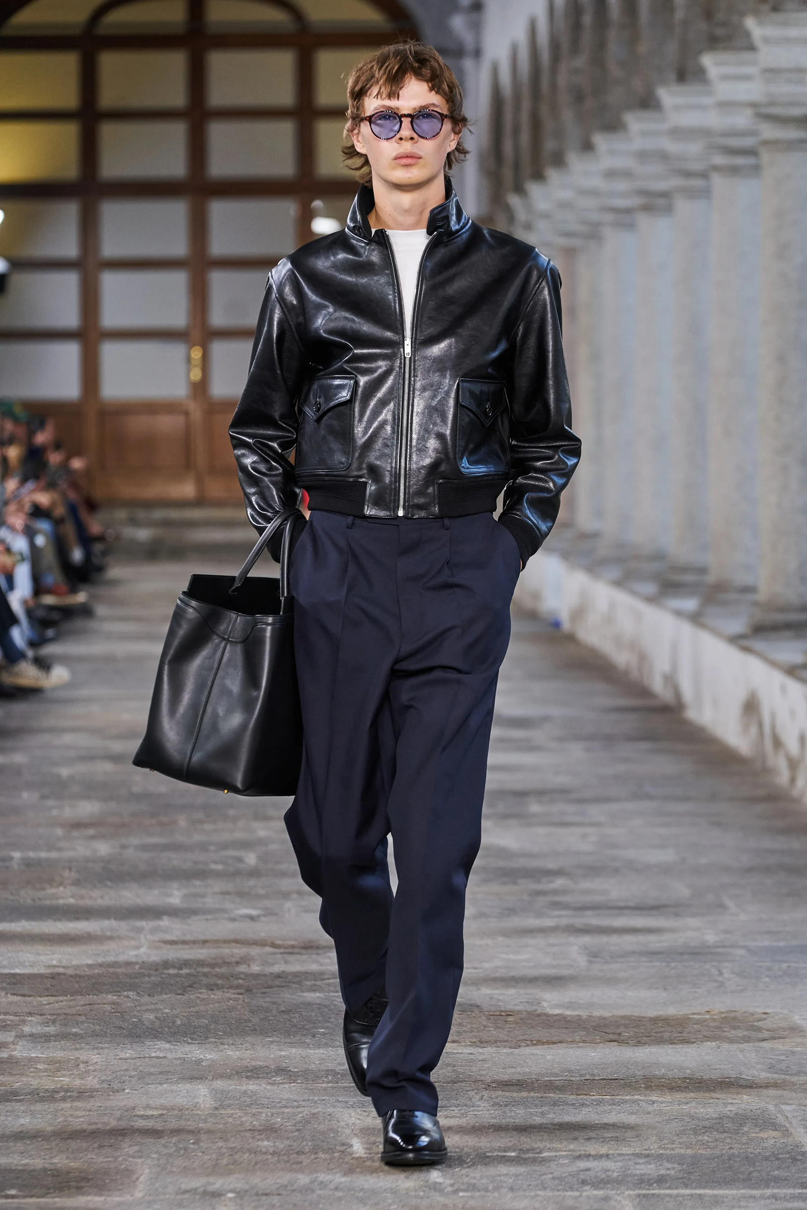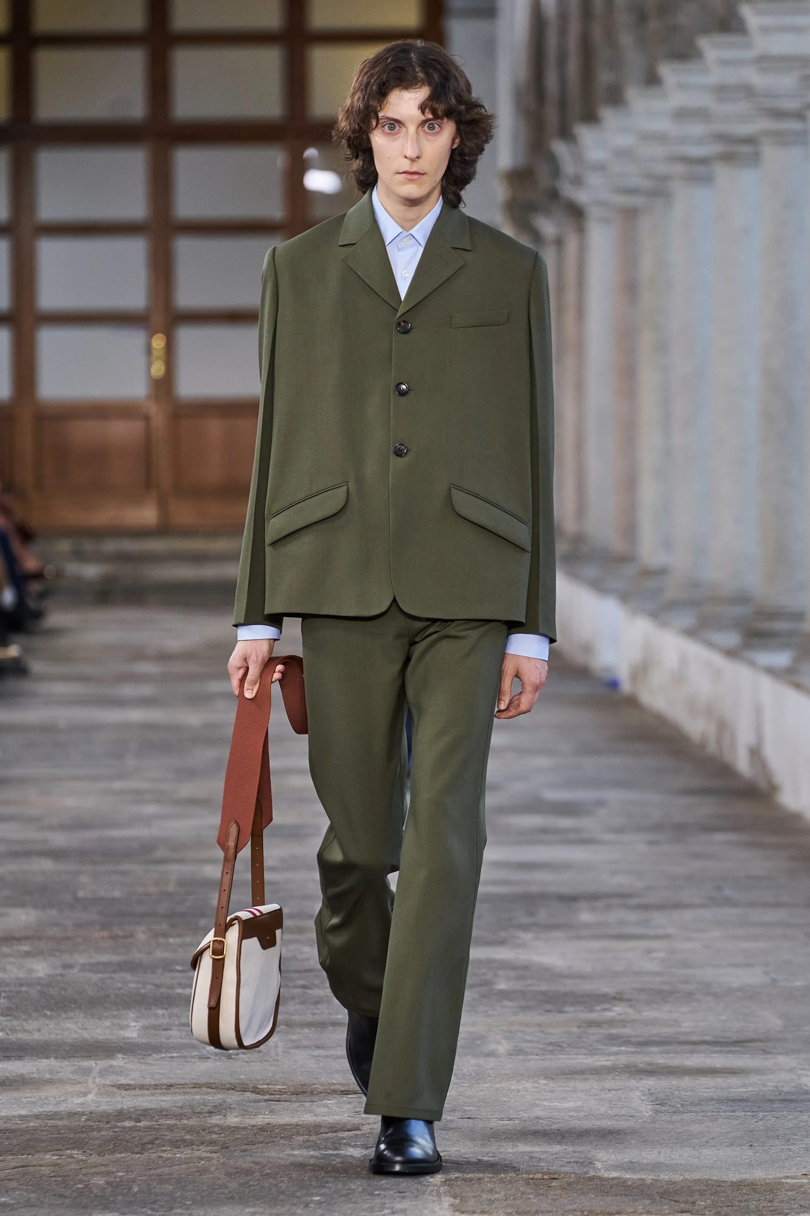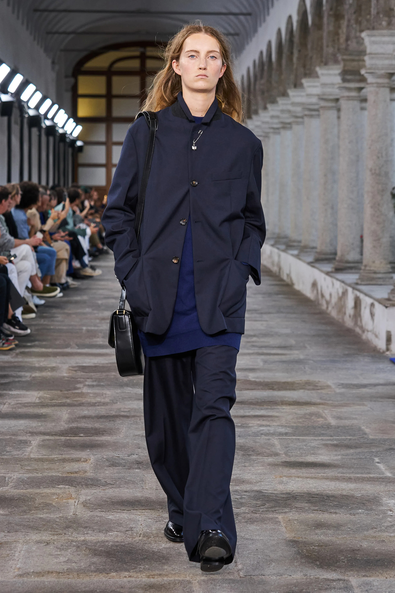 Bellotti embraced the duality of rationality and expressive creativity as two sides of a style identity as “layered as human nature,” he said, “because I believe that brands have a complex personality, not always unilateral and straightforward, rather similar to that of humans.” The collection he sent out today was a fine, sensible exercise in balancing the contradictions between practicality and imagination, elegant design and subtly humorous details.