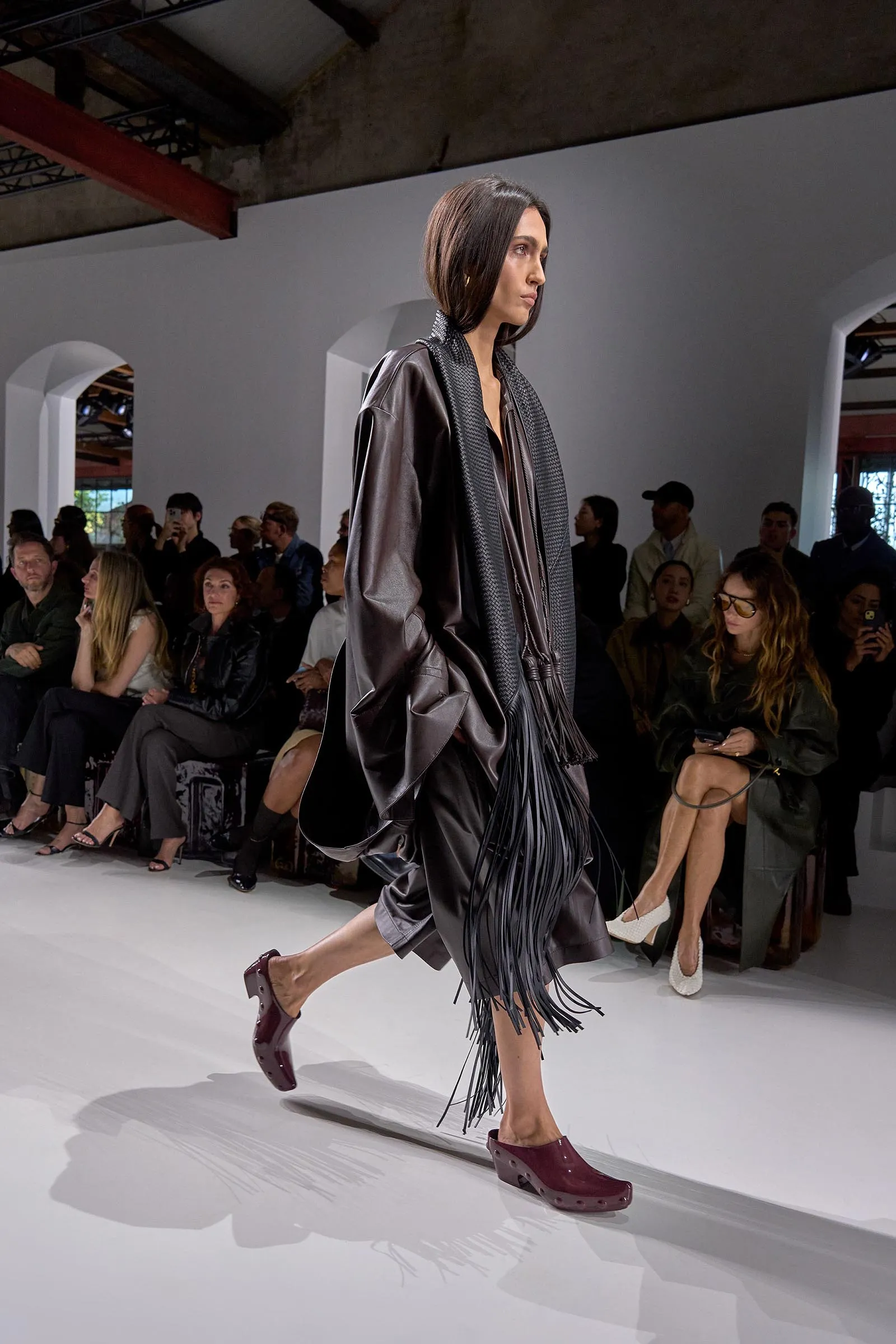 As for accessories, Trotter said she started with the bag that helped launch Bottega Veneta on the world stage, Lauren Hutton’s American Gigolo clutch. The woman herself was in the front row, and the upscaled version of the clutch on the runway looked just about as timeless as Hutton does. All around, a sweet beginning.